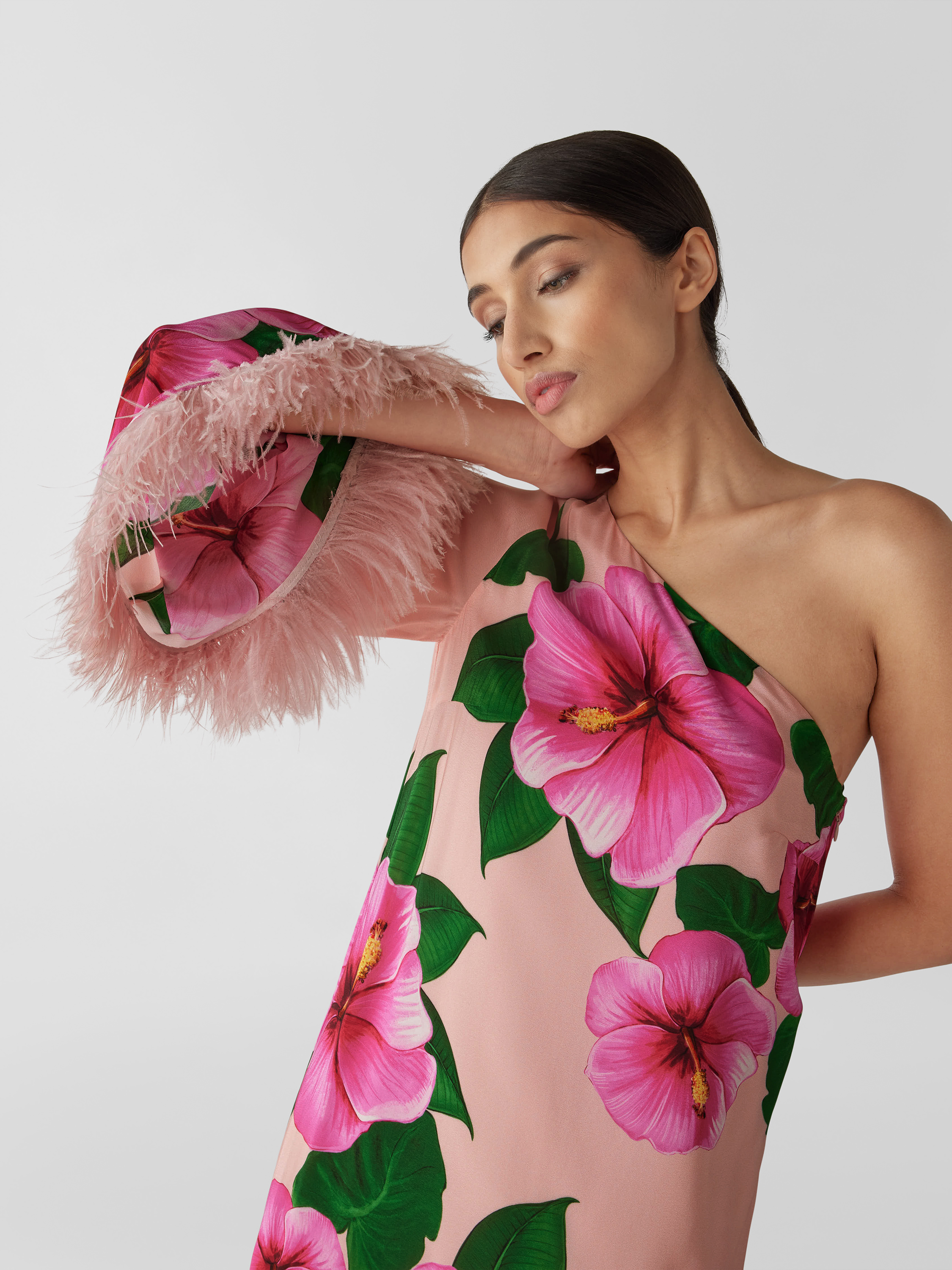 Das Midikleid von Borgo De Nor bringt mit seinem One-Shoulder-Look und dem schwungvollen Federbesatz eine besondere Note in den Alltag. Die lockere Passform sorgt gemeinsam mit dem farbenfrohen Allover-Muster für angenehmen Tragekomfort. Reine Viskose verleiht dem Modell Leichtigkeit und Bewegungsfreiheit.
