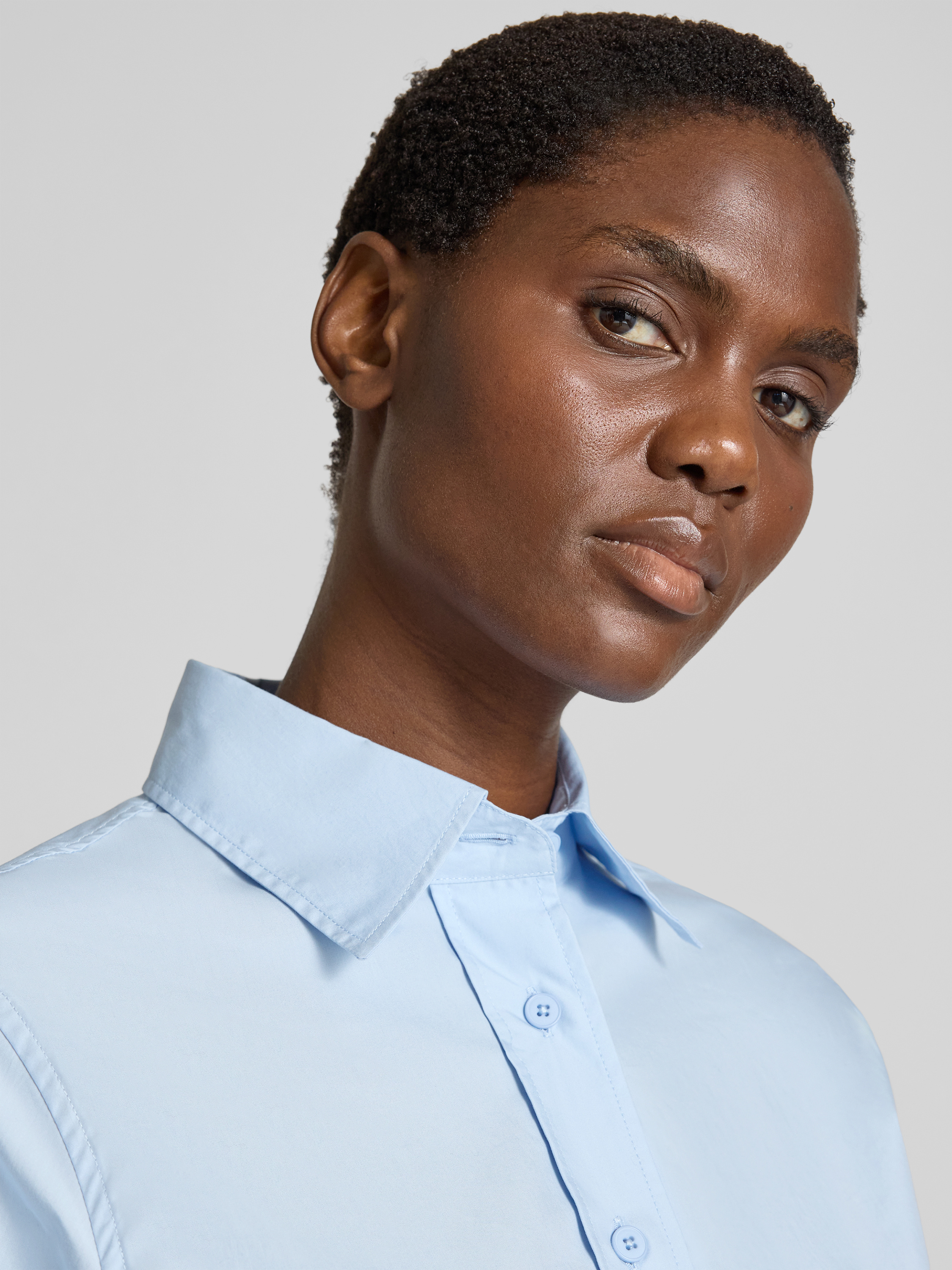 Die Damen Hemdbluse von Closed präsentiert sich in Cropped-Länge und sorgt mit ihrem Umlegekragen für eine klassische Note. Reine Baumwolle verleiht dem Modell ein angenehmes Tragegefühl, während das langärmelige Design vielseitige Kombinationsmöglichkeiten eröffnet. Durch die moderne Silhouette entsteht ein unkomplizierter Look für viele Gelegenheiten.