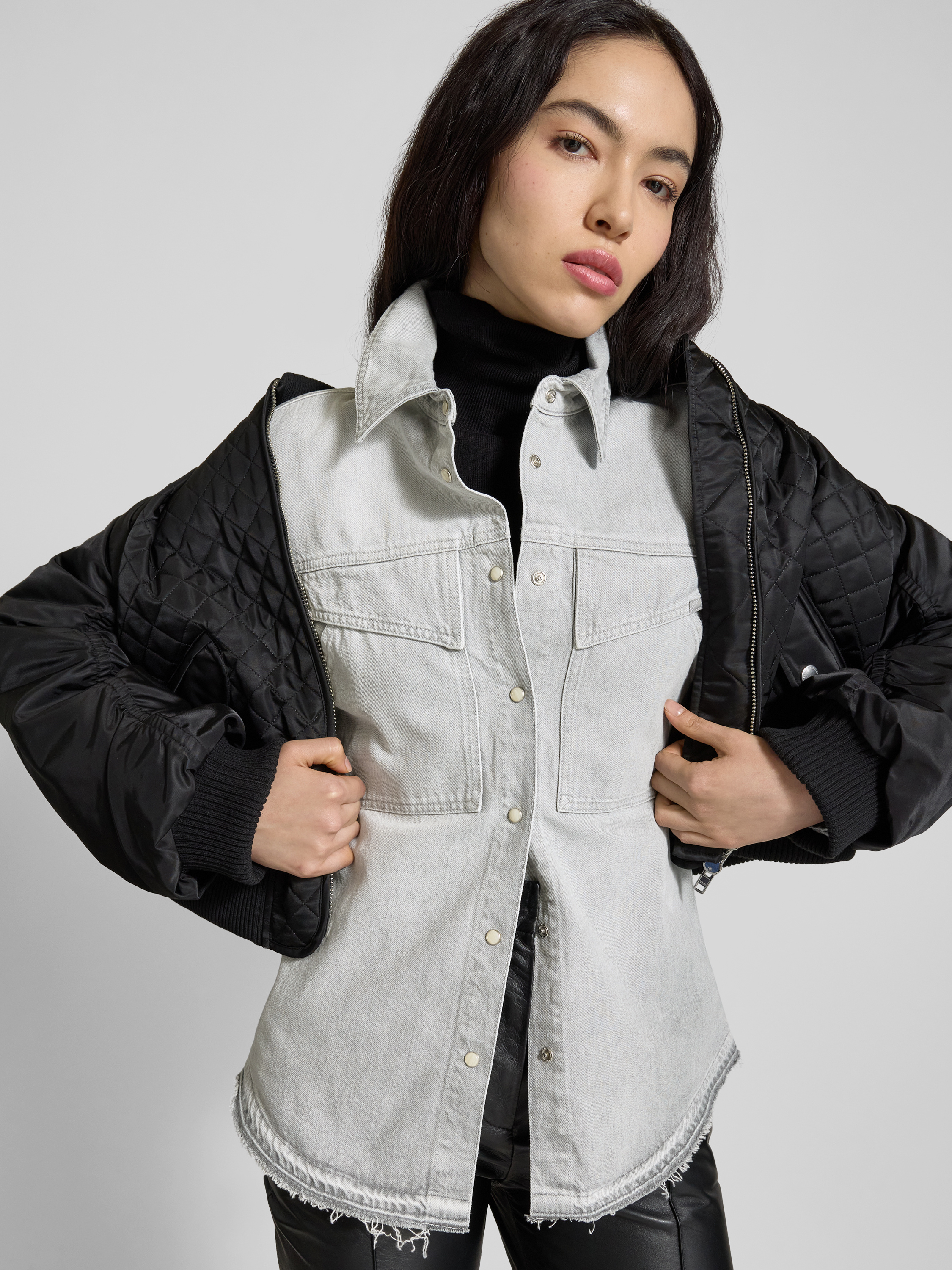 ClosedHemdbluse in Denim-Optik in hellgrau