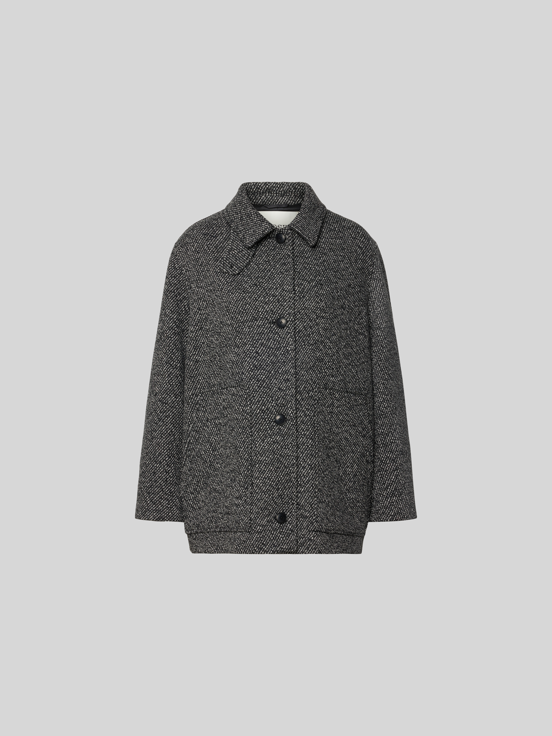 Die Damen Jacke von Closed zeichnet sich durch ihren lockeren Schnitt und den klassischen Hemdblusenkragen aus, wodurch sie vielseitig kombinierbar bleibt. Dank des Woll-Mix fühlt man sich bei wechselhaftem Wetter angenehm gewärmt. Praktische Eingrifftaschen runden den funktionalen Charakter ab.