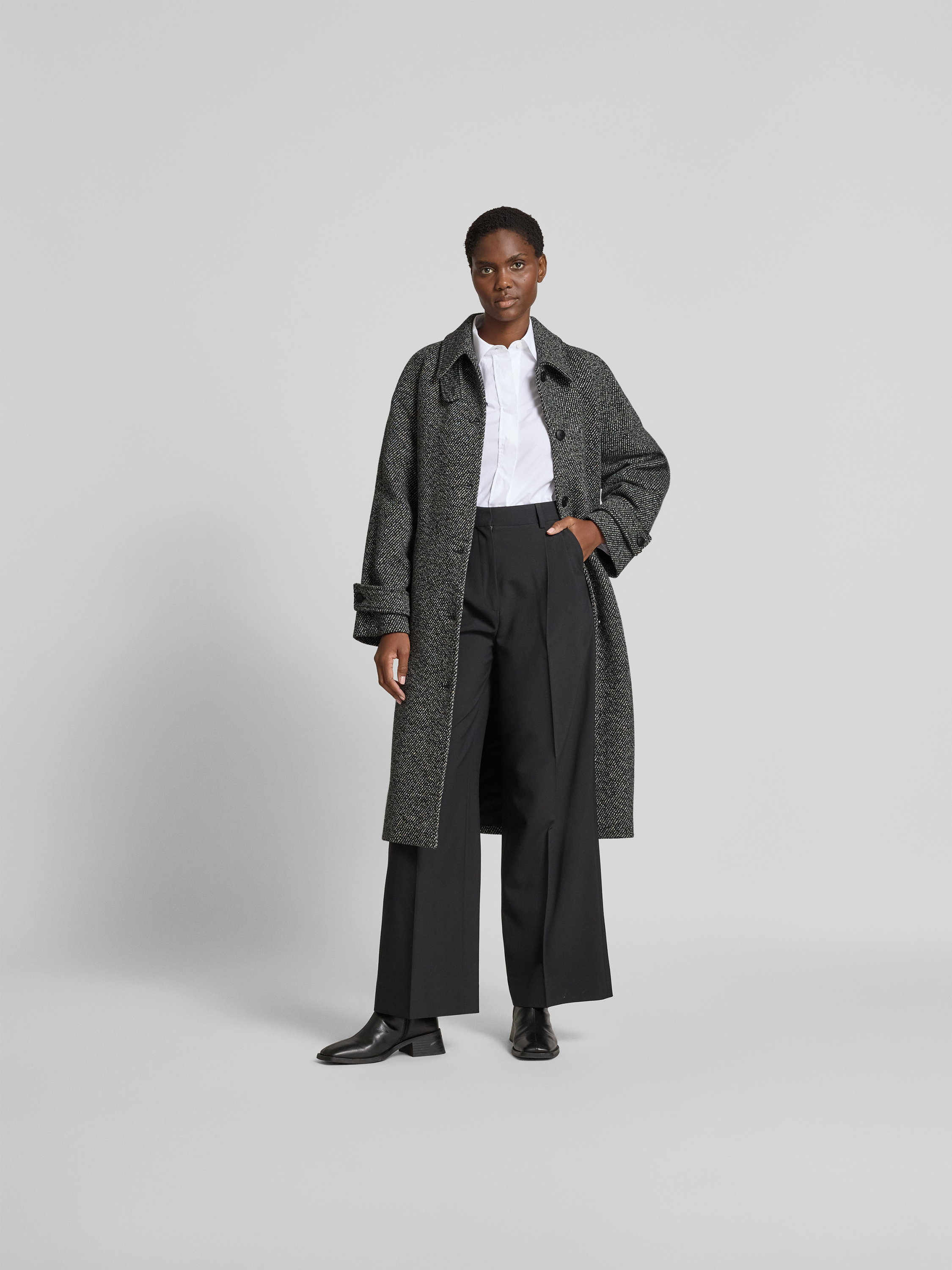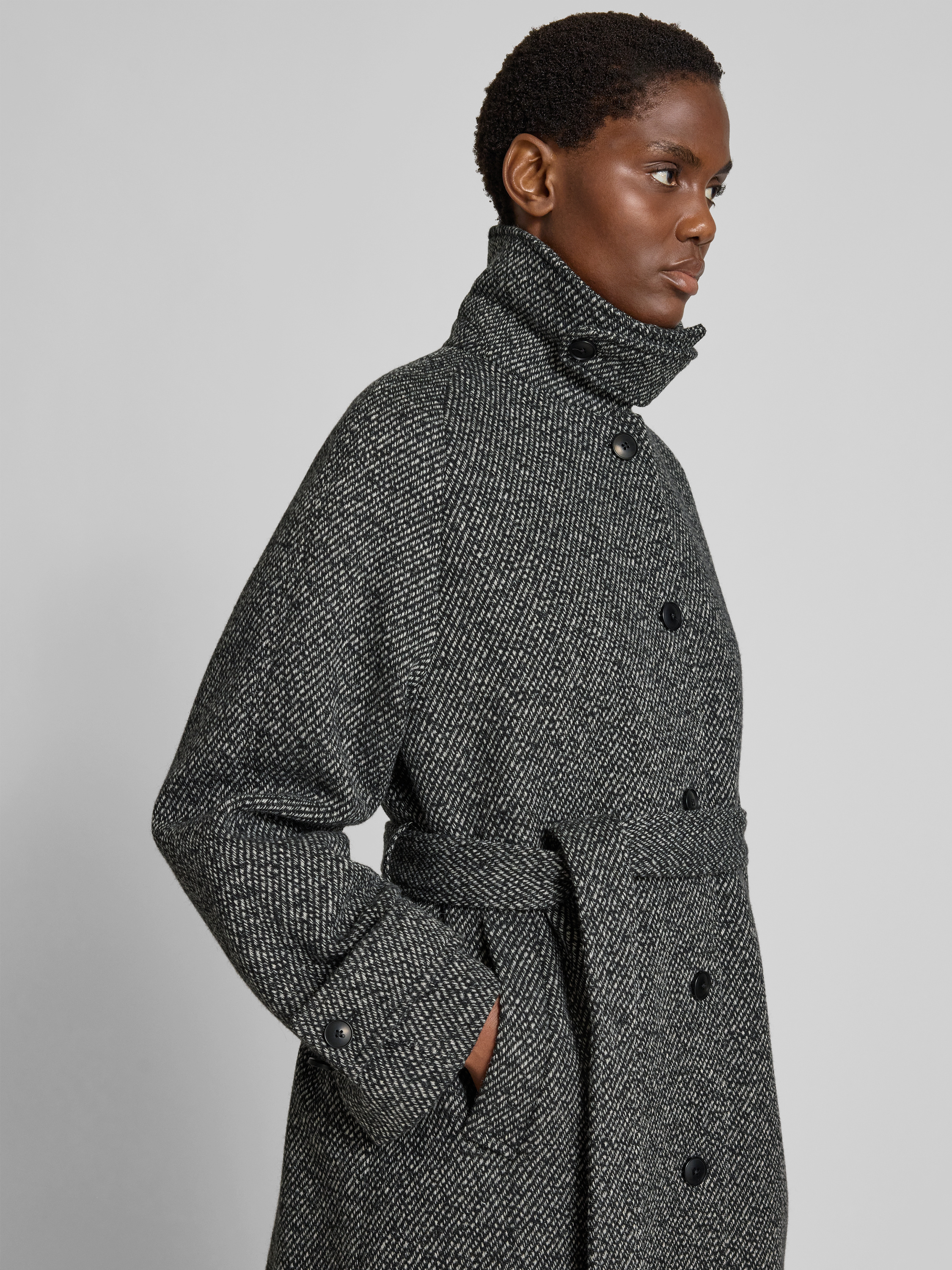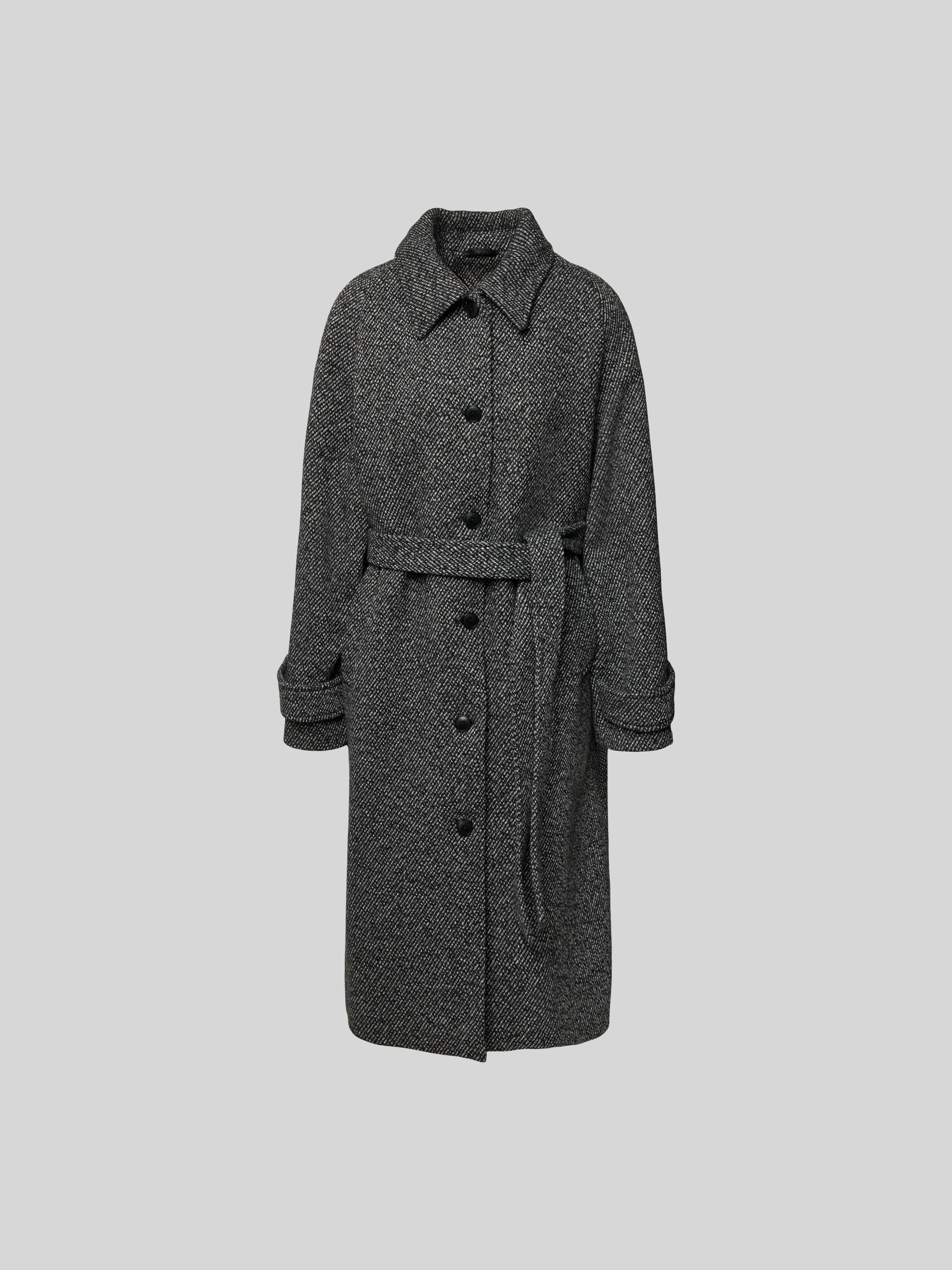Der Damen Mantel von Closed aus Woll-Mix zeigt sich im Regular Fit und bringt durch den Kentkragen eine klassische Note in die Garderobe. Ein Taillengürtel sorgt für individuelle Anpassung, während die Knopfleiste das Erscheinungsbild dezent abrundet. So lässt sich dieses Modell vielseitig im Alltag kombinieren.