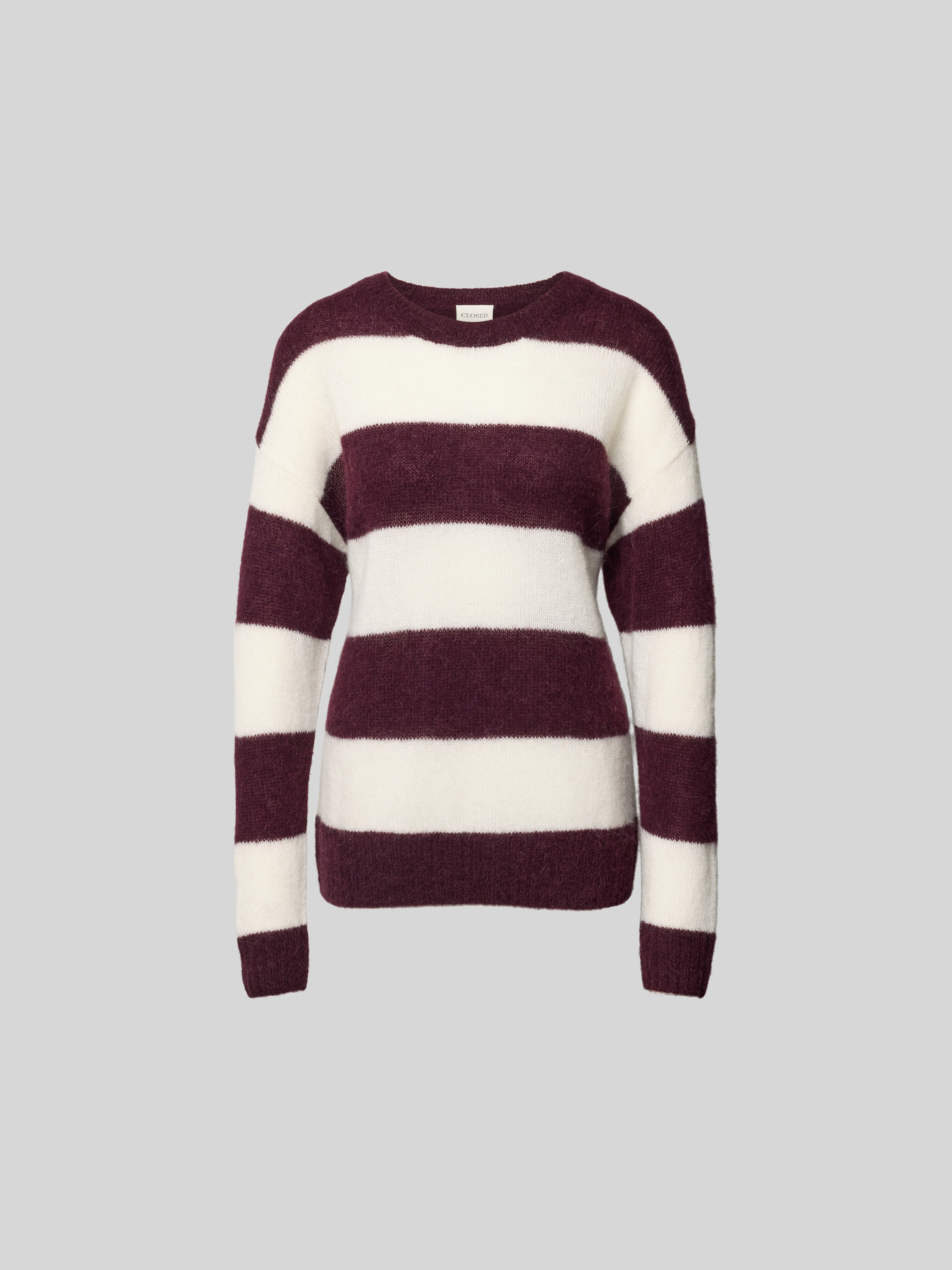 Der Pullover von Closed fällt durch seinen Oversized-Schnitt angenehm locker und schafft damit Bewegungsfreiheit im Alltag. Ein Woll-Alpaka-Mix sorgt für ein weiches Tragegefühl, das auch an kühleren Tagen angenehm wärmt. Die gerippten Abschlüsse und der Rundhalsausschnitt runden das Design unaufdringlich ab.