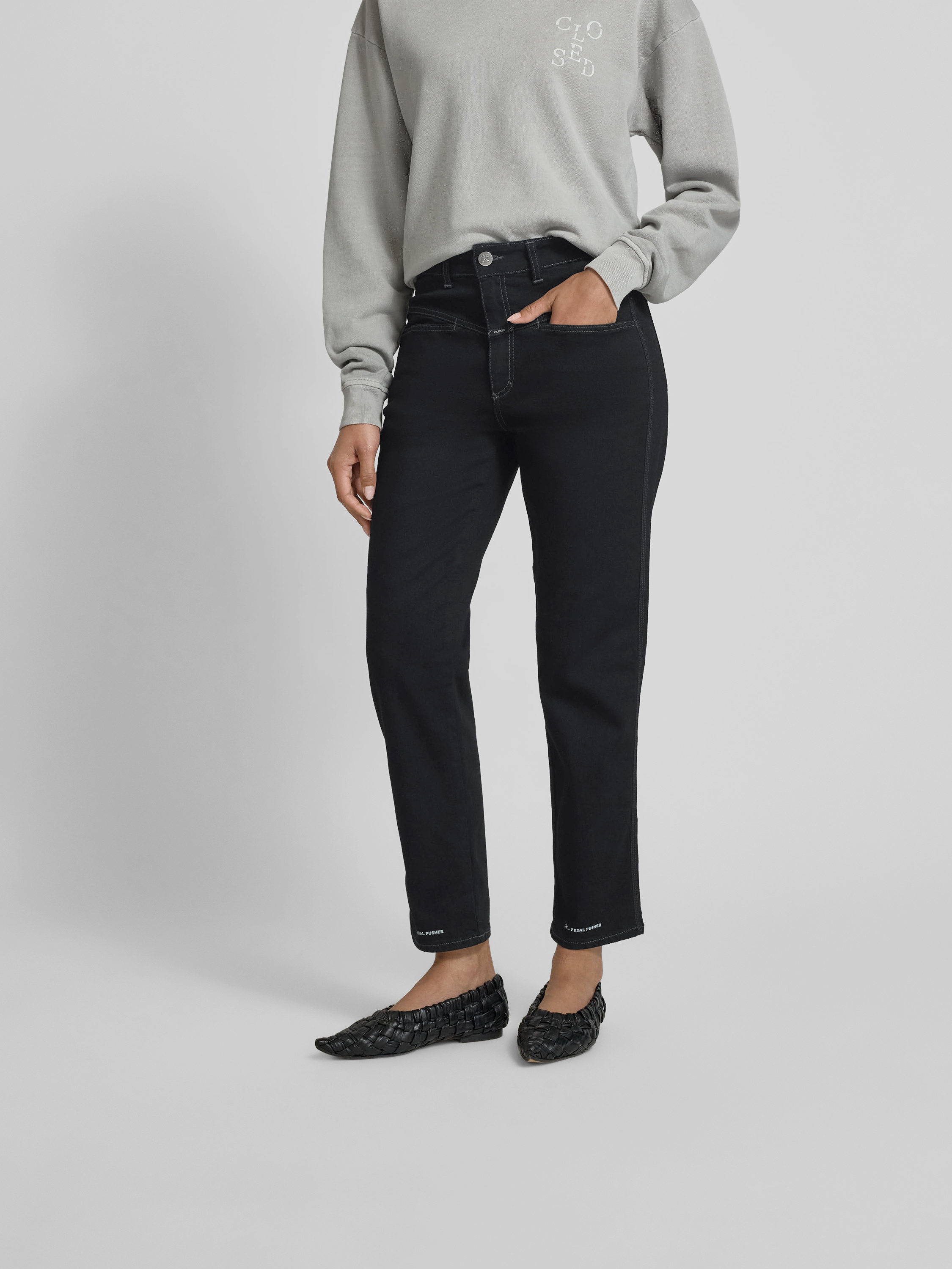 Die Damen Jeans von Closed vereint Komfort und Stil durch einen elastischen Baumwoll-Mix, der sich angenehm anfühlt und Bewegungsfreiheit bietet. Der Regular Fit sorgt für eine schmeichelhafte Passform, während das Logo-Patch einen dezenten Akzent setzt. Praktische Eingriff- und Gesäßtaschen runden das Design ab.