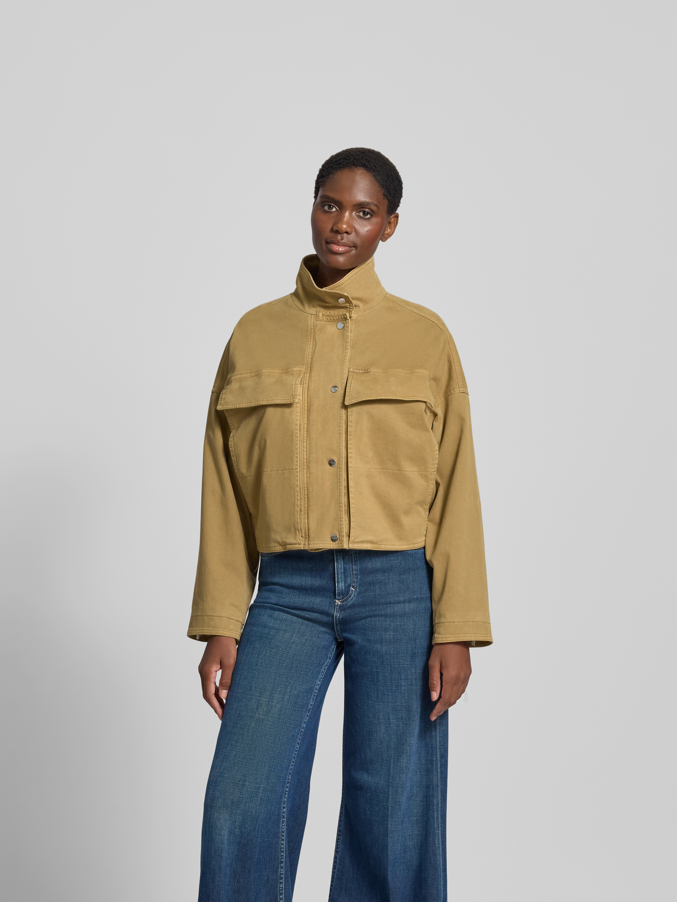 Die Relaxed Fit Jacke mit Stehkragen von Closed überzeugt durch ihren lässigen Schnitt und den angenehmen Bio-Baumwoll-Mix. Der Stehkragen verleiht der Jacke eine moderne Note, während Brust- und Eingrifftaschen praktischen Stauraum bieten. Ein vielseitiges Kleidungsstück für verschiedenste Anlässe.