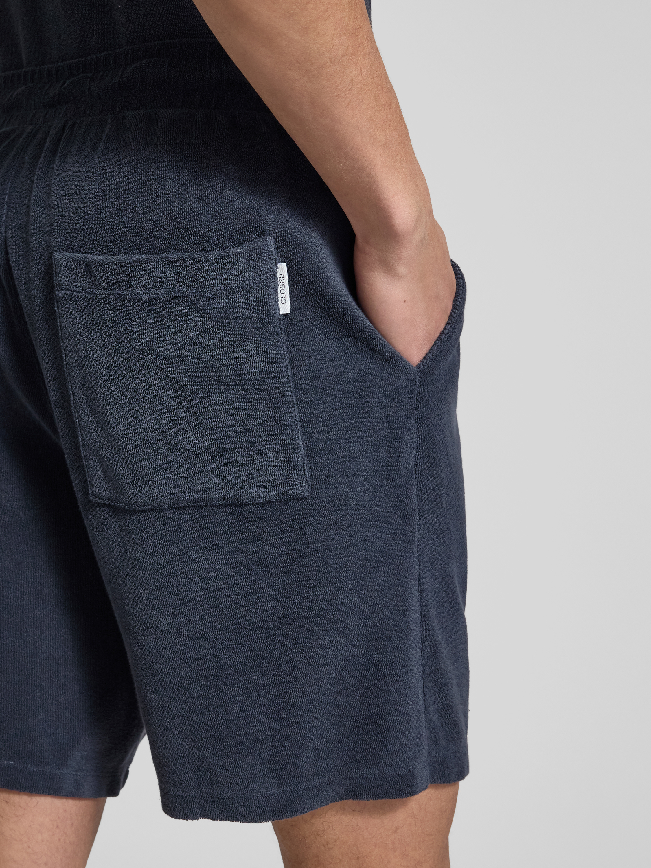 Die Herren Sweatshorts von Closed kombinieren einen Baumwoll-Mix mit der besonderen Textur von Frottee, was sich angenehm auf der Haut anfühlt. Durch die gerade Passform und den elastischen Bund mit Tunnelzug bietet sich eine komfortable Bewegungsfreiheit. Praktische Eingrifftaschen runden das Design ab.