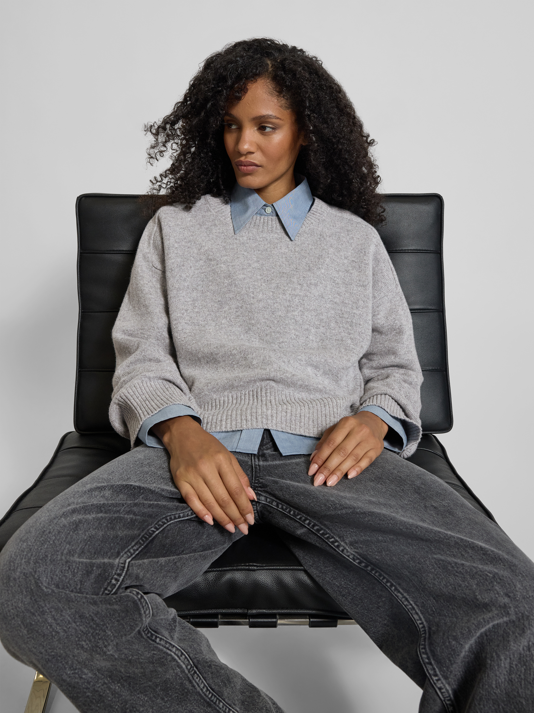 Der Damen Woll-Pullover von Closed aus reiner Wolle zeigt sich in lockerer Passform mit überschnittenen Schultern. Durch den breiten Bund erhält der Schnitt eine moderne Note, während die Strick-Optik vielseitige Kombinationsmöglichkeiten eröffnet. So eignet sich der Woll-Pullover mit breitem Bund für entspannte Tage.