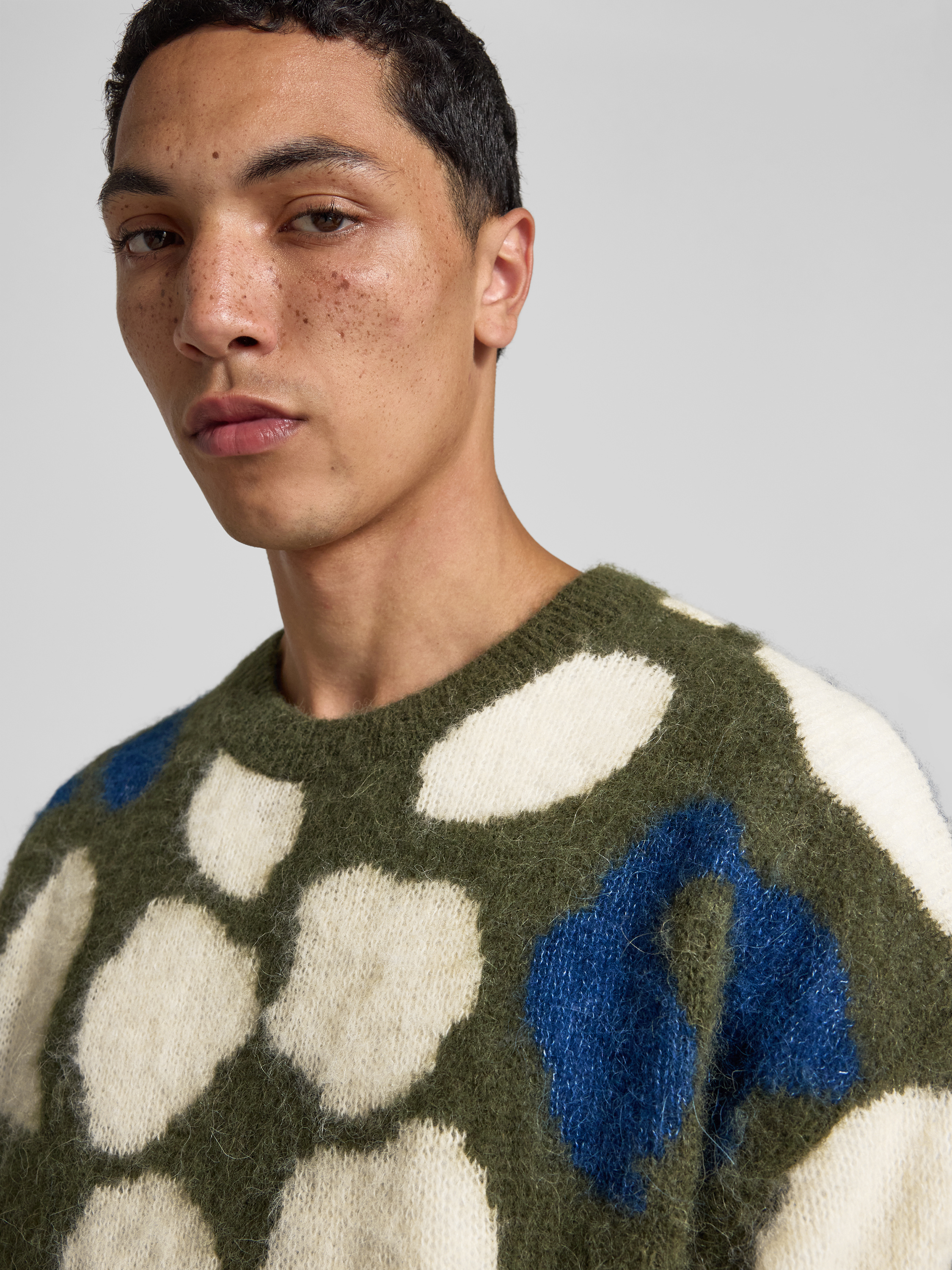 Der Herren Wollpullover von Closed kombiniert einen hochwertigen Woll-Alpaka-Mix mit einem ansprechenden Allover-Print. Durch den Regular Fit und den Rundhalsausschnitt erhält man ein bequemes Tragegefühl, während die elastischen Abschlüsse eine angenehme Passform garantieren. Ideal für kühle Tage.