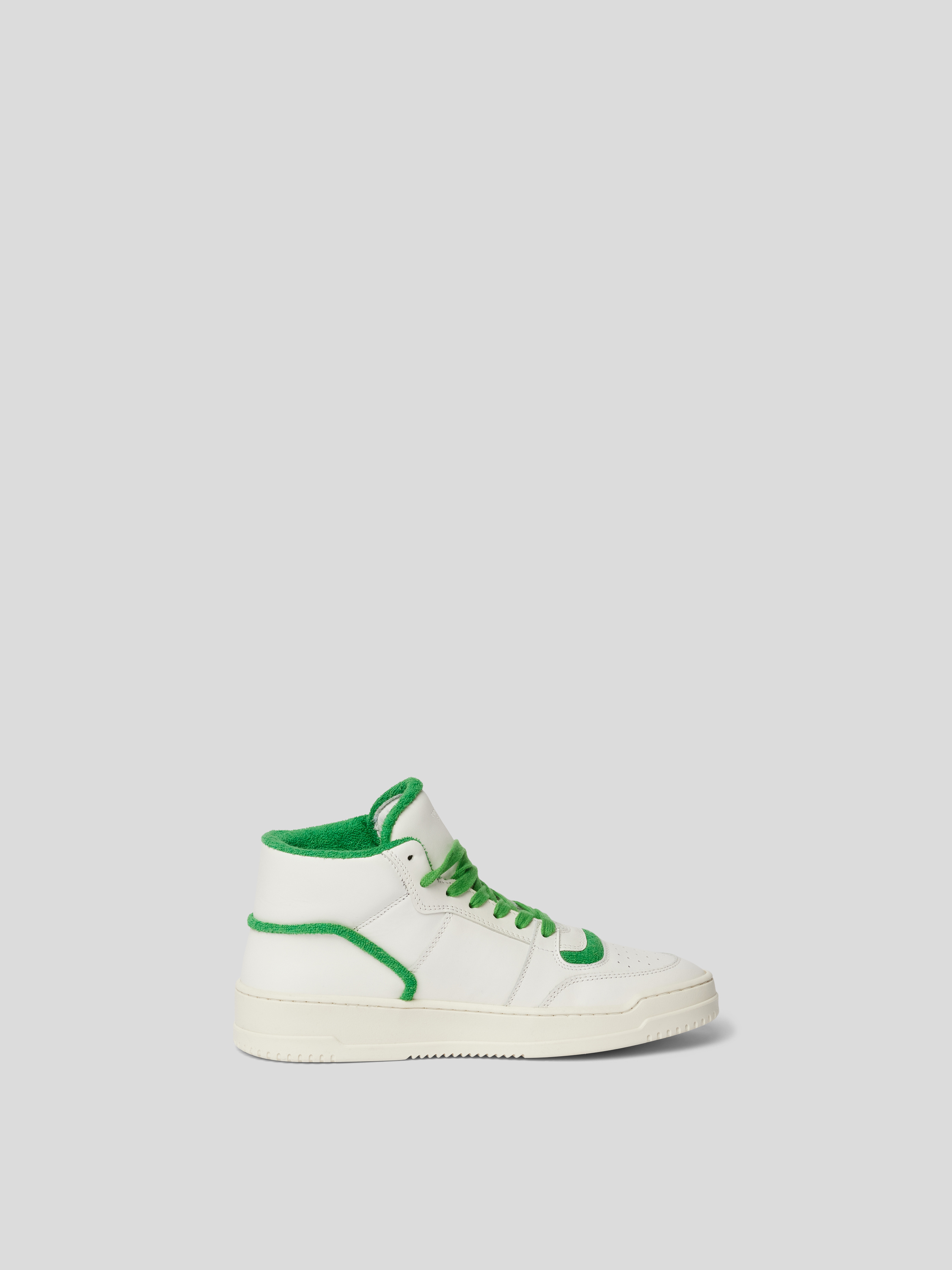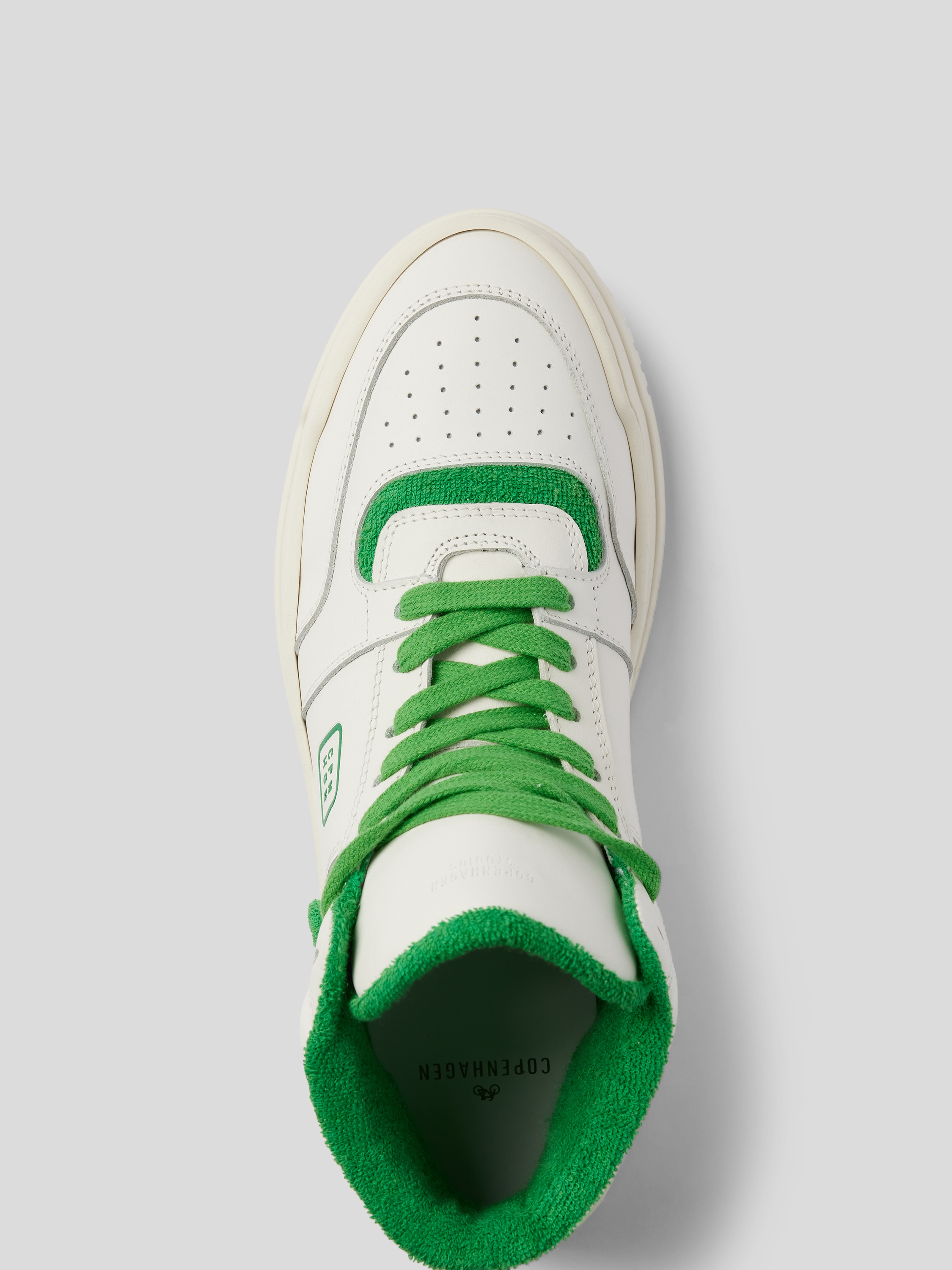 Der Damen High-Top-Sneaker von COPENHAGEN setzt auf echtes Leder, das angenehm am Fuß liegt und lange Freude bereitet. Die abgerundete Spitze und der Kontrastbesatz sorgen für eine moderne Note. Durch die angenehme Schafthöhe entsteht ein angenehmes Tragegefühl im Alltag.