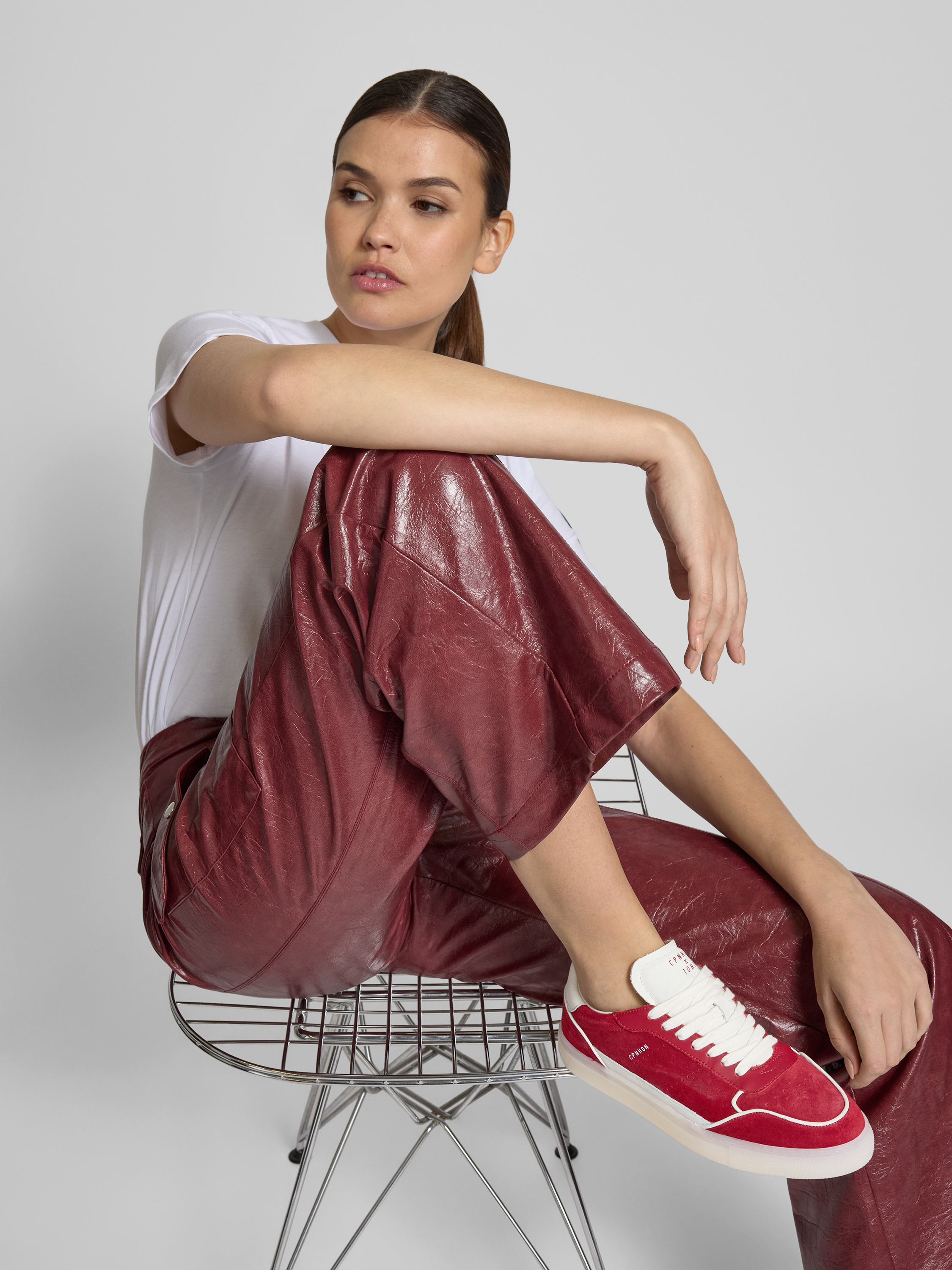 Die Damen Sneaker von COPENHAGEN zeigen sich mit abgerundeter Spitze und setzen durch den markanten Label-Print einen sportiven Akzent. Dank der strukturierten Sohle erhält man angenehmen Halt im Alltag, während die Passform vielseitige Kombinationsmöglichkeiten mit sich bringt. Das schlichte Design bleibt stets modern.