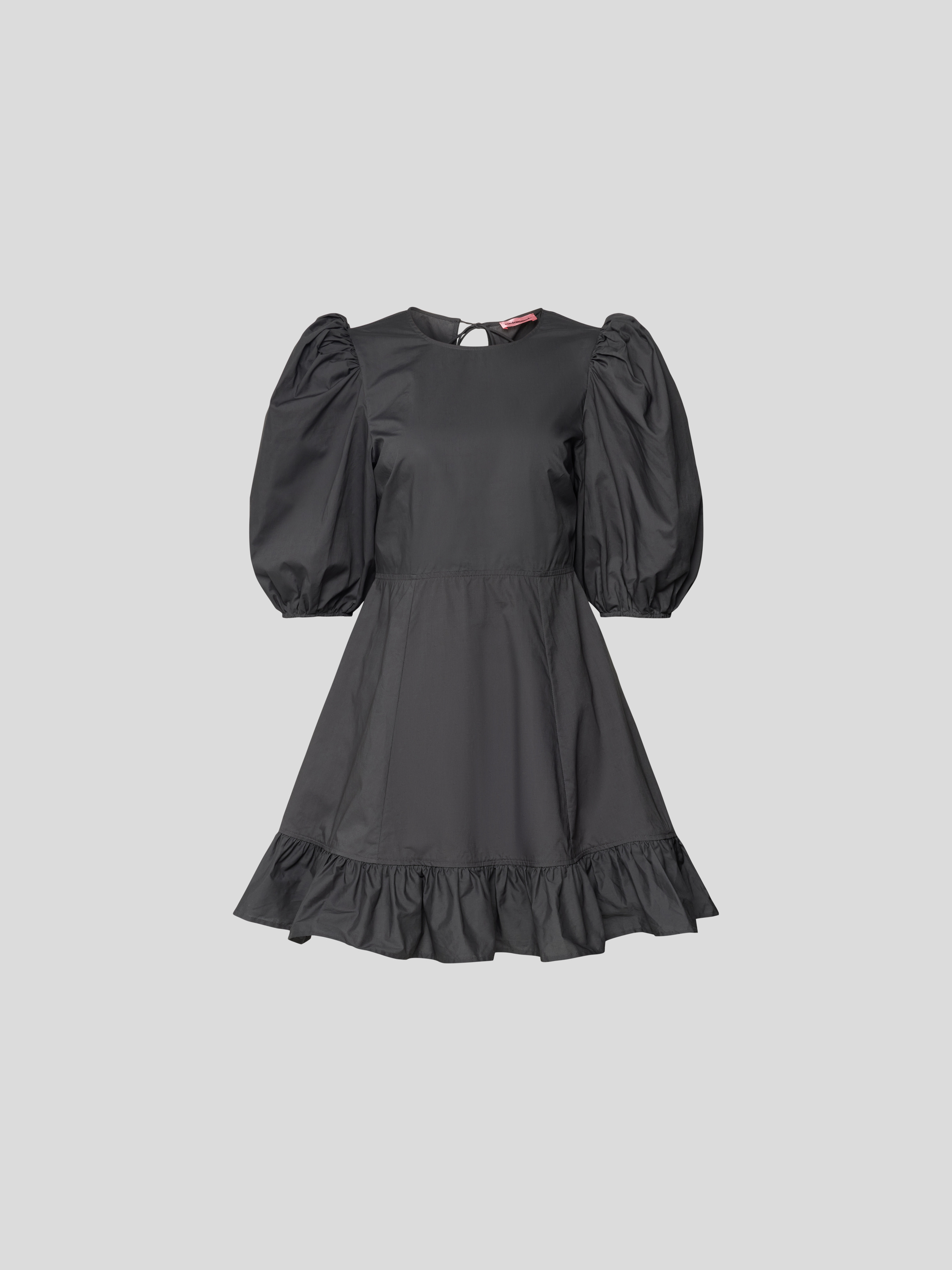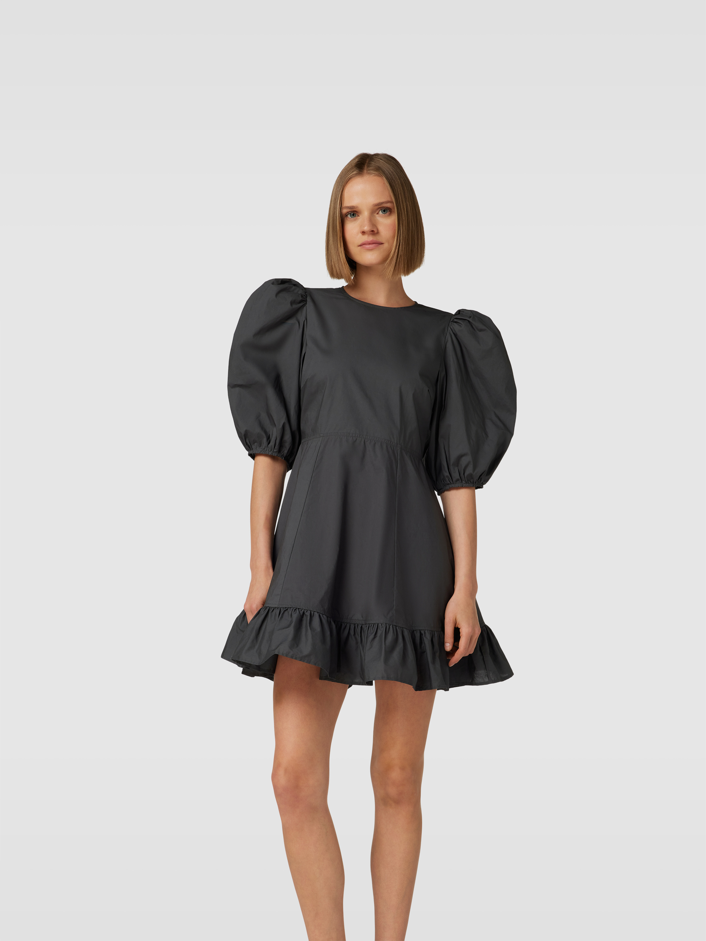 Das Minikleid mit Ballonärmeln von Custommade fällt durch seine taillierte Passform und den sanft schwingenden Volantsaum angenehm auf. Die reine Baumwolle fühlt sich weich an und sorgt für ein luftiges Tragegefühl. Durch den Rundhalsausschnitt entsteht ein klarer, unkomplizierter Look.