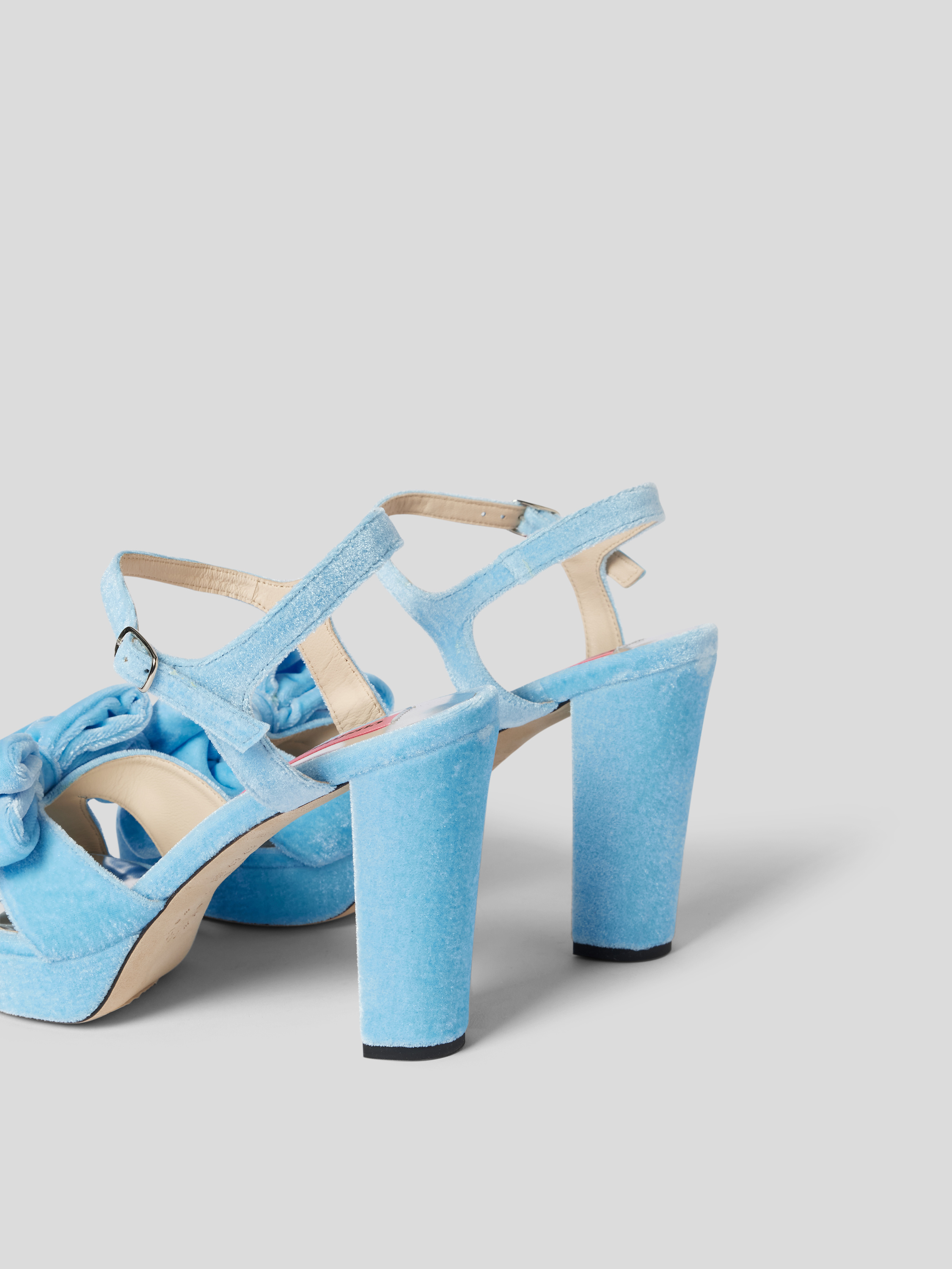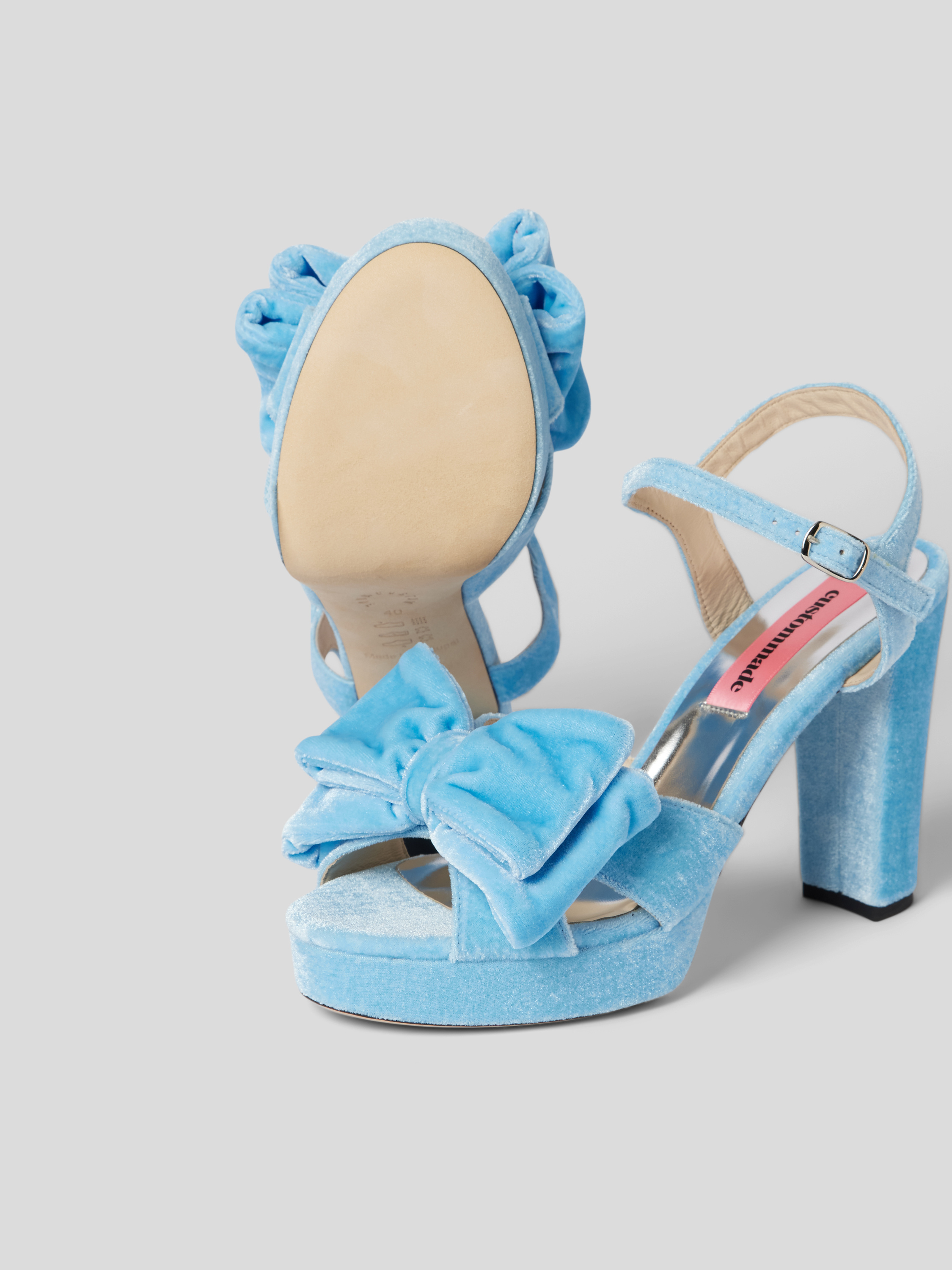 Die Sandalette aus Leder-Mix von Custommade verbindet ein modisches Erscheinungsbild mit einem angenehmen Laufgefühl. Durch den stabilen Blockabsatz und die samtartige Oberfläche entsteht ein spannender Kontrast, der das Outfit abwechslungsreich ergänzt. Der variable Riemen sorgt dabei für einen sicheren Sitz.