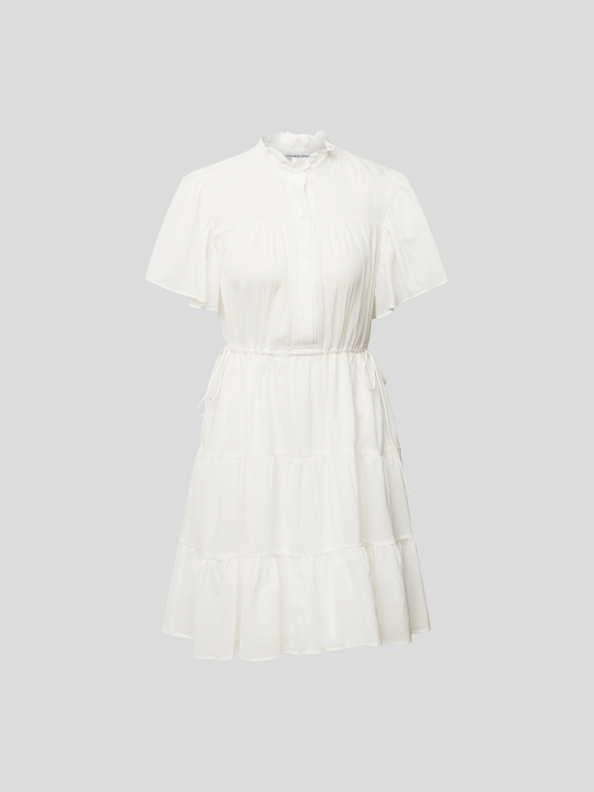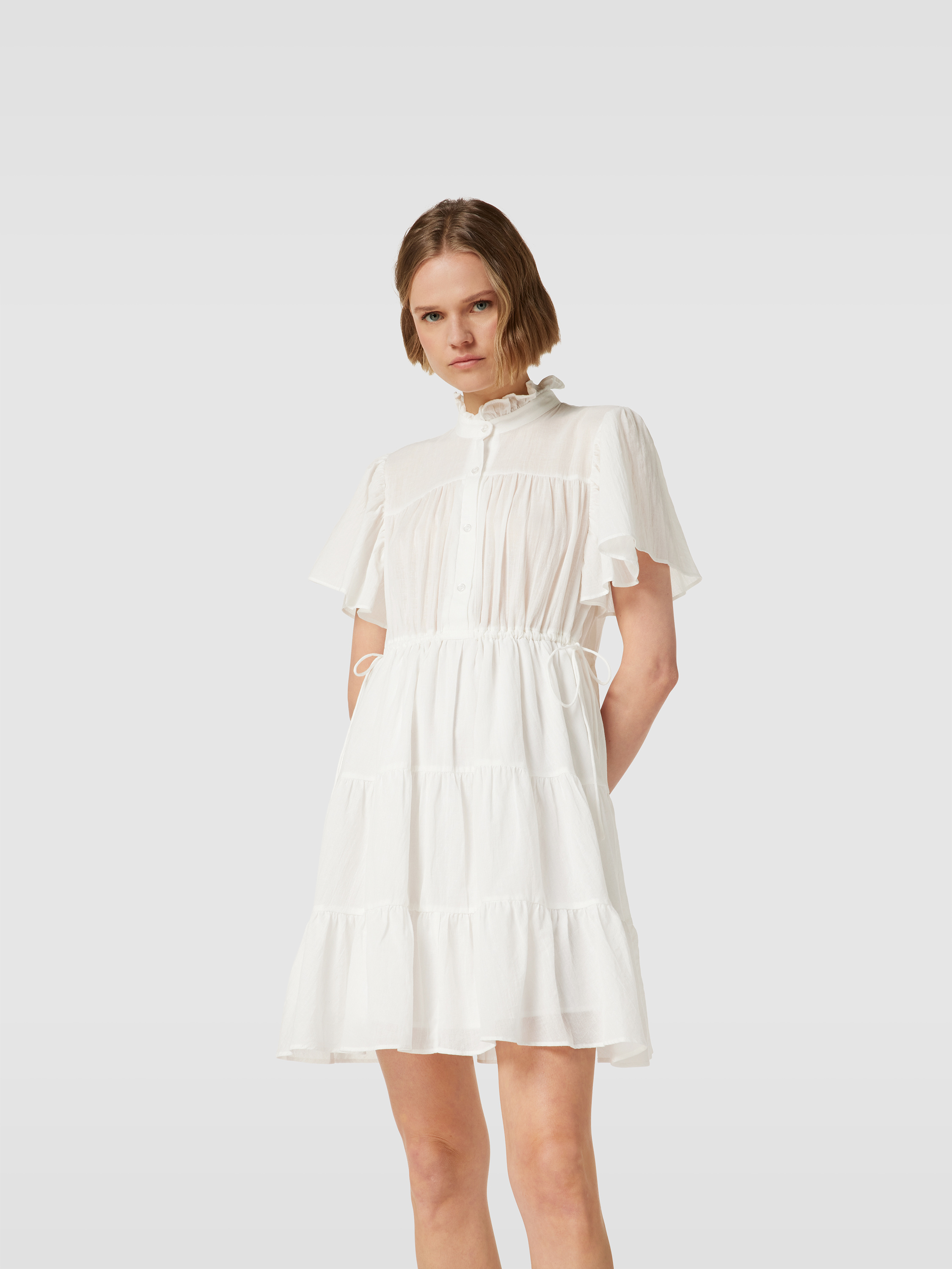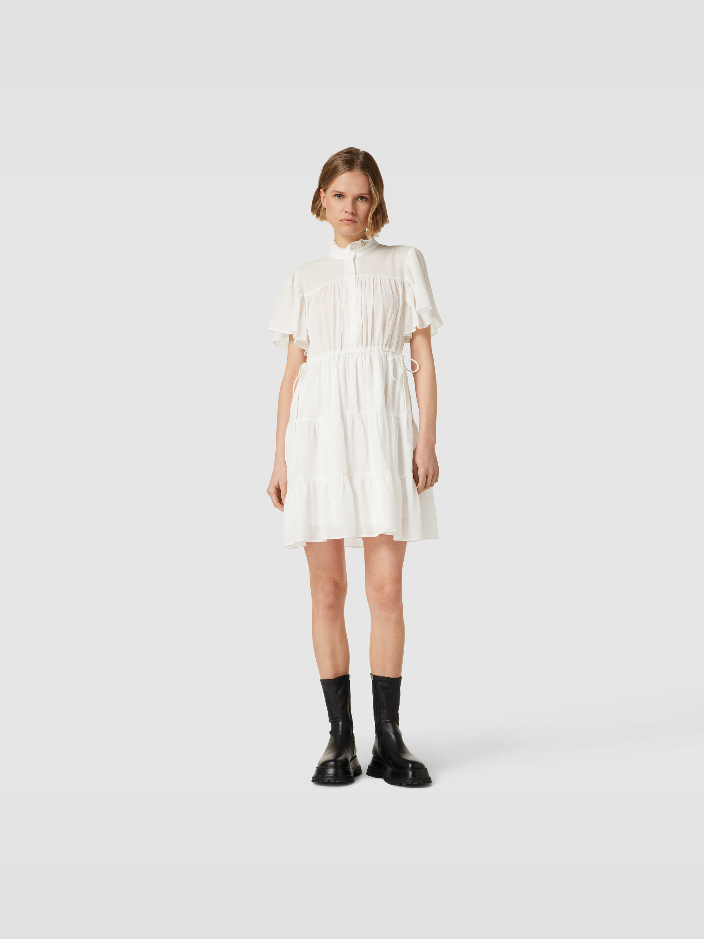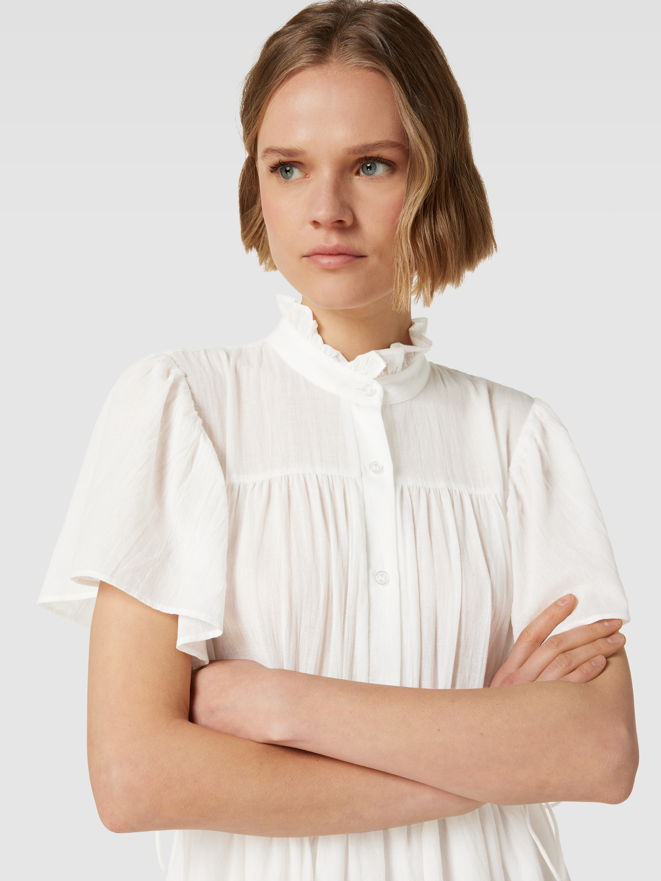 Das Blusenkleid mit Stehkragen von Designers Remix aus reiner Baumwolle zeigt sich mit tailliertem Schnitt und kurzen Ärmeln. Durch den Stehkragen erhält das Design eine moderne Note, während die lockere Passform Bewegungsfreiheit im Alltag ermöglicht. So eignet es sich für vielfältige Anlässe.