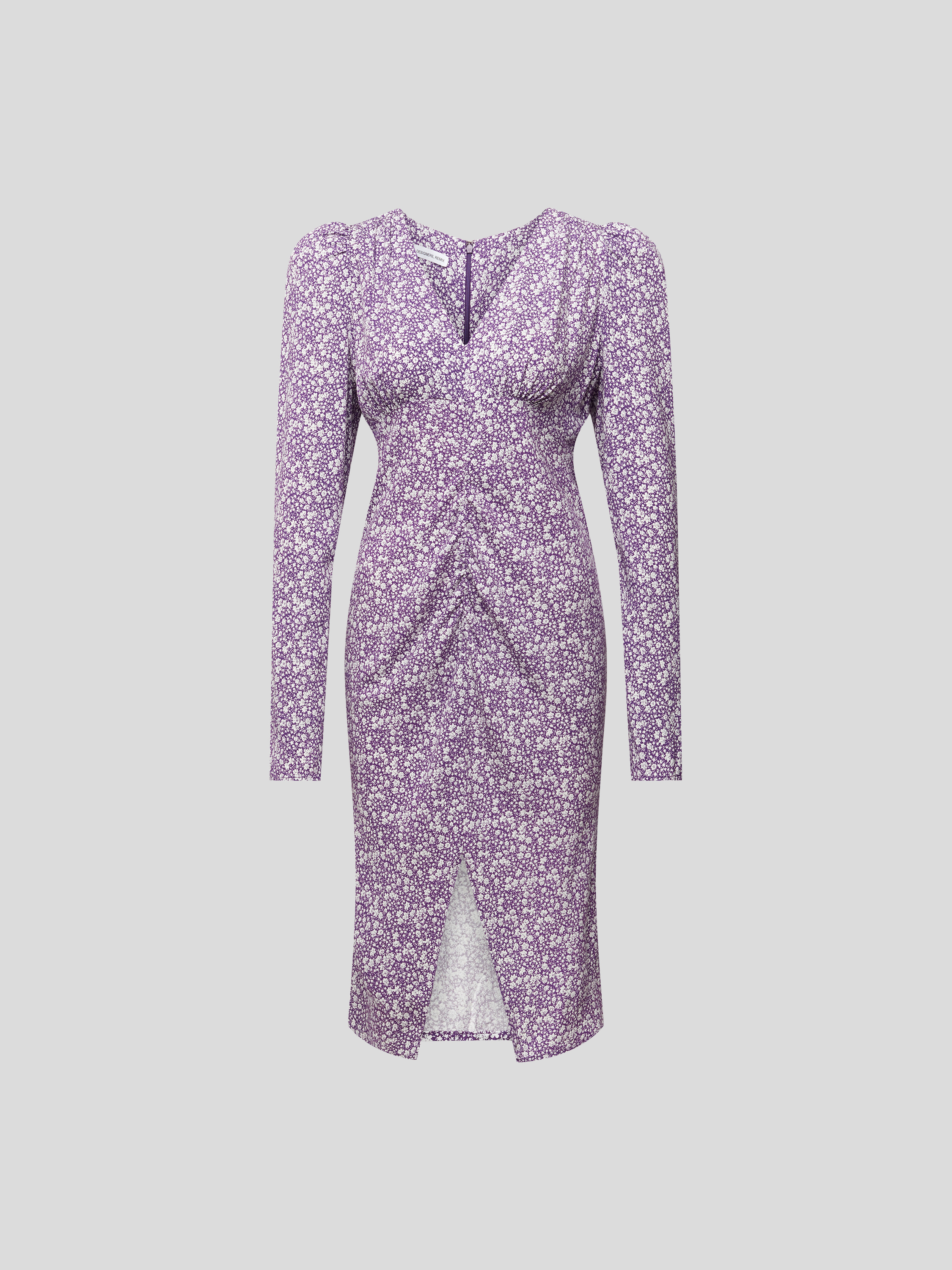 Das Midikleid mit Allover-Muster von Designers Remix zeichnet sich durch seinen taillierten Schnitt aus, der eine feminine Silhouette unterstreicht. Reine Viskose sorgt für ein angenehmes Tragegefühl, während das langärmelige Design vielseitige Kombinationsmöglichkeiten im Alltag eröffnet. Durch das Muster entsteht ein lebendiger Gesamteindruck.