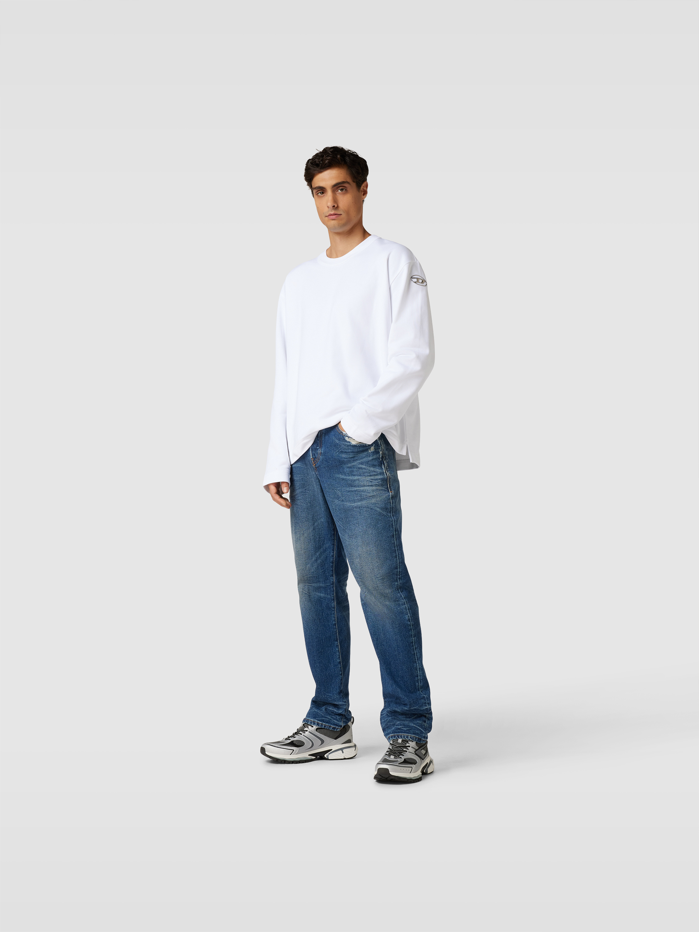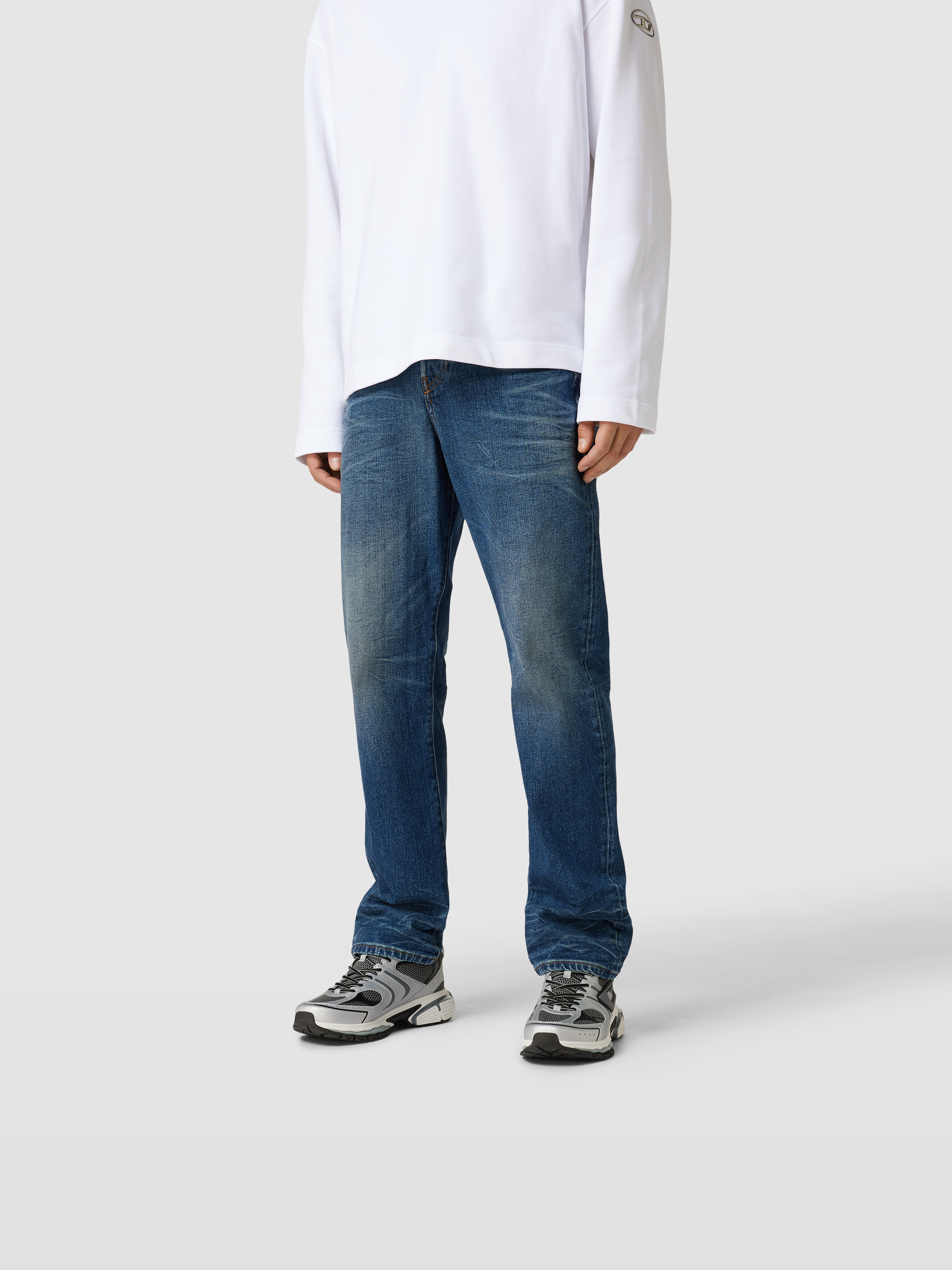 Die Herren Bootcut Jeans von Diesel zeigt sich durch ihren Baumwoll-Hanf-Mix angenehm leicht und atmungsaktiv. Mit ausgestelltem Bein und klassischem 5-Pocket-Design sorgt sie für eine lässige Silhouette, während das dezente Label-Detail einen modernen Akzent setzt.
