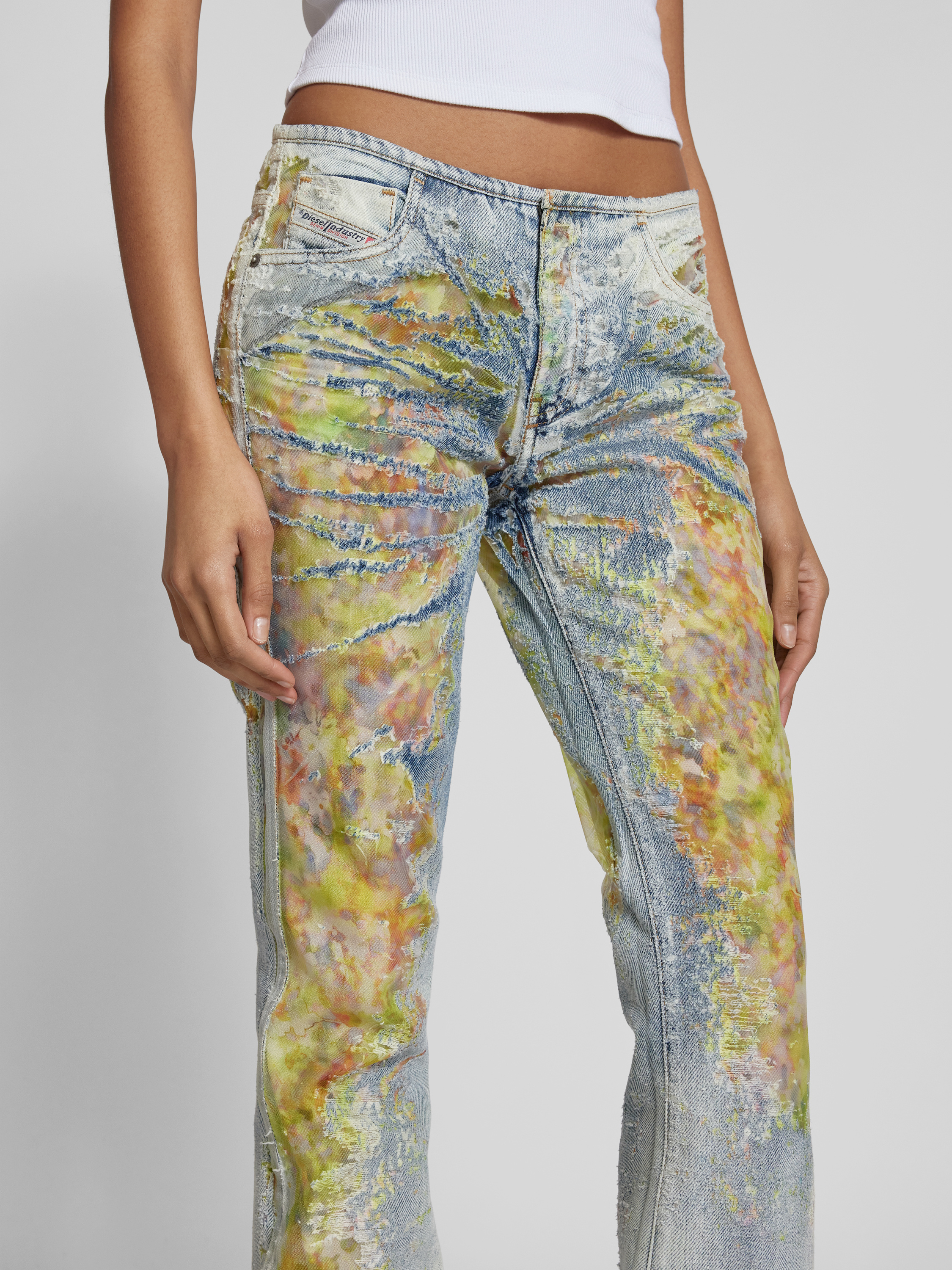 Die Flared Fit Jeans im Destroyed-Look von Diesel fällt durch ihren ausgestellten Schnitt auf, der Bewegungsfreiheit schenkt und einen entspannten Akzent setzt. Dank des schmalen Bundes sitzt sie angenehm auf der Hüfte, während das 5-Pocket-Design für praktischen Stauraum sorgt. Ihr markanter Look eignet sich für vielfältige Kombinationen.