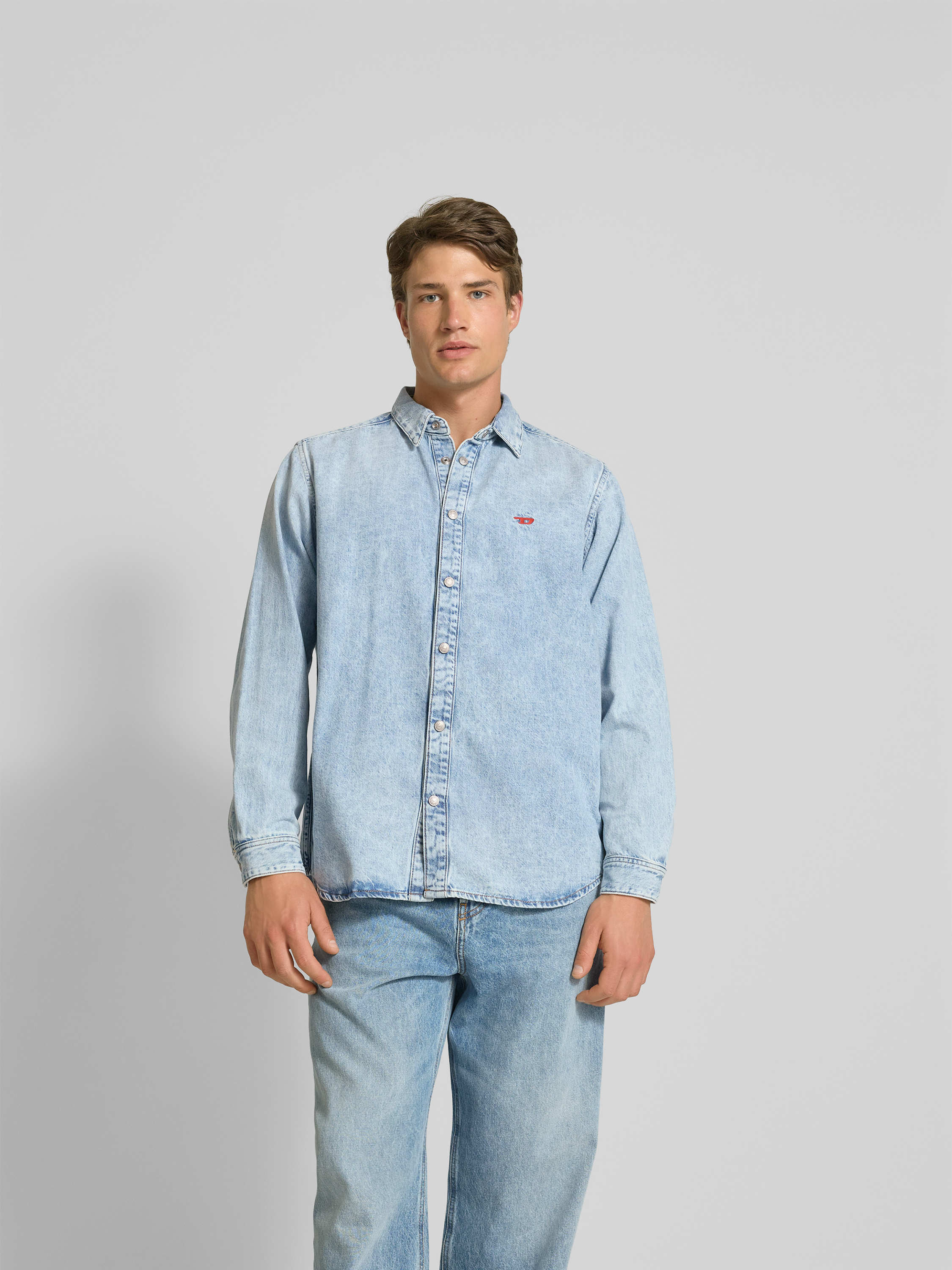 DieselJeanshemd mit Druckknopfleiste in hellblau
