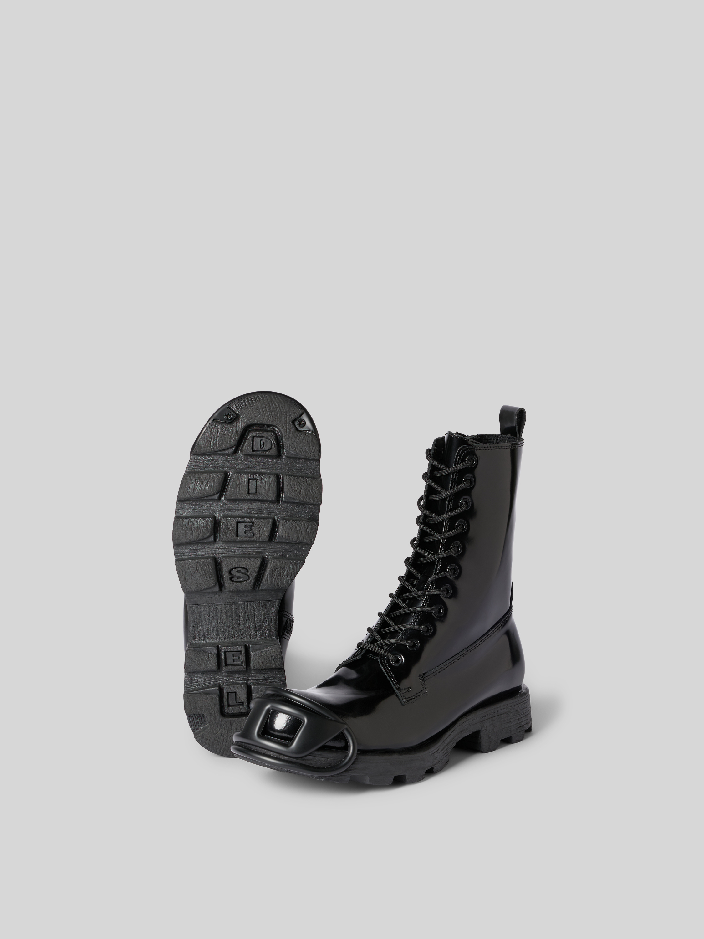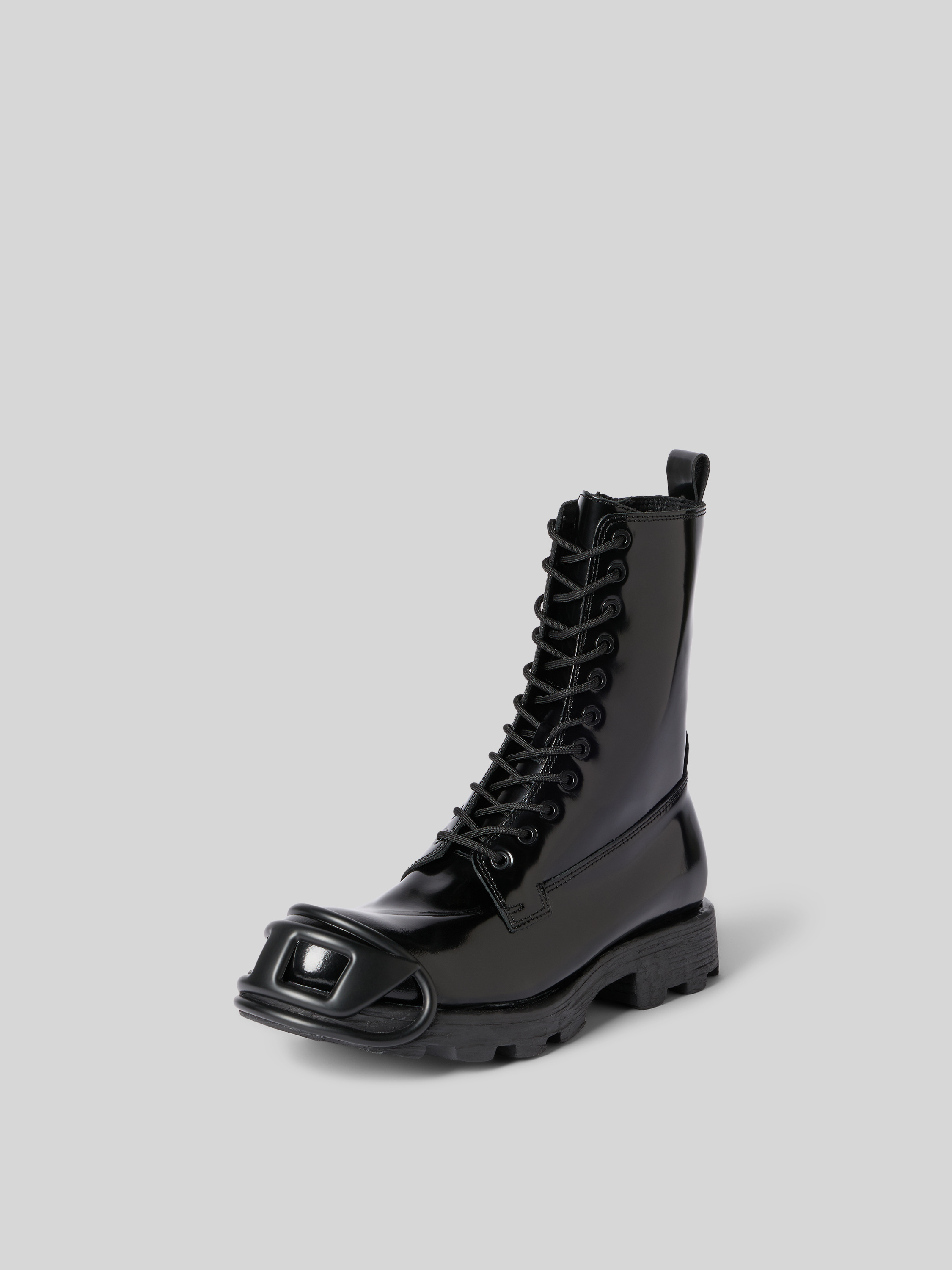 Der Herren Schnürstiefel von Diesel zeigt sich mit abgerundeter Passform und prägnantem Logo-Detail, wodurch sich ein markanter Look ergibt. Durch die profilierte Passform eignet sich dieses Modell besonders für wechselhaftes Wetter, während die Lack-Optik einen modernen Akzent setzt. Man erhält so einen Begleiter, der Alltag und Freizeit gleichermaßen unterstützt.