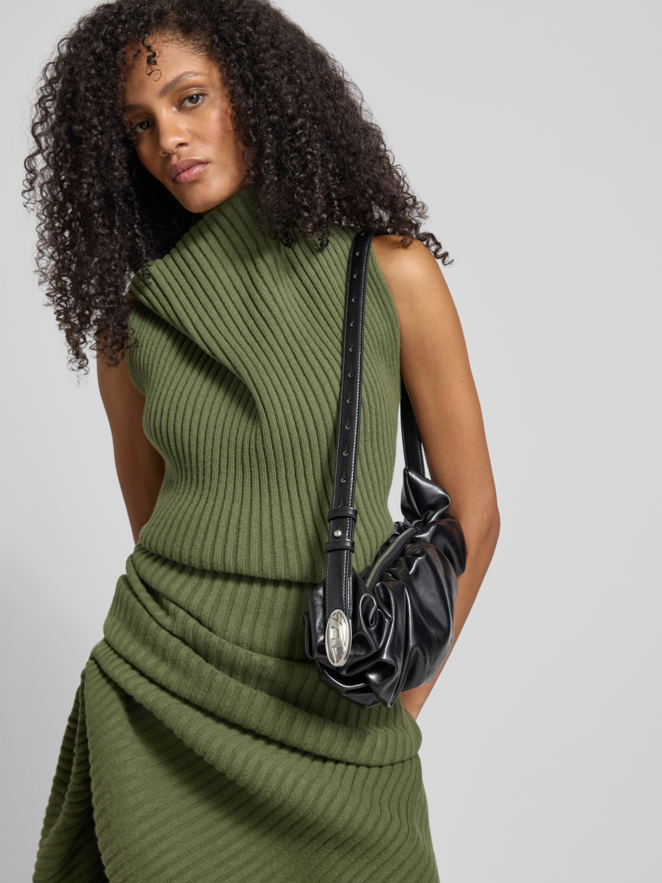 Die Damen Shoulder Bag von Diesel zeigt sich mit raffinierten Raffungen und einem auffälligen Strukturmuster, das dem Design eine individuelle Note verleiht. Dank des schmalen Schulterriemens liegt sie angenehm an und lässt sich unkompliziert tragen. Im Innenfach lassen sich Kleinigkeiten sicher und griffbereit verstauen.