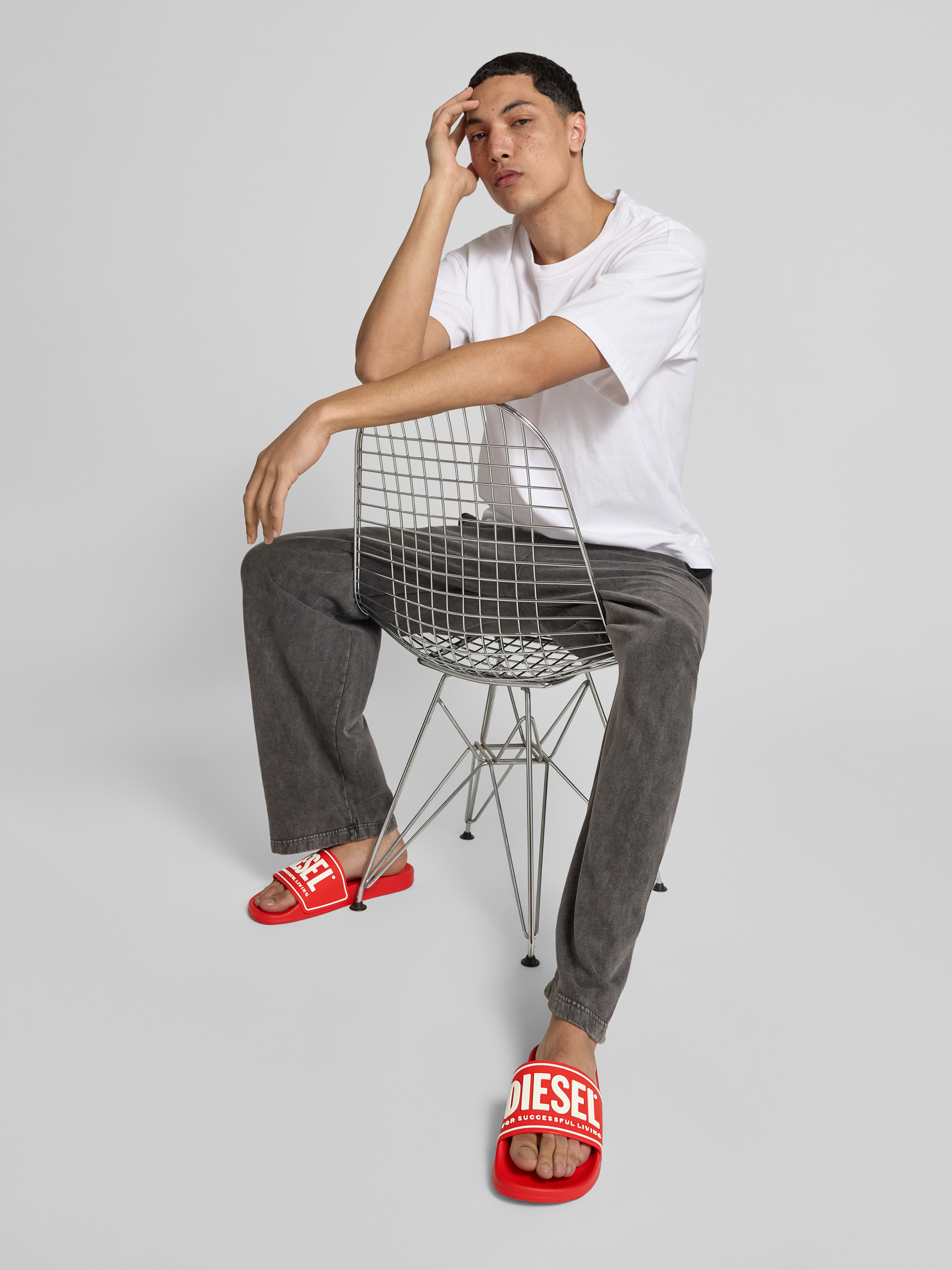 Die Herren Slides von Diesel zeigen sich mit abgerundeter Spitze und einem dezenten Label-Detail, das für einen markanten Akzent sorgt. Durch die strukturierte Sohle entsteht beim Gehen ein angenehmes Laufgefühl, das man im Alltag schätzt. Die offene Form eignet sich für entspannte Momente zu Hause oder unterwegs.