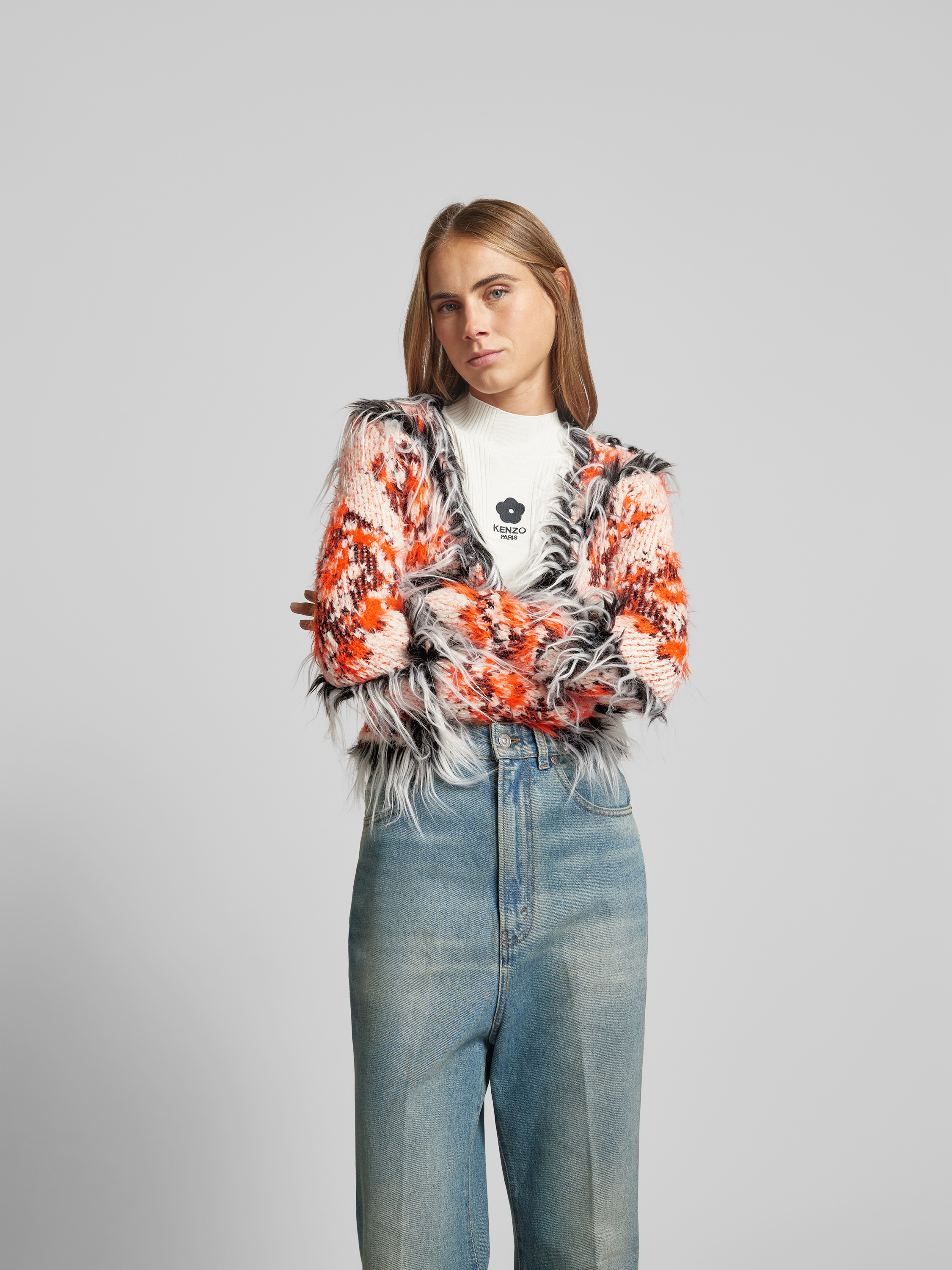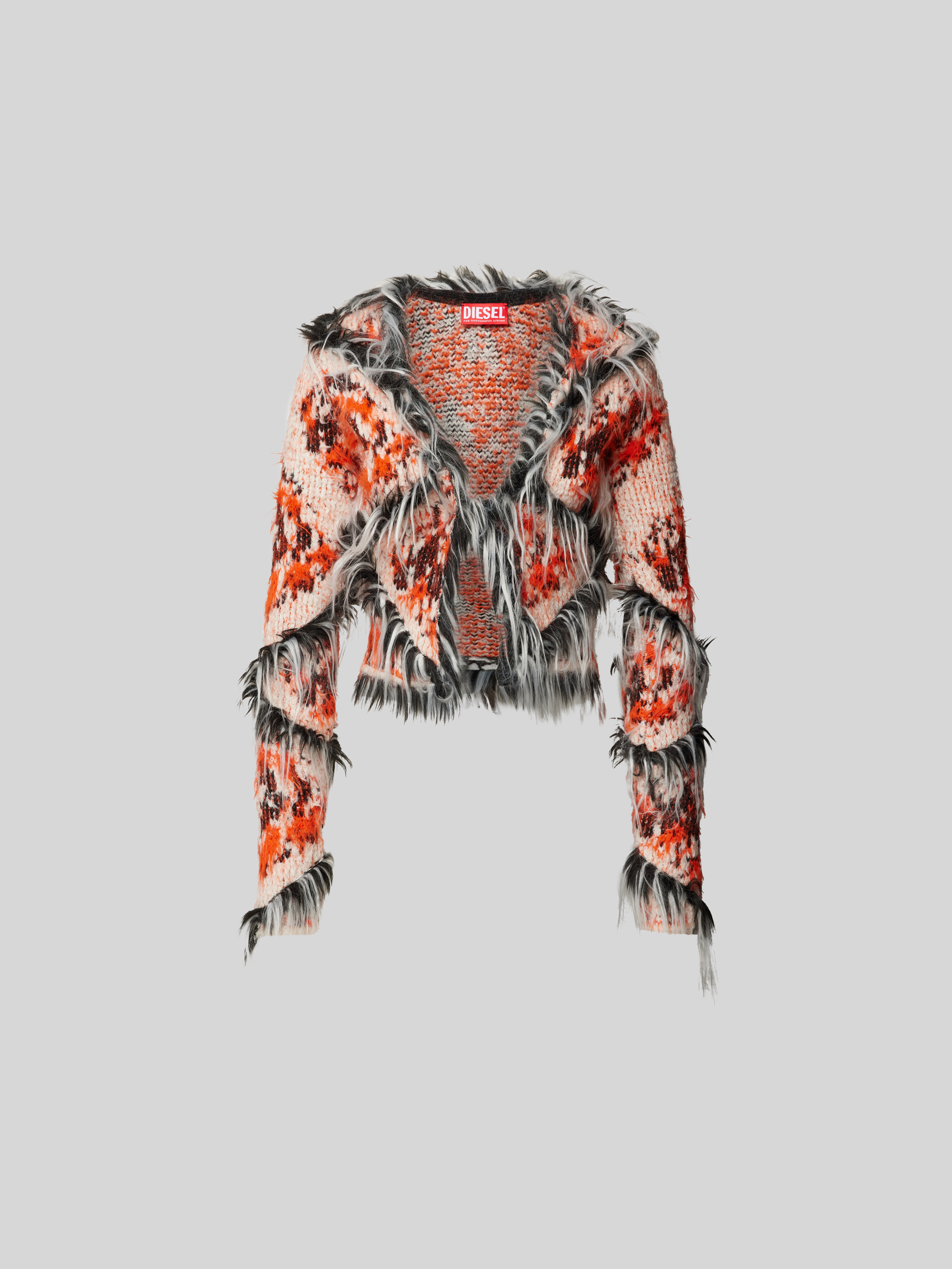 DieselStrickjacke mit Ausfransungen in fuchsia
