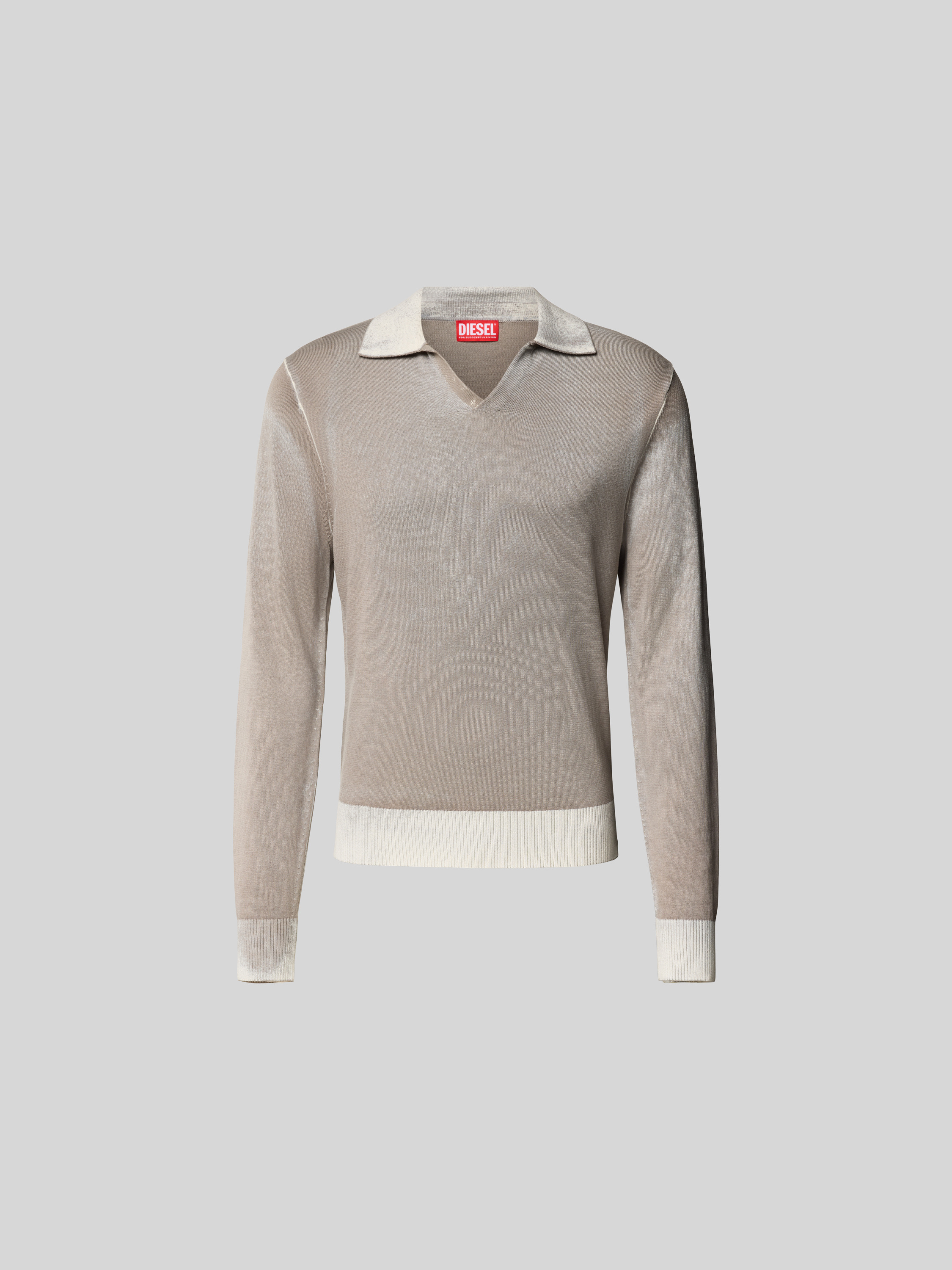 Das Herren Sweatshirt von Diesel zeigt sich im Regular Fit und bringt mit dem Polokragen sowie dem V-Ausschnitt eine klassische Note ins Spiel. Gefertigt aus reiner Baumwolle, fühlt sich das Material angenehm auf der Haut an und ermöglicht einen entspannten Sitz. Durch die gerippten Abschlüsse bleibt der Look zurückhaltend, sodass man es vielseitig kombinieren kann.