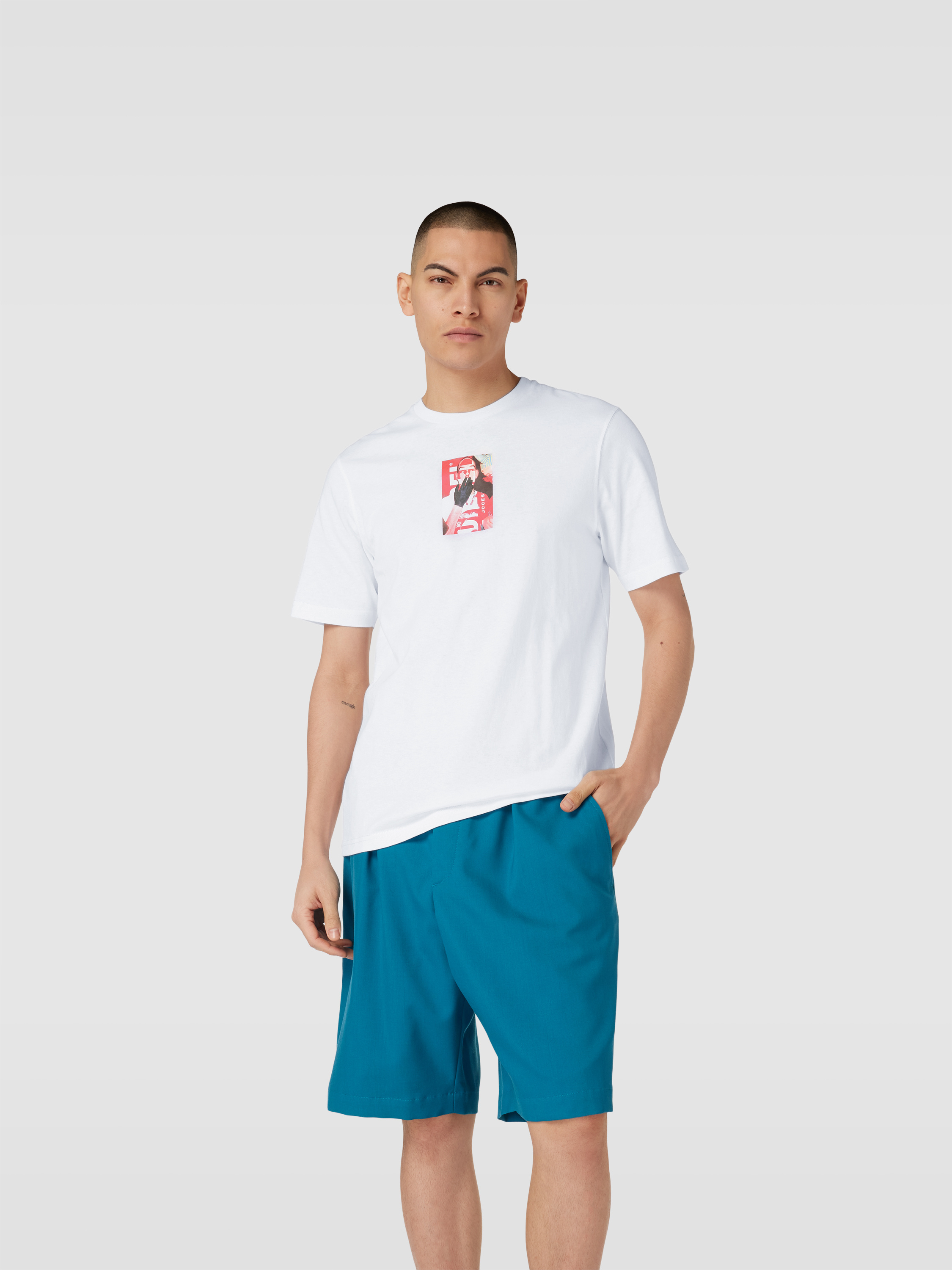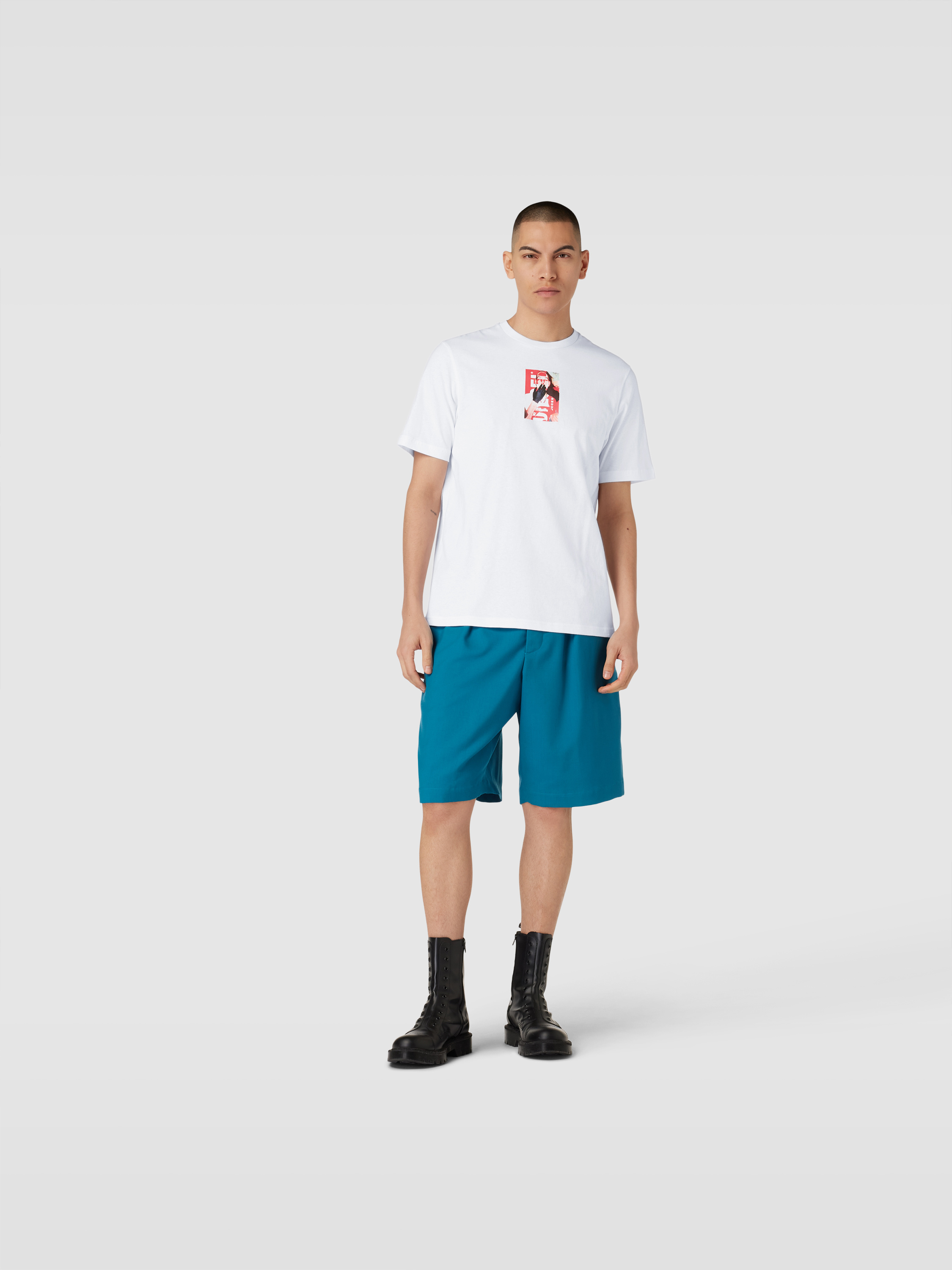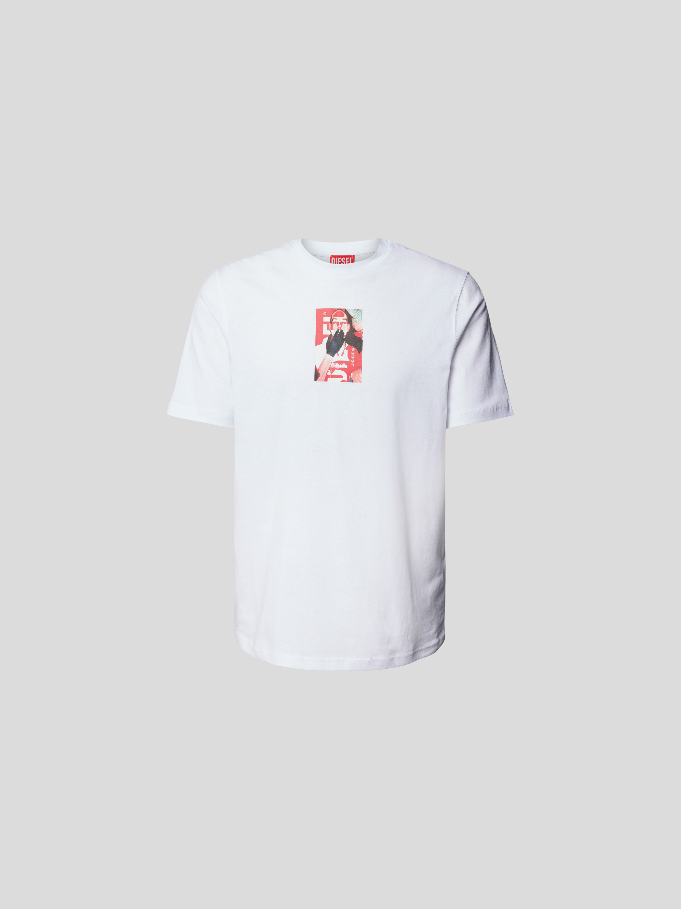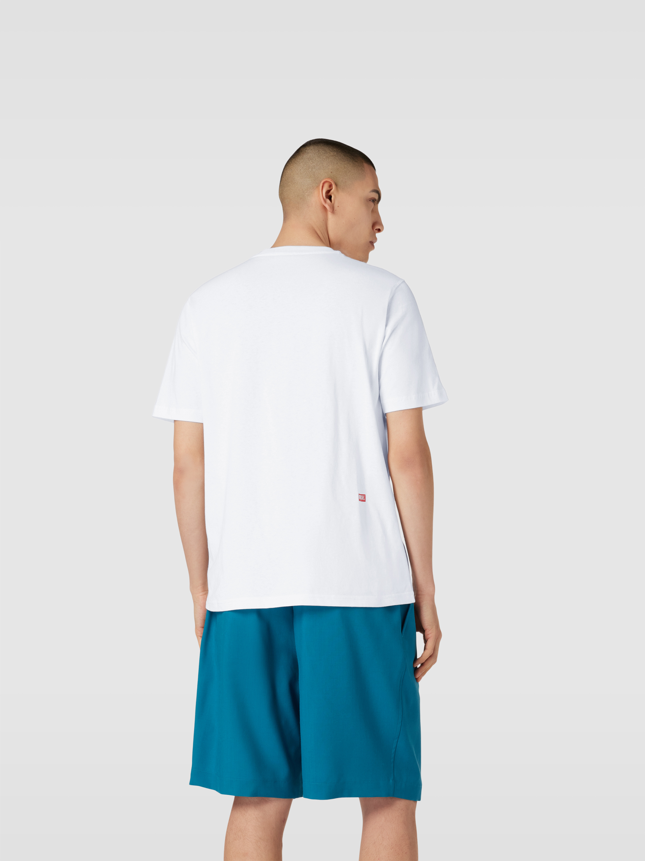 Das Herren T-Shirt von Diesel präsentiert sich im Regular Fit und sorgt durch reine Baumwolle für angenehmen Tragekomfort. Das unifarbene Design wird durch den Label-Print dezent aufgelockert. Dank klassischem Rundhalsausschnitt lässt sich das Shirt vielseitig kombinieren und unkompliziert im Alltag einsetzen.