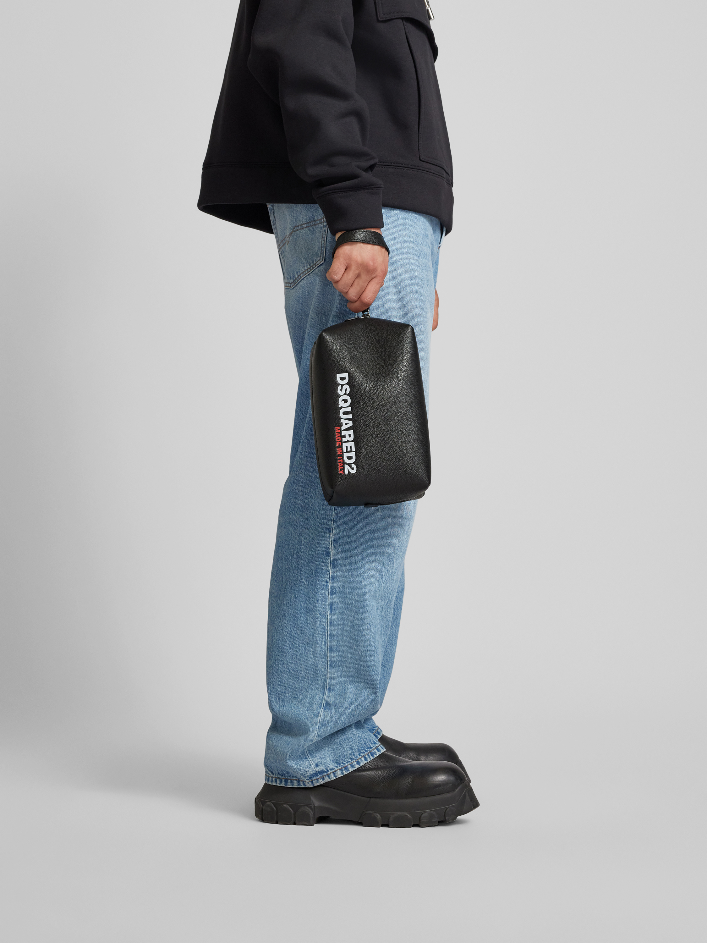 Der Kulturbeutel von Dsquared2 Shoes zeigt sich mit einem klaren, unifarbenen Design und einem markanten Label-Print. Dank der kompakten Form lässt sich der Bag unkompliziert verstauen, sodass Pflegeartikel unterwegs stets griffbereit bleiben. Im geräumigen Hauptfach finden alltägliche Utensilien mühelos Platz.