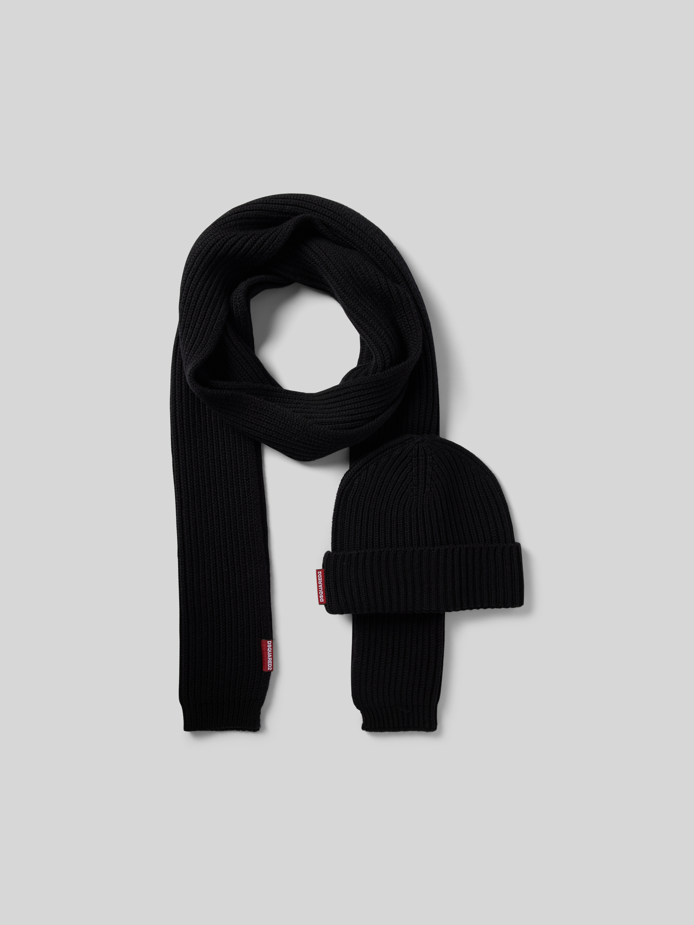 Dsquared2Wollschal im Set mit Wollmütze in black