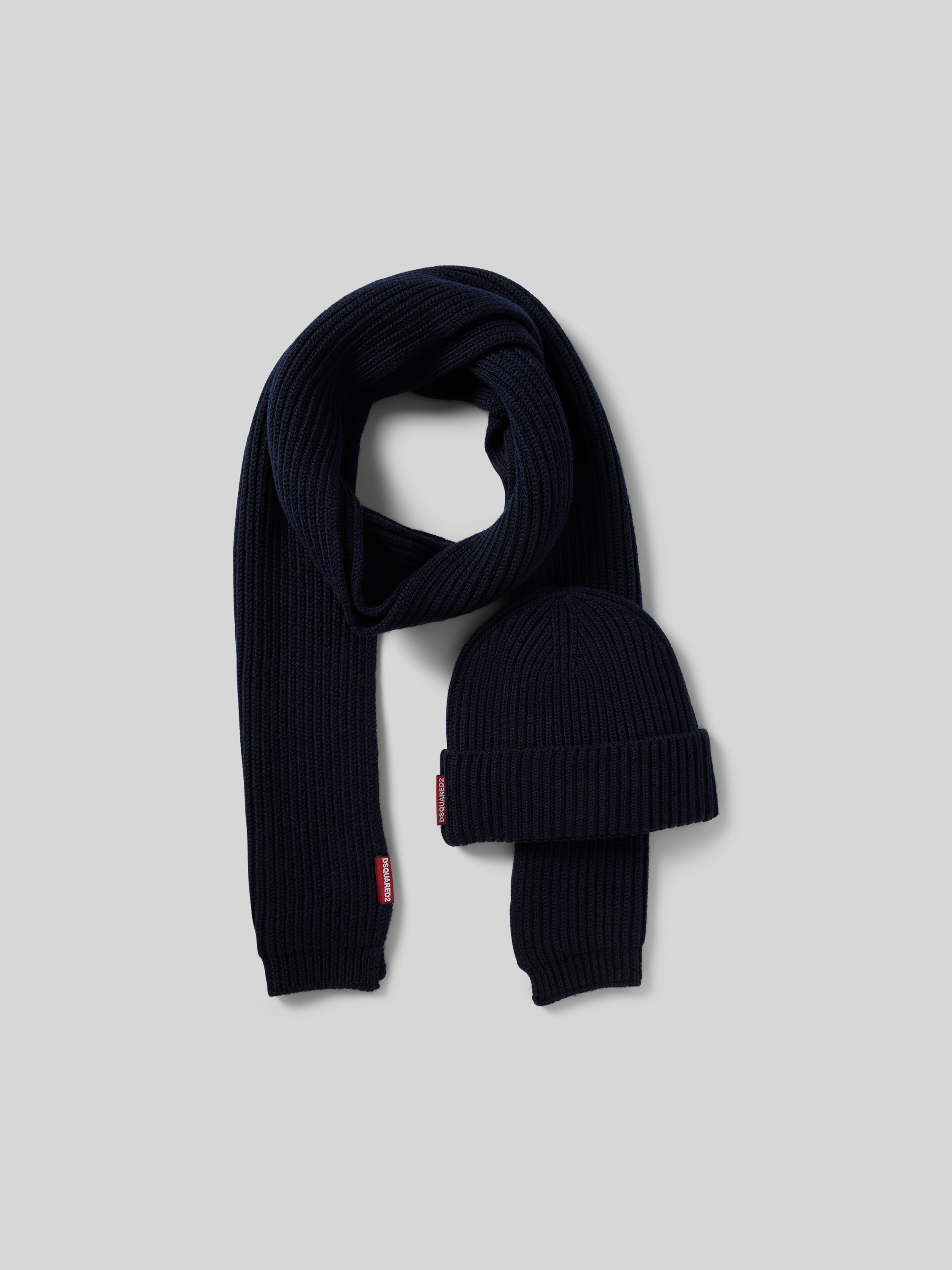 Dsquared2Wollschal im Set mit Wollmütze in marine