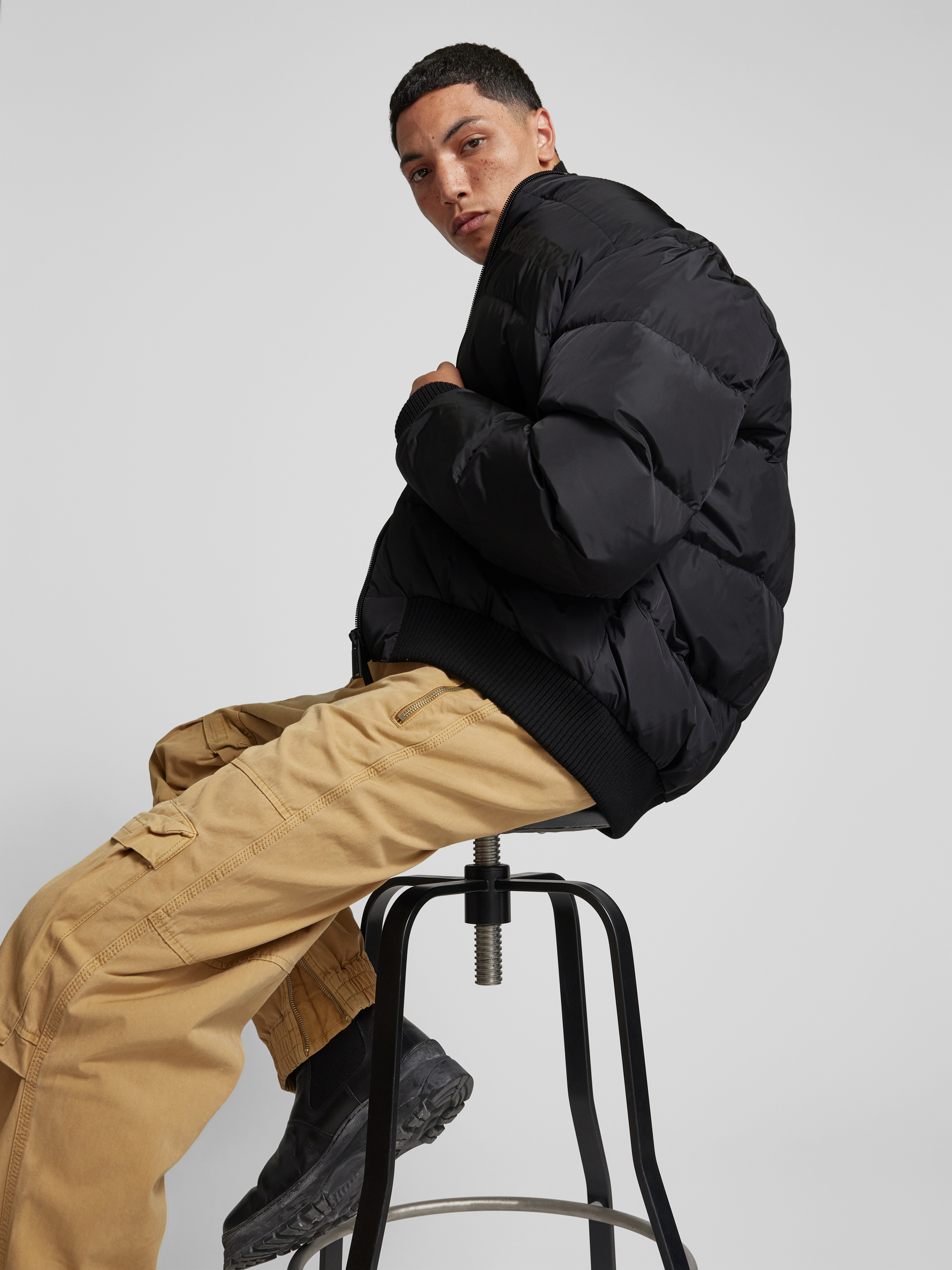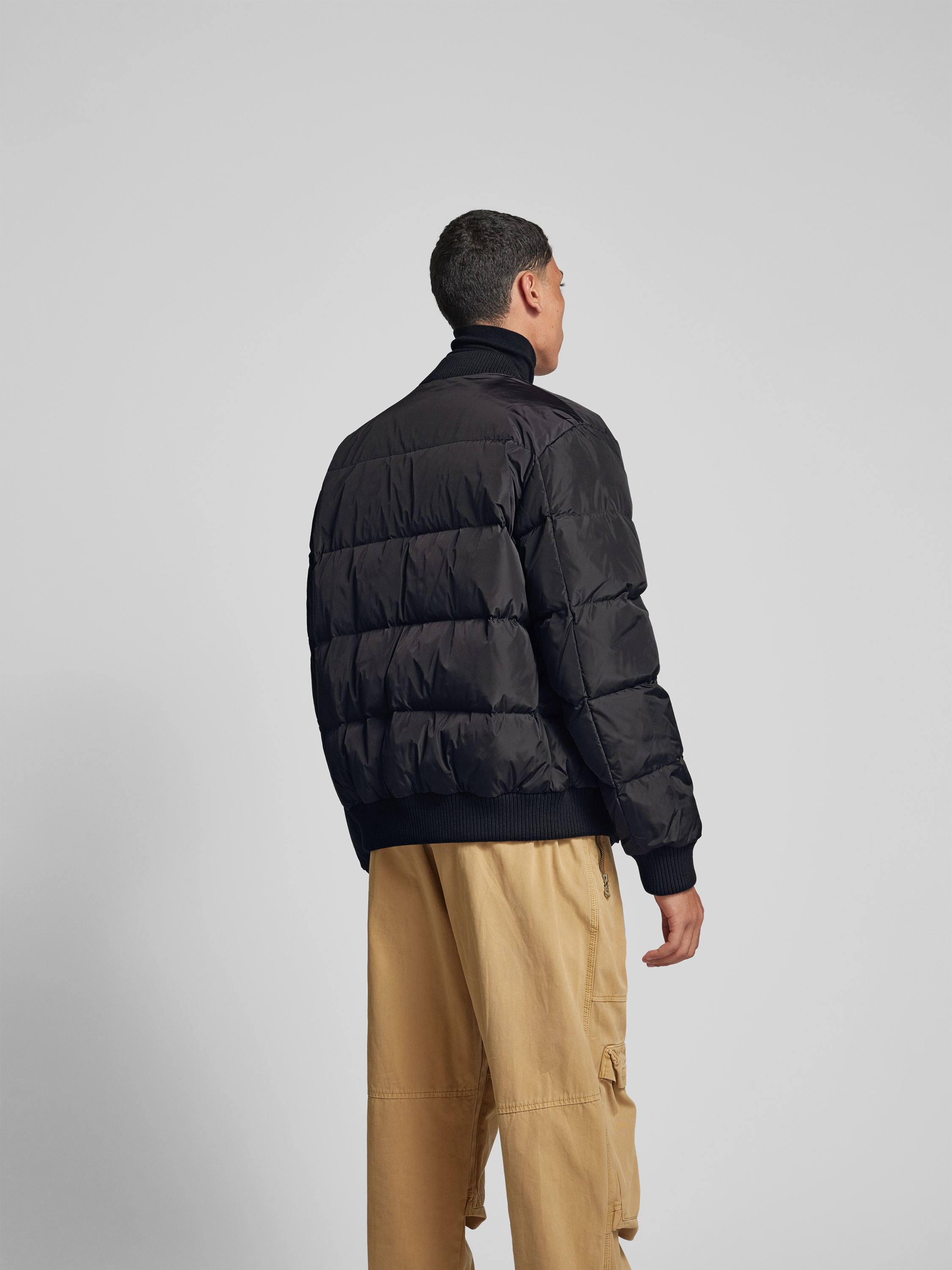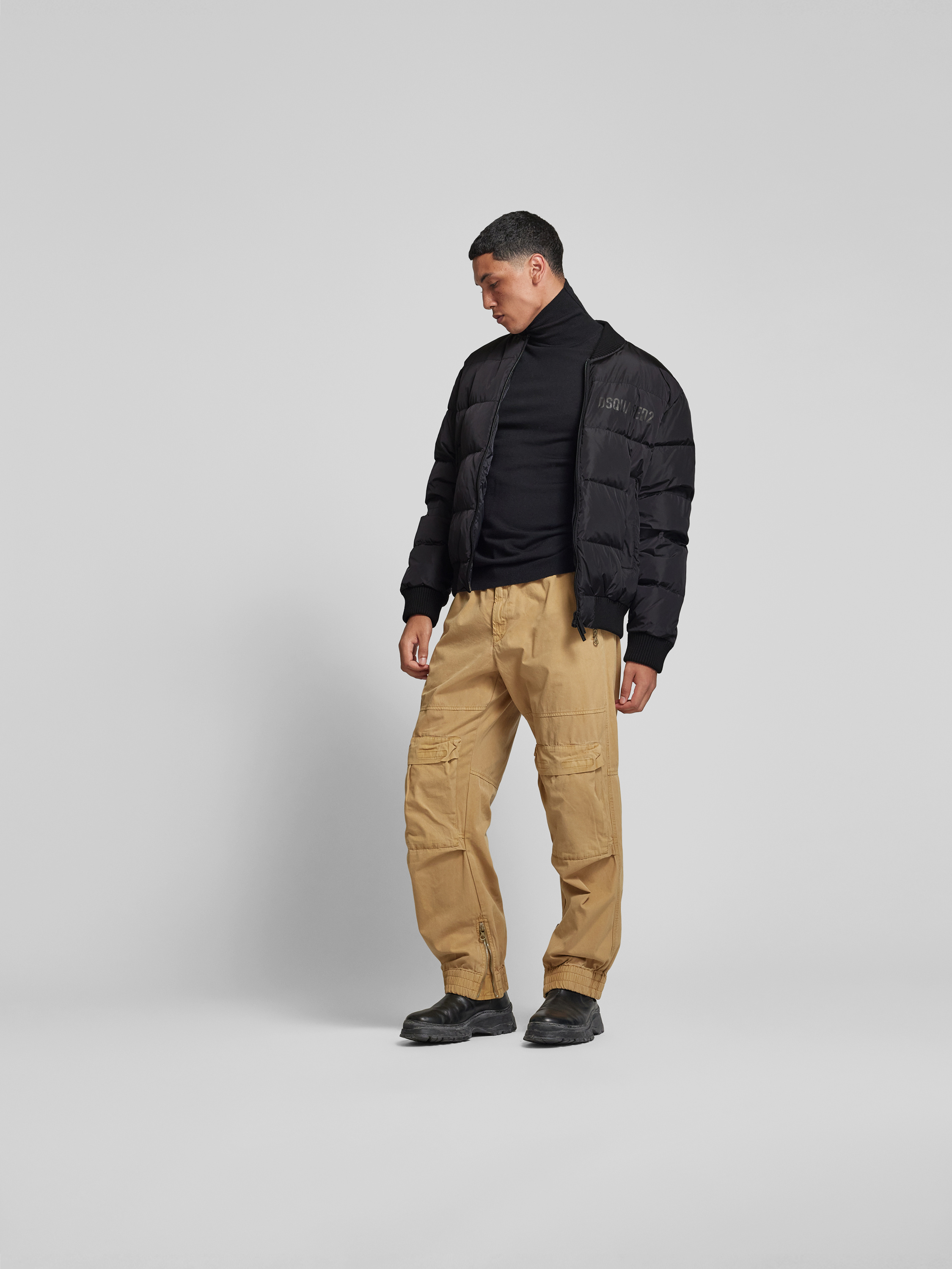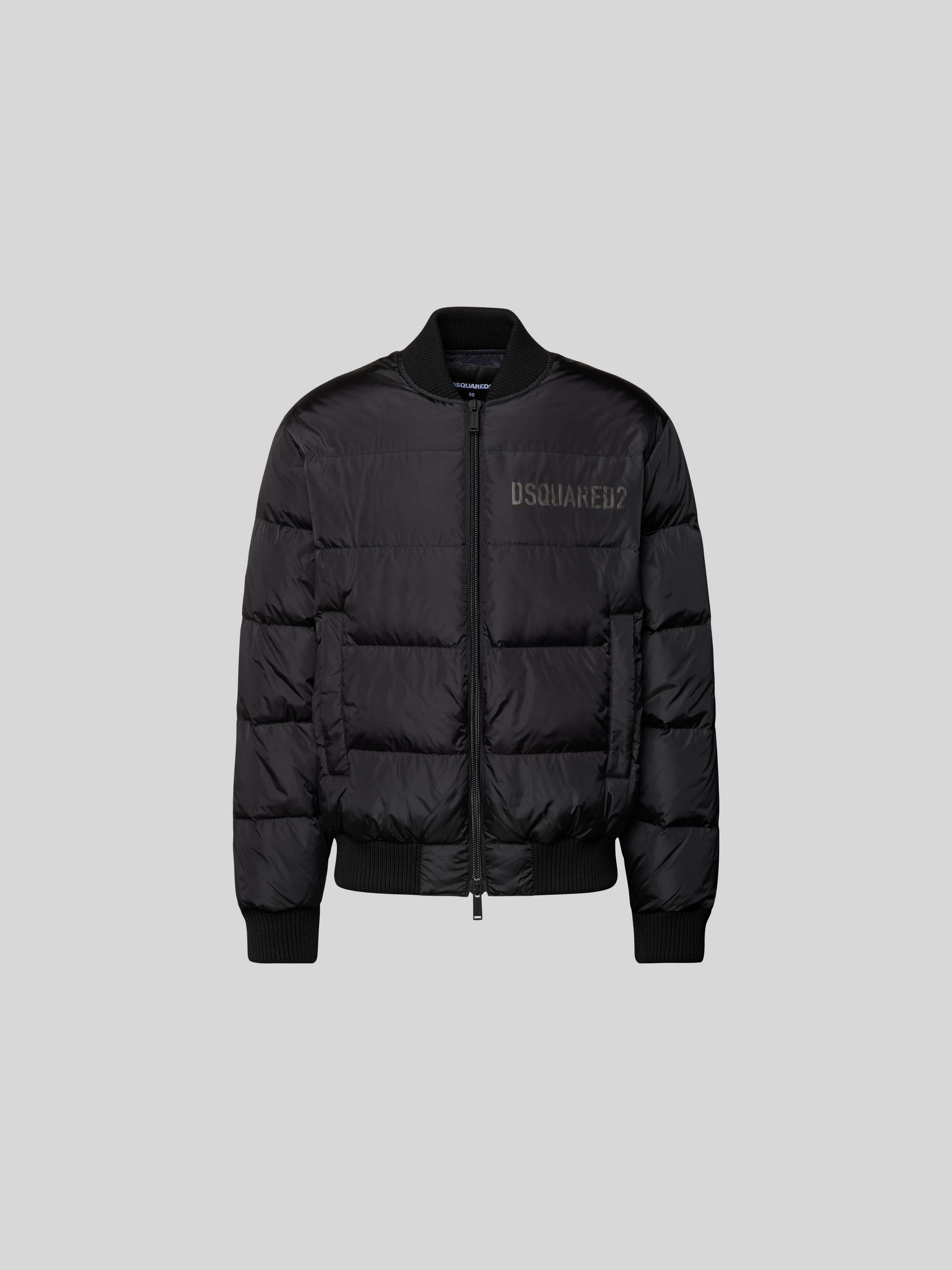 Die Herren-Bomberjacke von Dsquared2 präsentiert sich im Regular Fit und sorgt mit ihren gesteppten Details für ein angenehmes Tragegefühl. Durch die gerippten Abschlüsse sitzt sie zuverlässig, während der auffällige Label-Print dem Look eine moderne Note verleiht. So lässt sich ein urbaner Stil unkompliziert umsetzen.