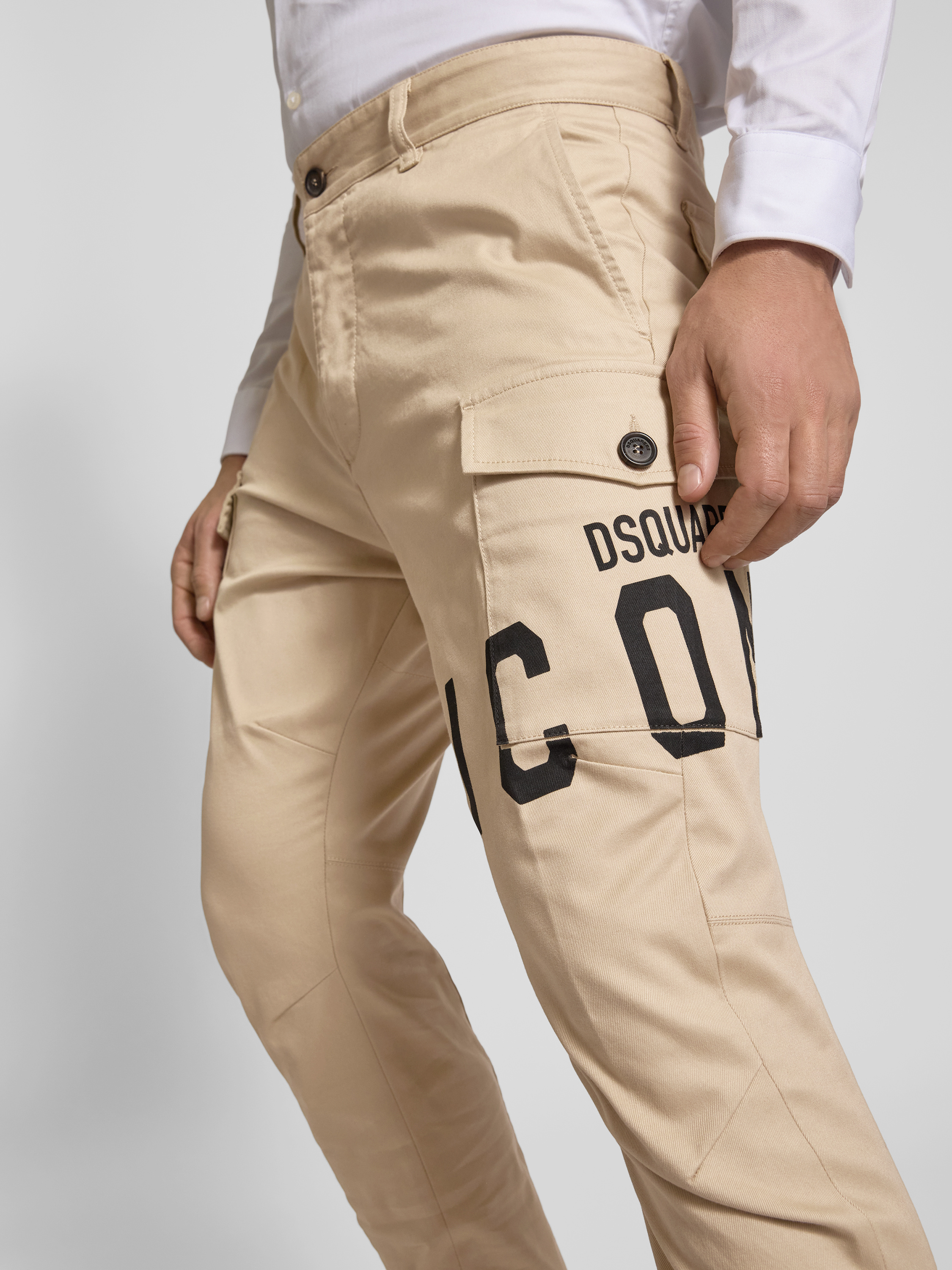 Die Herren Cargohose von Dsquared2 aus einem Baumwoll-Mix zeichnet sich durch ihren geraden Schnitt aus, der Bewegungsfreiheit schafft und vielseitig kombinierbar bleibt. Aufgesetzte Pattentaschen unterstreichen den funktionalen Charakter, während der Label-Print einen dezenten Akzent setzt. So eignet sich die Hose besonders für entspannte Aktivitäten im Alltag.