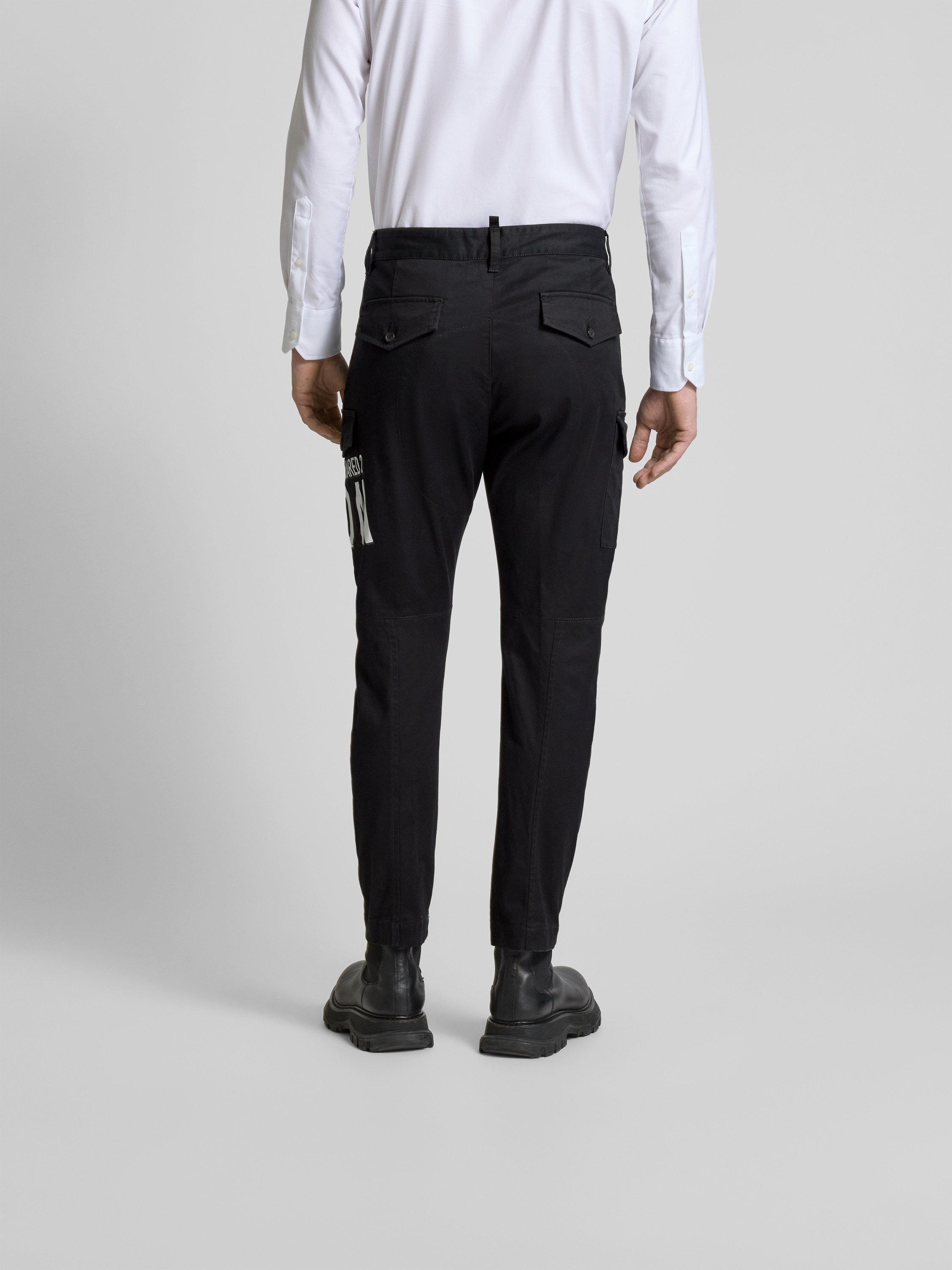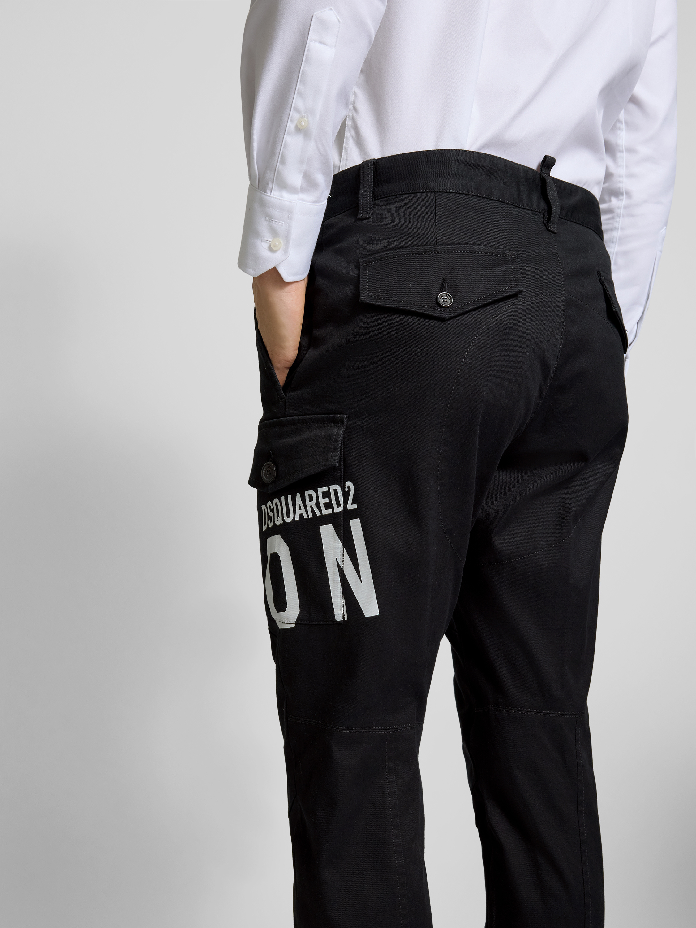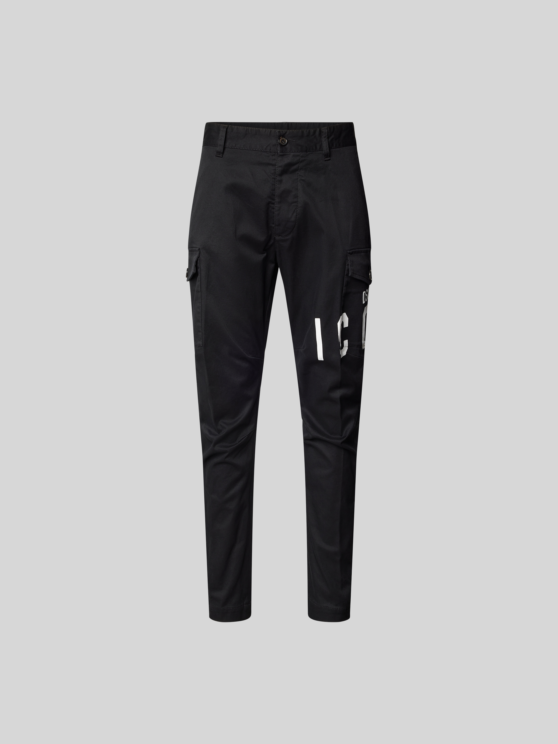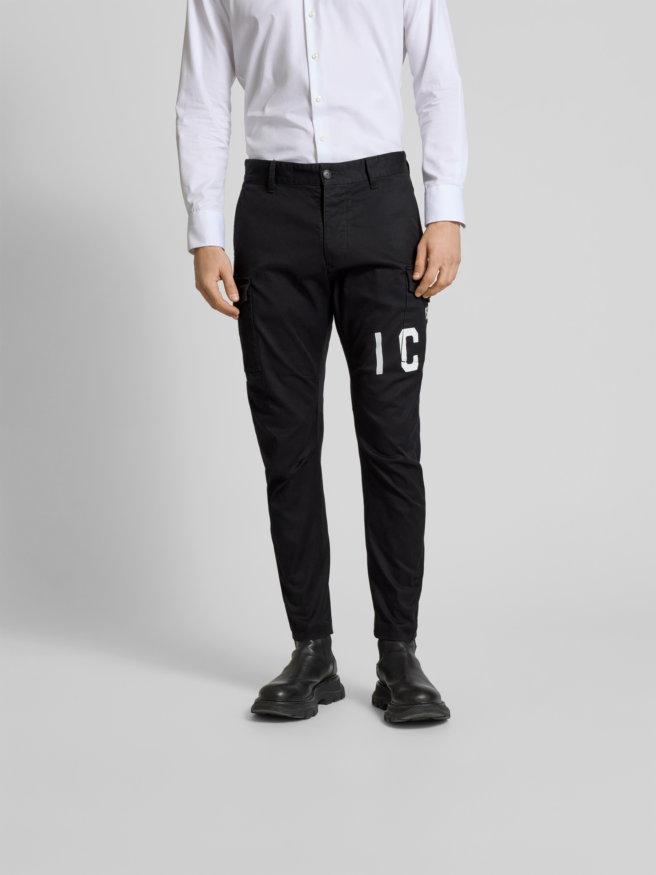Die Herren Cargohose von Dsquared2 aus einem Baumwoll-Mix zeichnet sich durch ihren geraden Schnitt aus, der Bewegungsfreiheit schafft und vielseitig kombinierbar bleibt. Aufgesetzte Pattentaschen unterstreichen den funktionalen Charakter, während der Label-Print einen dezenten Akzent setzt. So eignet sich die Hose besonders für entspannte Aktivitäten im Alltag.