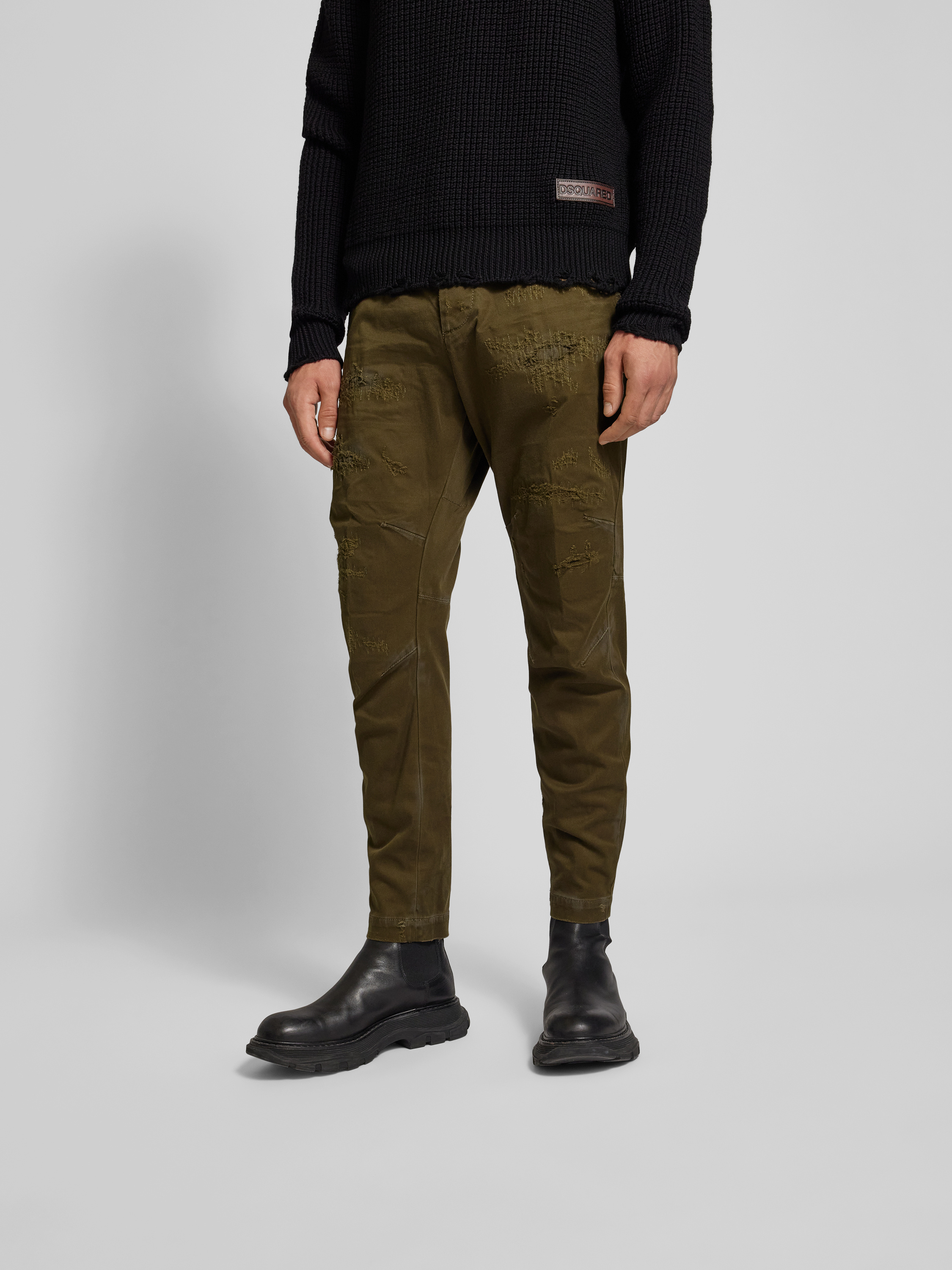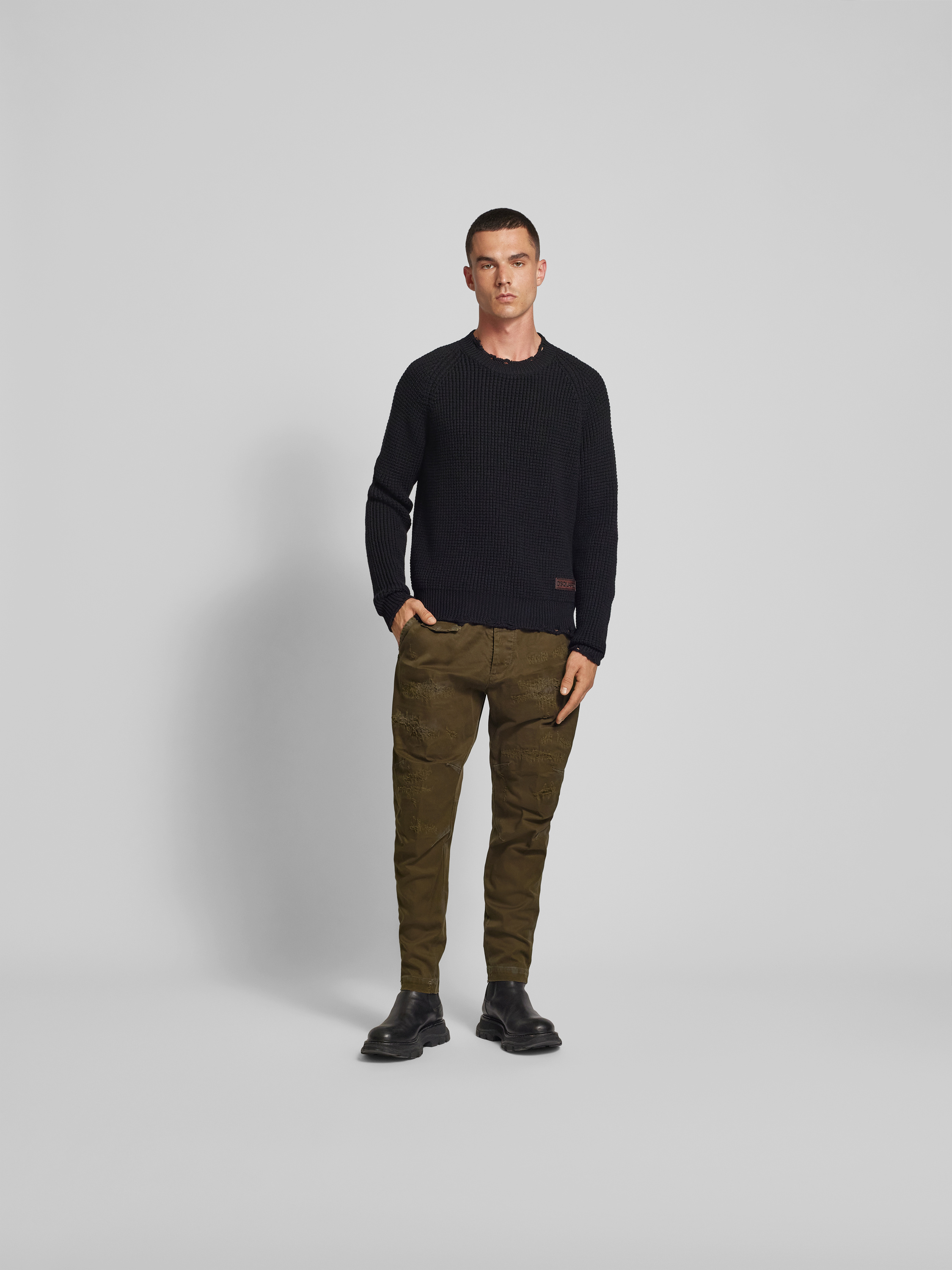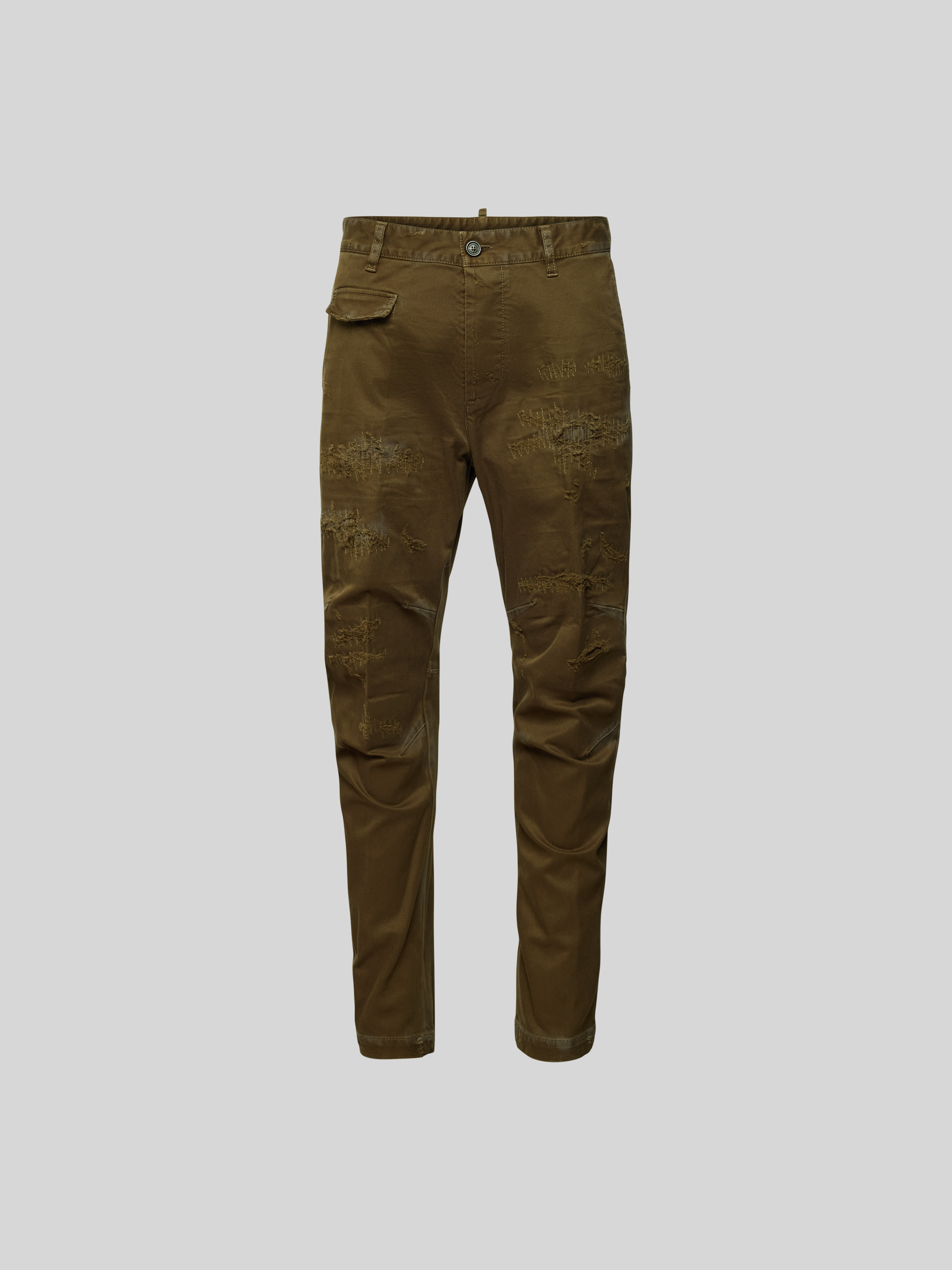 Die Herren Chino von Dsquared2 im Used-Look zeichnet sich durch einen geraden Schnitt aus, der Bewegungsfreiheit gewährt und sich unkompliziert kombinieren lässt. Eine Pattentasche ergänzt das Design dezent, während Gesäßtaschen praktischen Stauraum schaffen. So entsteht ein Kleidungsstück, das Alltagstauglichkeit und modernen Stil verbindet.