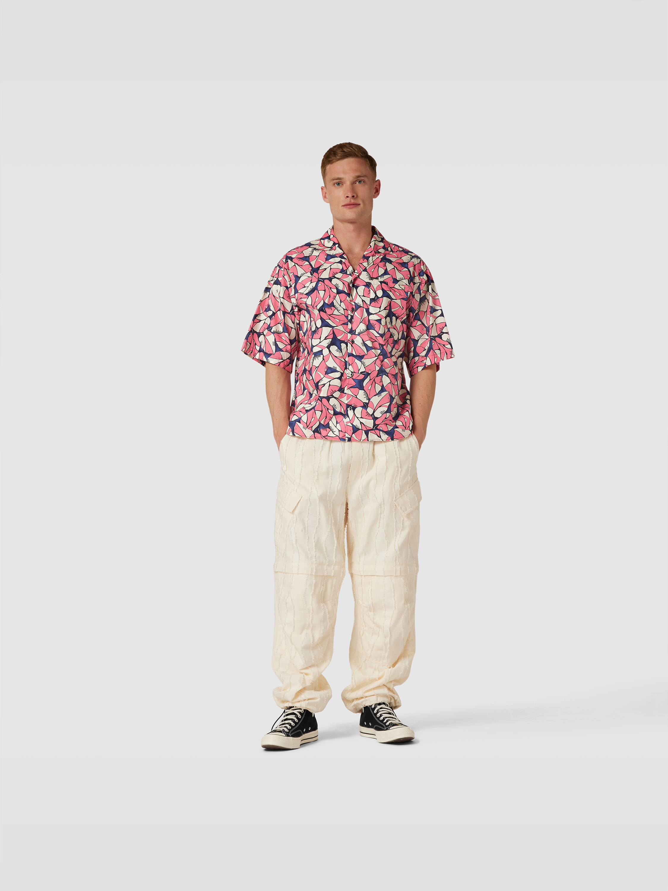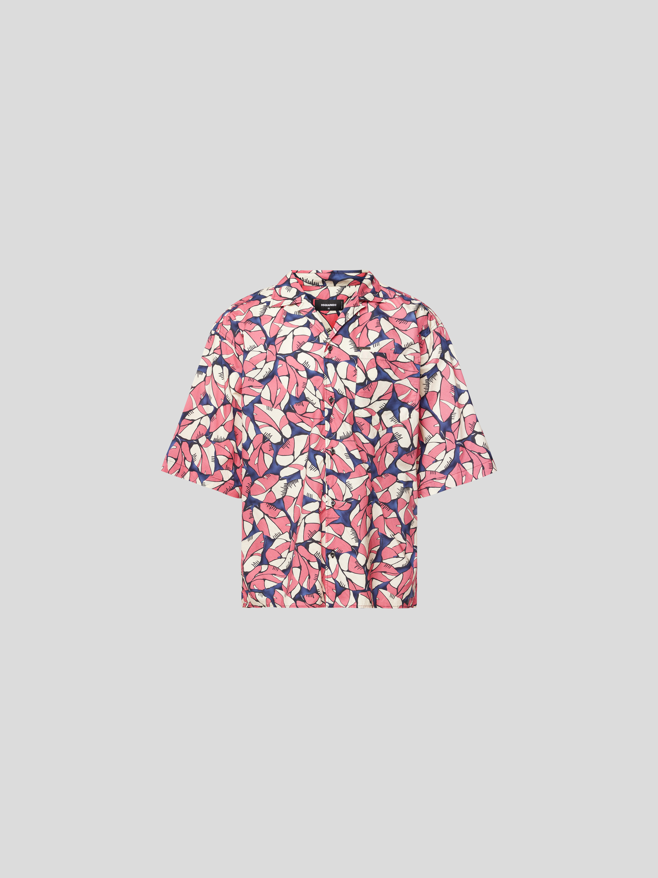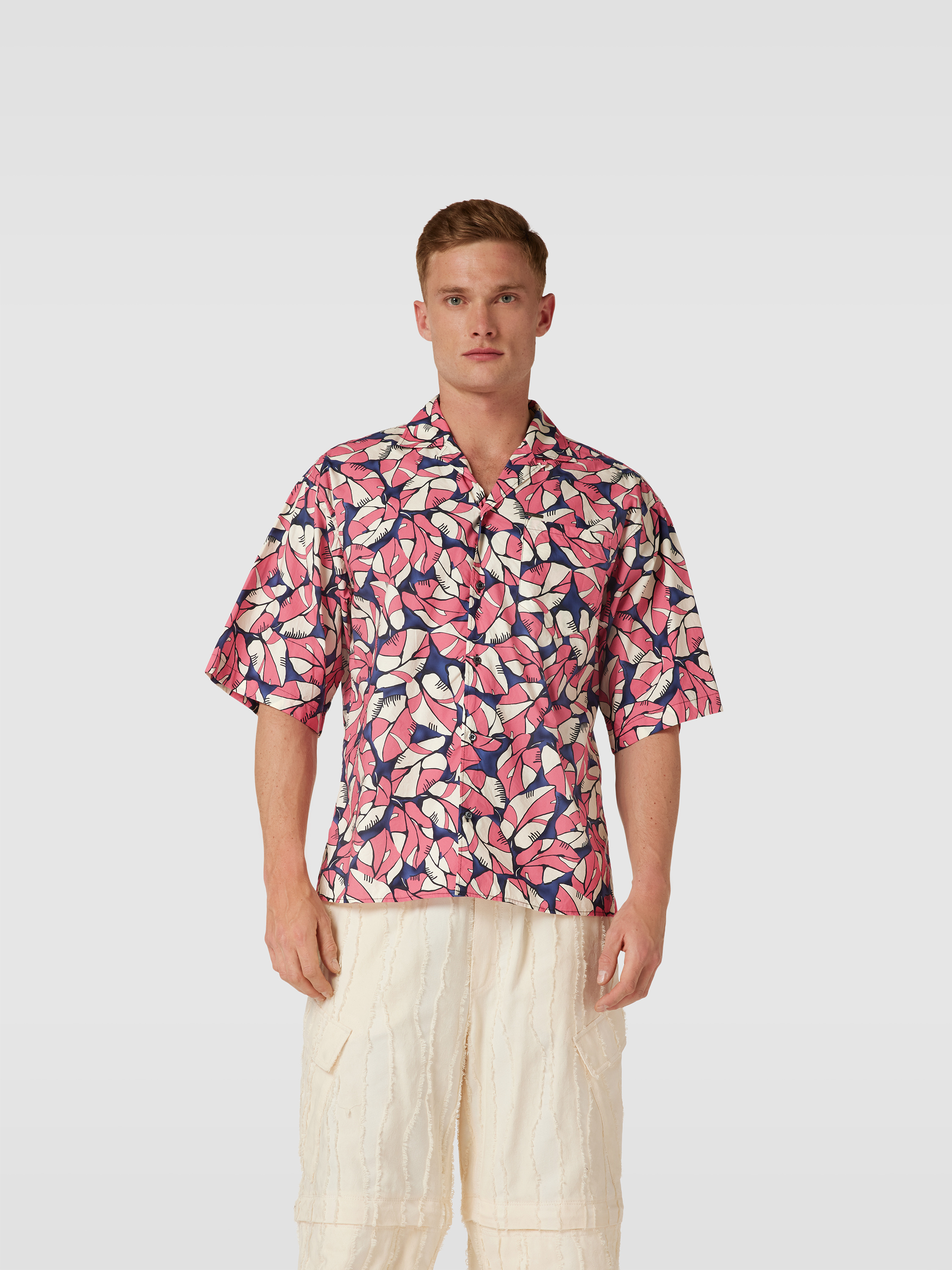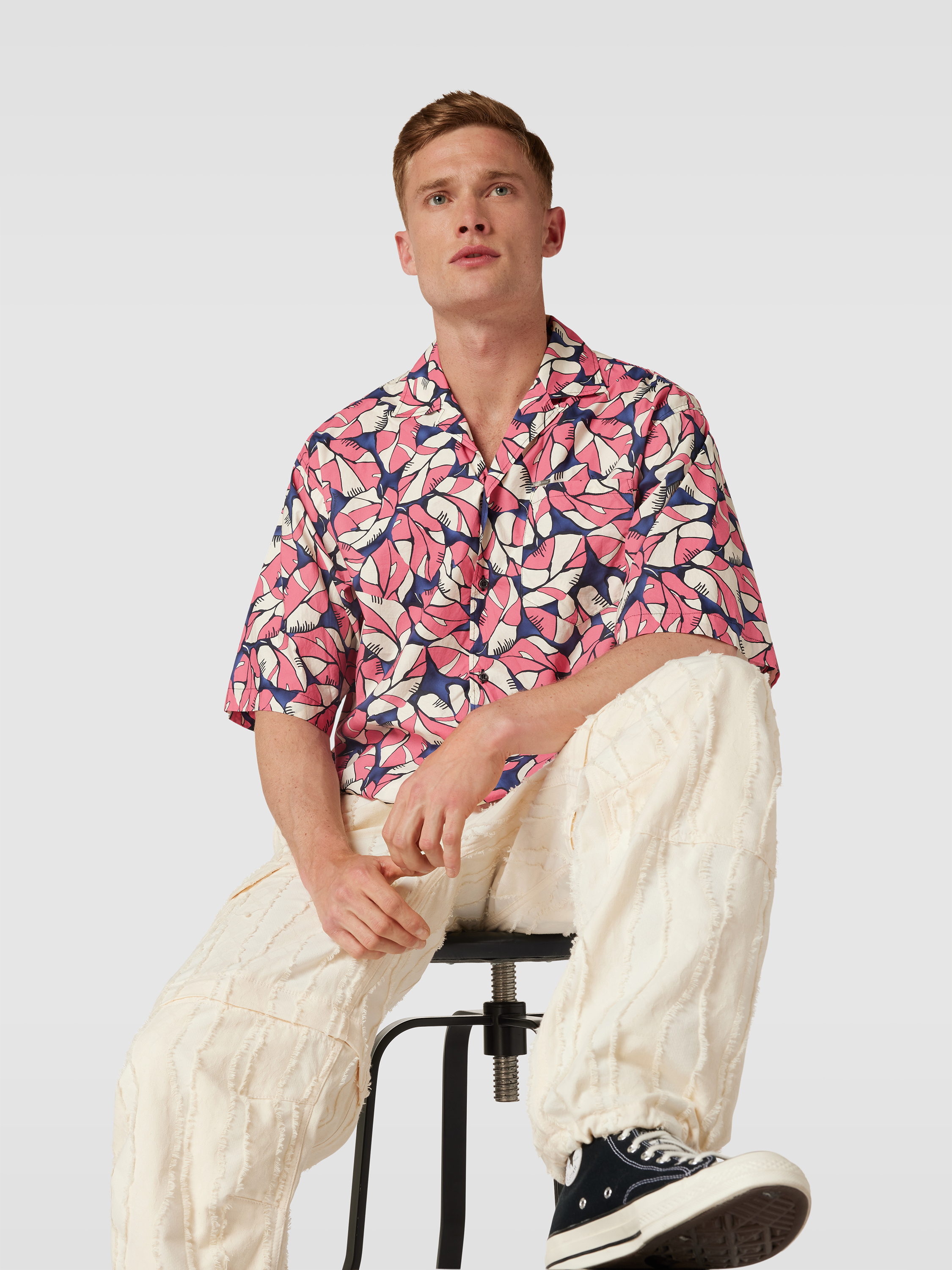 Das Herren Freizeithemd von Dsquared2 aus reiner Baumwolle fällt durch seinen lockeren Oversized-Schnitt und das markante Allover-Muster auf. Durch den Reverskragen sowie das kurzärmelige Design entsteht ein angenehmes Tragegefühl, das vielseitig im Alltag genutzt werden kann. Kombiniert wirkt das Hemd leger und modern.