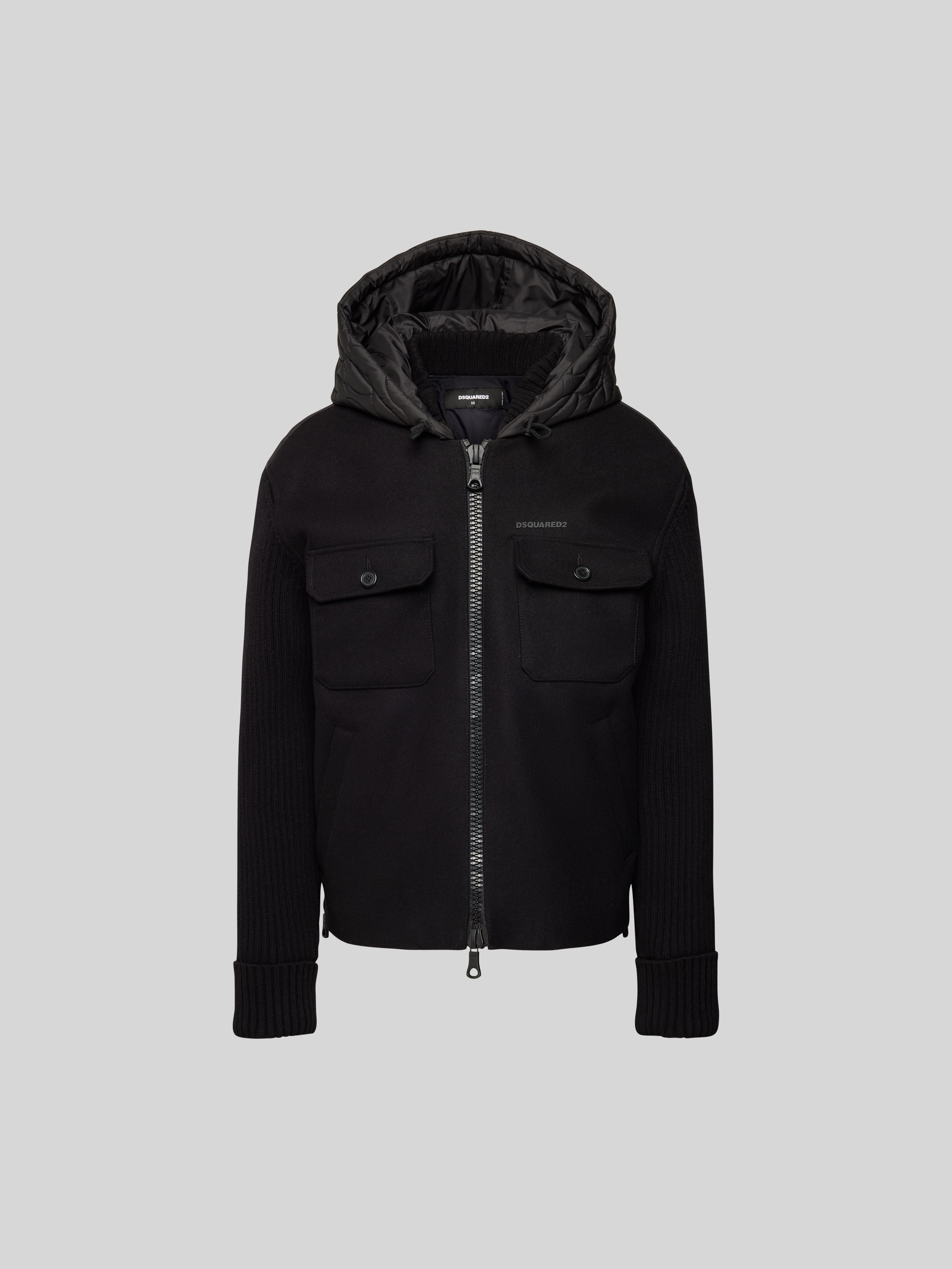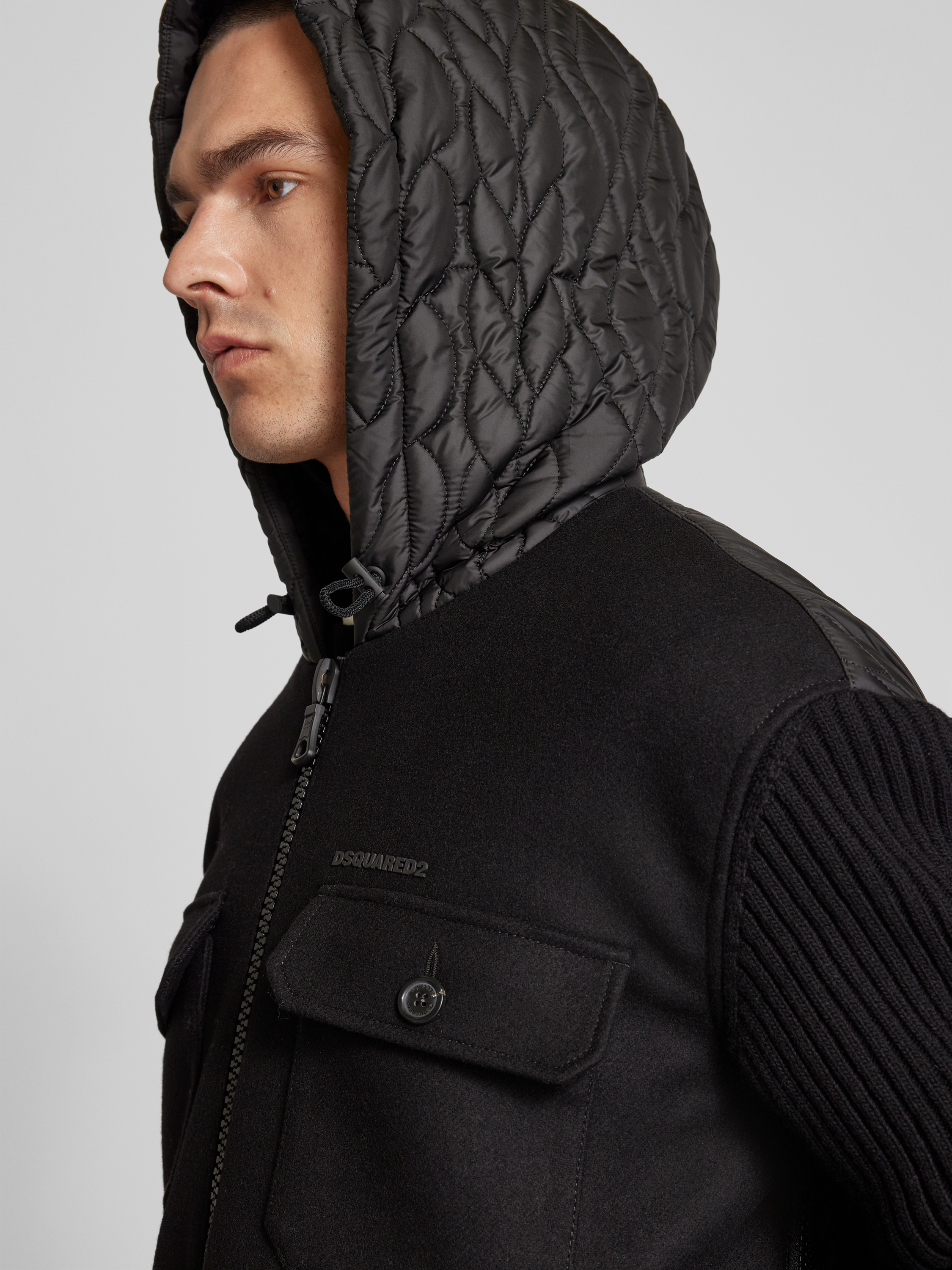 Die Herren Hemdjacke mit Kapuze von Dsquared2 fällt durch ihren Regular Fit angenehm auf und sorgt für Bewegungsfreiheit im Alltag. Dank des Schurwoll-Mix fühlt sich das Material weich an und trägt sich auch bei wechselnden Temperaturen komfortabel. Praktische Brusttaschen bieten Raum für Kleinigkeiten.