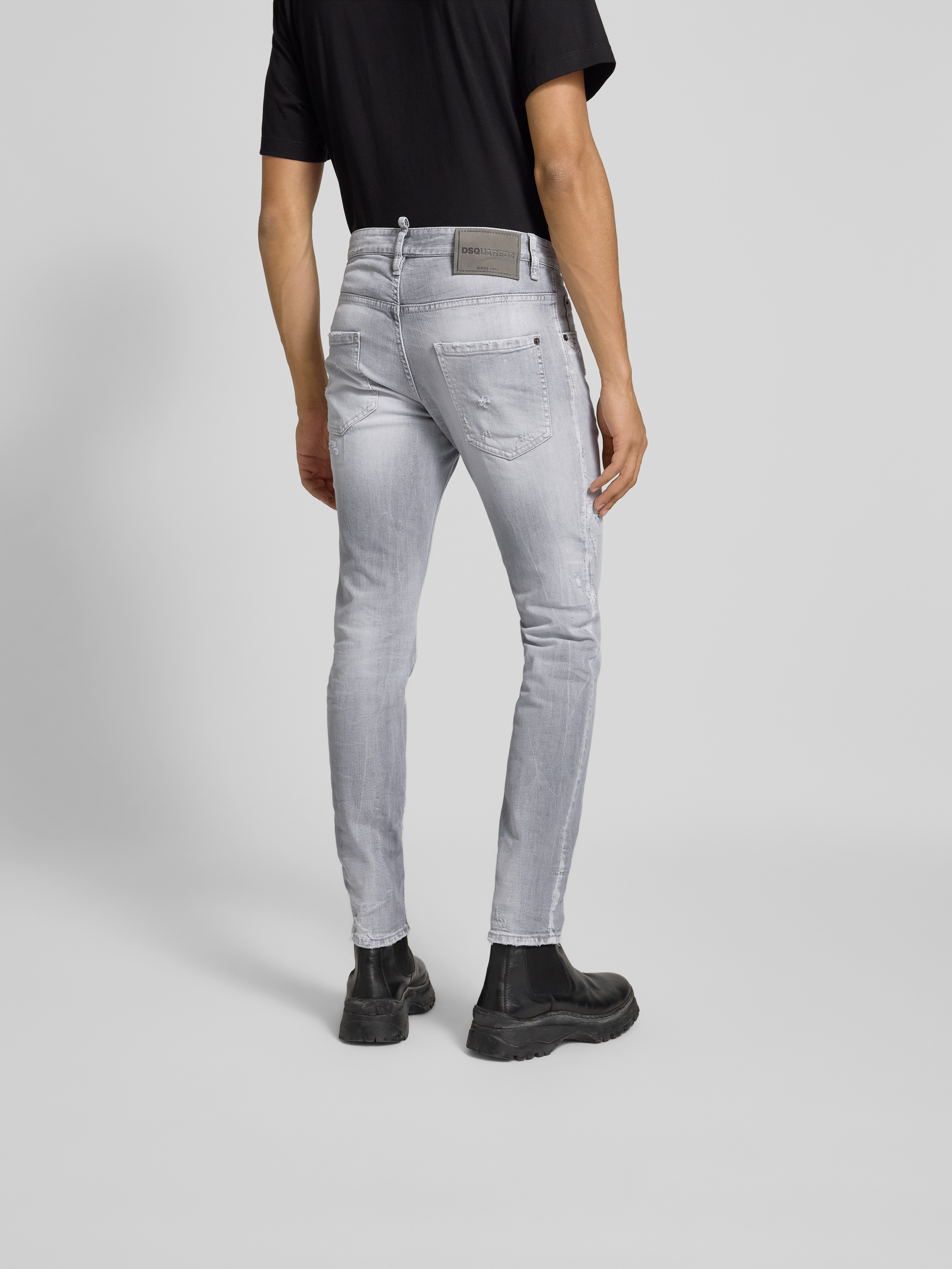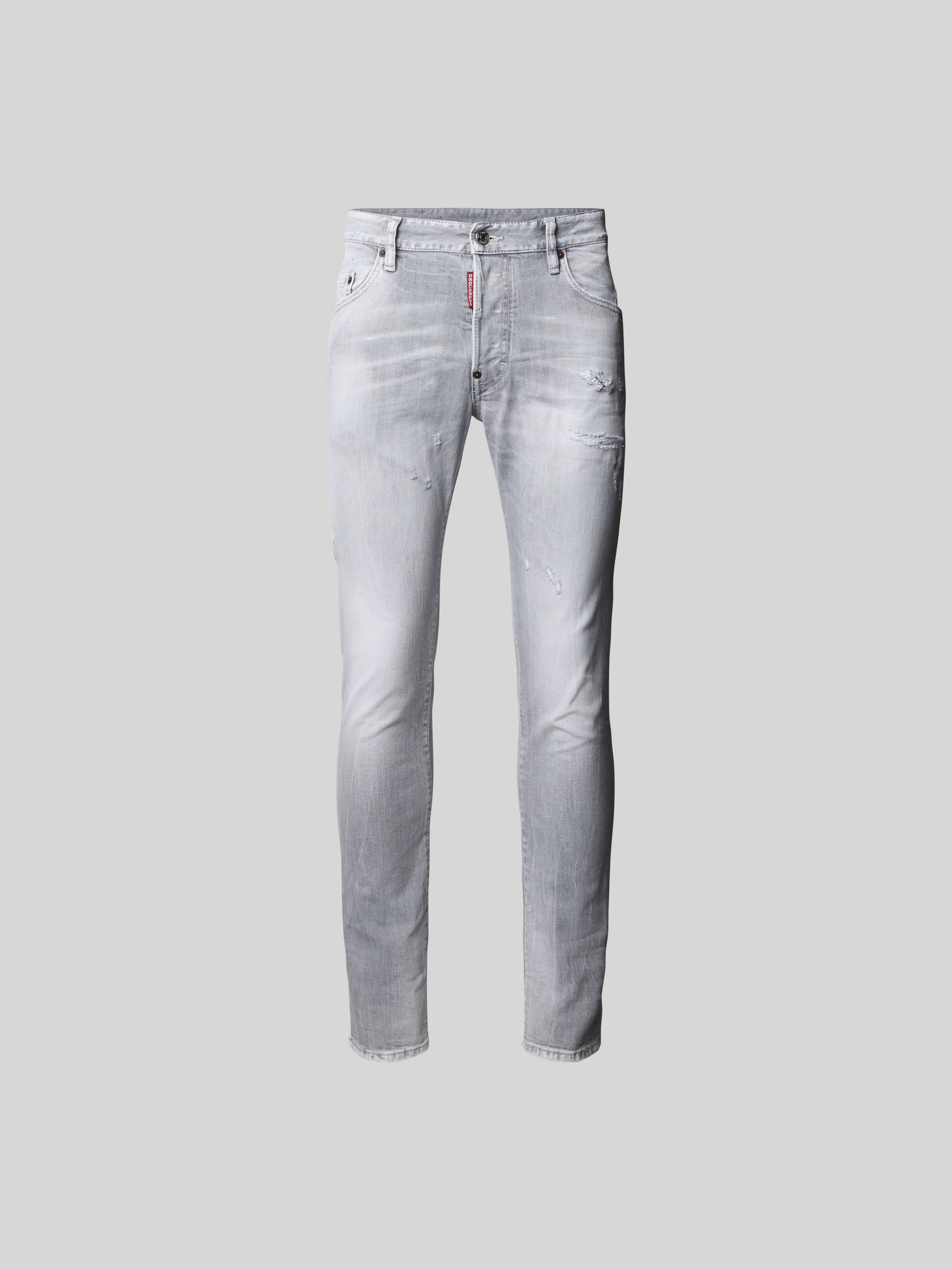 Die Herren Jeans von Dsquared2 präsentiert sich im Slim Fit und unterstreicht mit ihrem Used-Look eine lässige Ausstrahlung. Dank des Baumwoll-Elasthan-Mix passt sie sich angenehm an und sorgt für Bewegungsfreiheit im Alltag. Das klassische 5-Pocket-Design rundet den entspannten Jeans-Look ab.