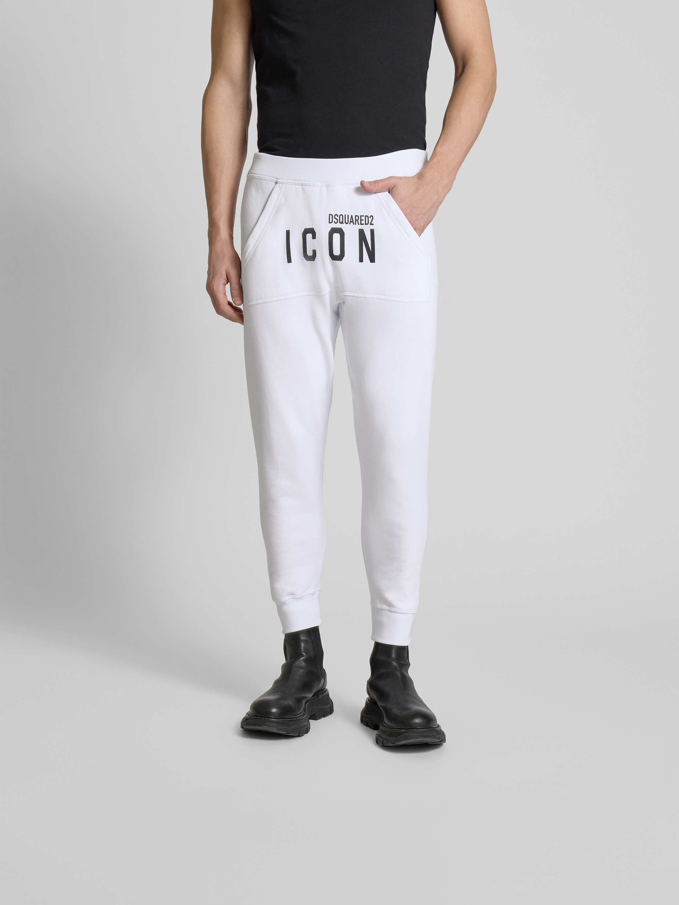Die Herren Sweatpants von Dsquared2 aus reiner Baumwolle bieten durch ihren lockeren Schnitt und den elastischen Bund ein angenehmes Tragegefühl. Der auffällige Label-Print verleiht der Hose einen modernen Touch, während die Eingrifftaschen praktische Aufbewahrungsmöglichkeiten schaffen. Ideal für entspannte Freizeitaktivitäten.