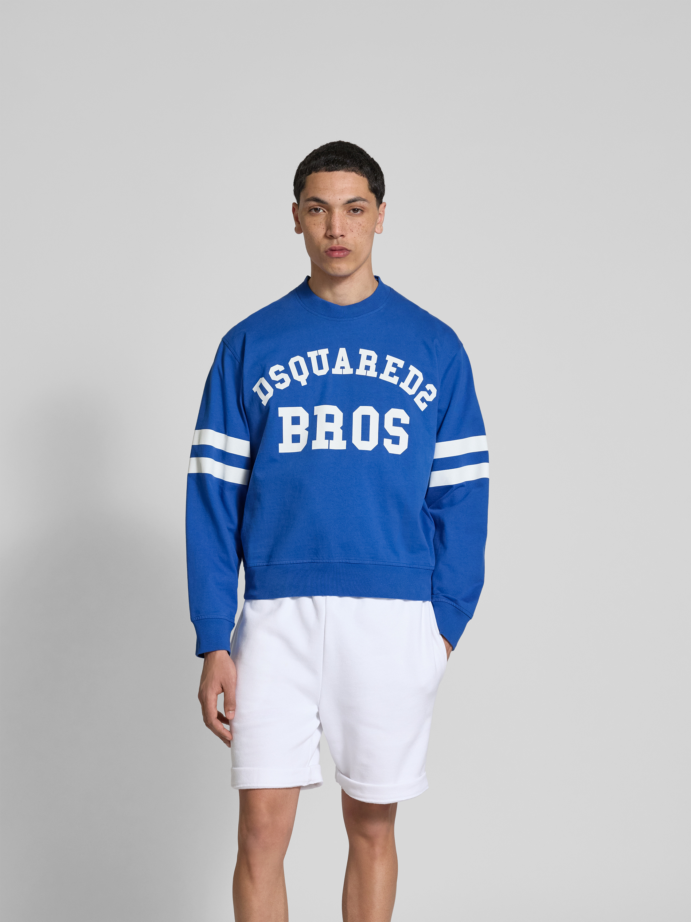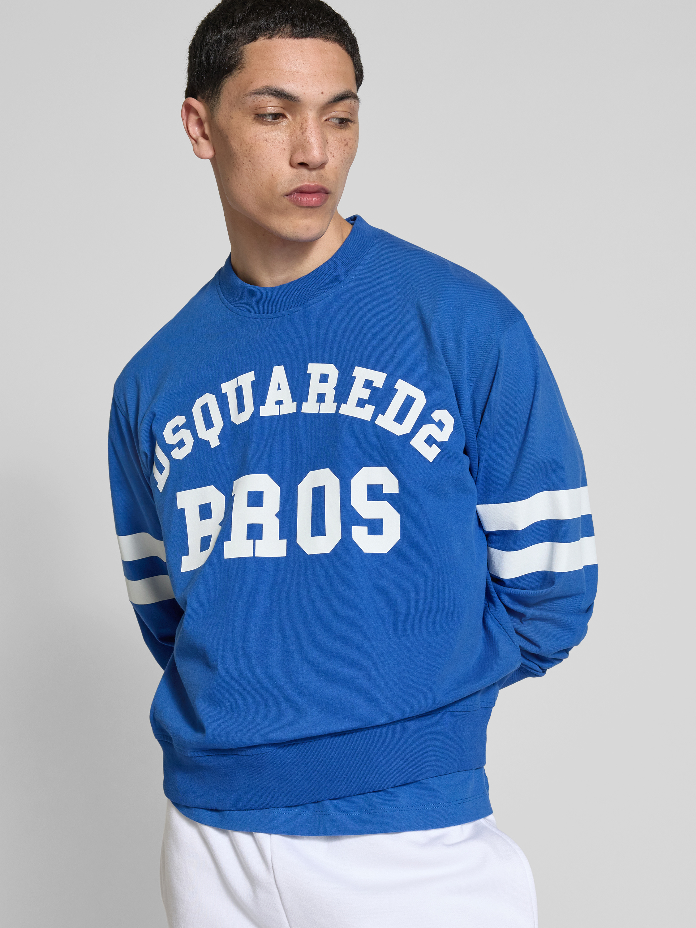 Das Herren Sweatshirt von Dsquared2, gefertigt aus reiner Baumwolle, bietet mit seinem Regular Fit und dem klassischen Rundhalsausschnitt eine angenehme Passform. Der auffällige Label-Print verleiht dem Stück eine moderne Note, während gerippte Abschlüsse für zusätzlichen Komfort sorgen. Ein vielseitiges Kleidungsstück für unterschiedliche Anlässe.