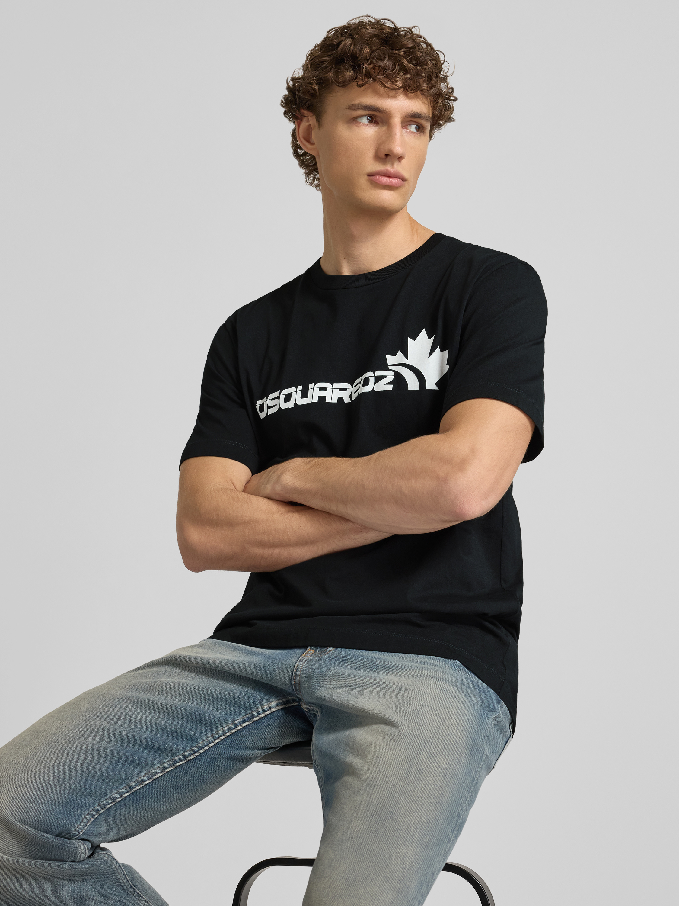 Das Herren T-Shirt von Dsquared2 präsentiert sich mit klassischem Regular-Fit und einem gerippten Rundhalsausschnitt, wodurch es angenehm sitzt und vielseitig kombinierbar bleibt. Gefertigt aus reiner Baumwolle, fühlt sich das Material weich auf der Haut an und unterstützt den täglichen Tragekomfort. Der markante Label-Print rundet das schlichte Design mit einem modernen Akzent ab, sodass man es sowohl solo als auch unter Jacken problemlos tragen kann.