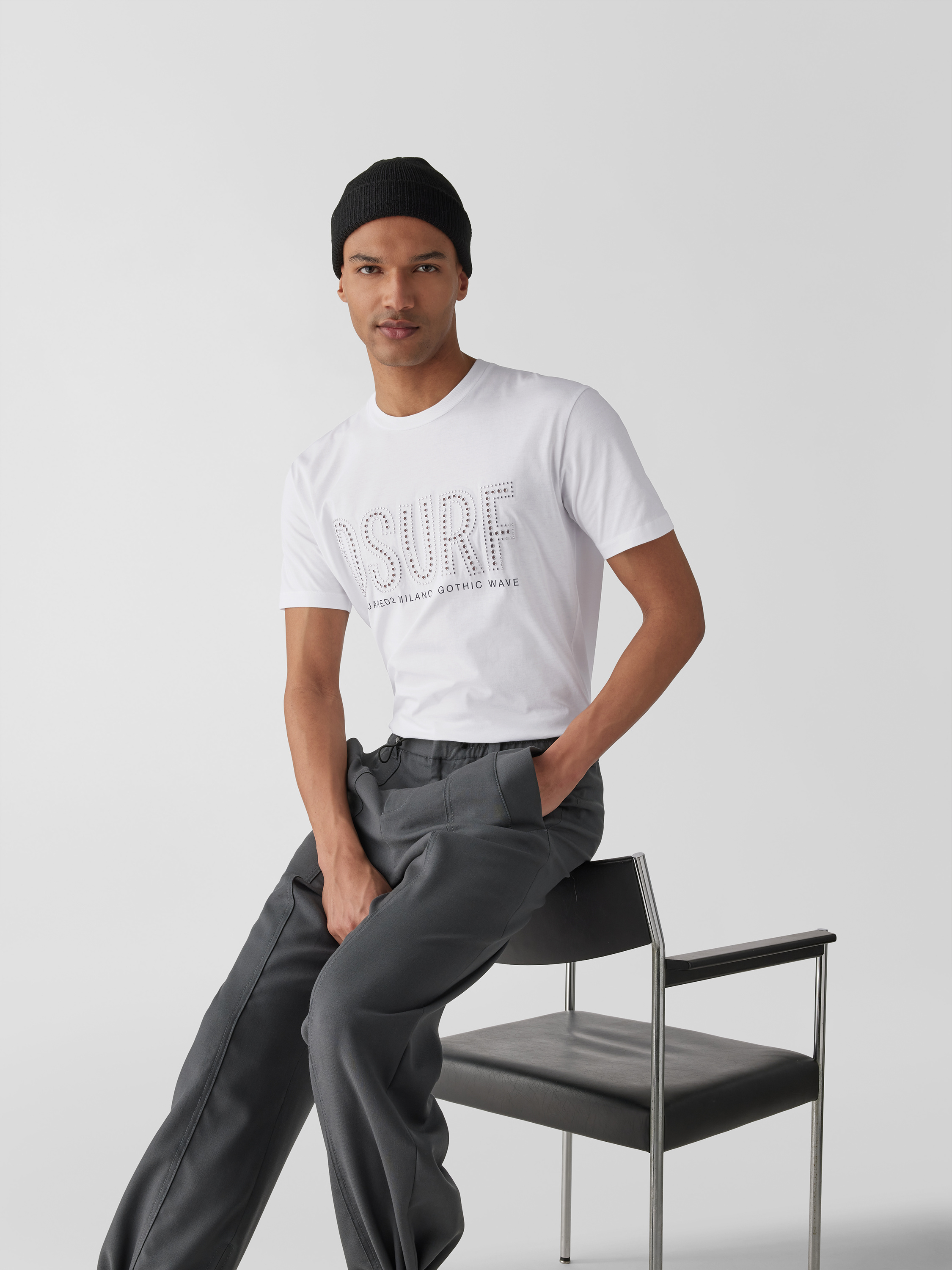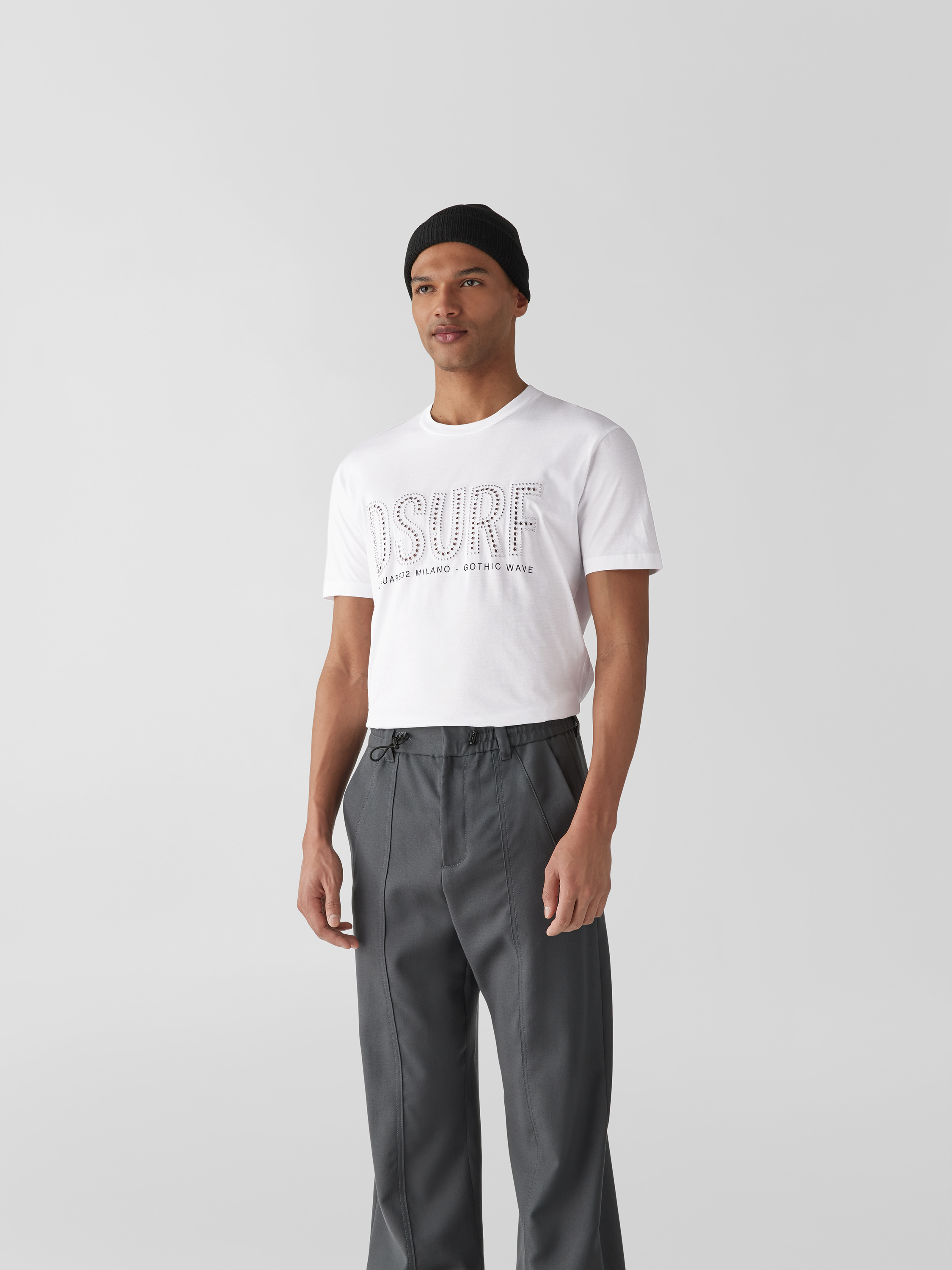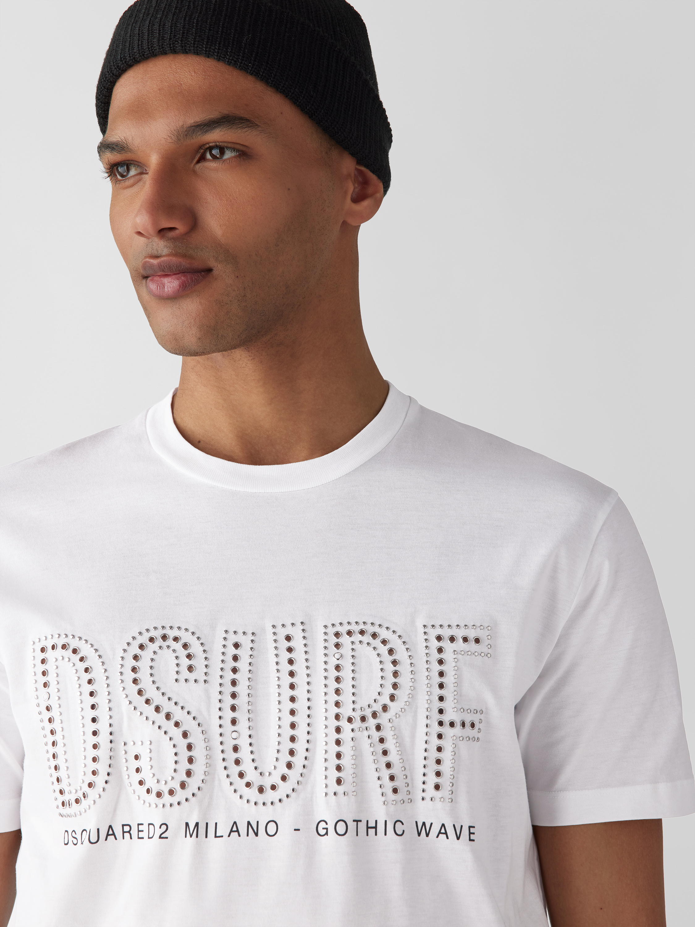Das Herren-T-Shirt von Dsquared2 aus reiner Baumwolle liegt angenehm auf der Haut und überzeugt durch seine gerade Passform. Dezente Nieten und ein prägnanter Label-Print setzen individuelle Akzente, während der klassische Rundhalsausschnitt dem T-Shirt mit Nietenbesatz einen zeitlosen Charakter verleiht.