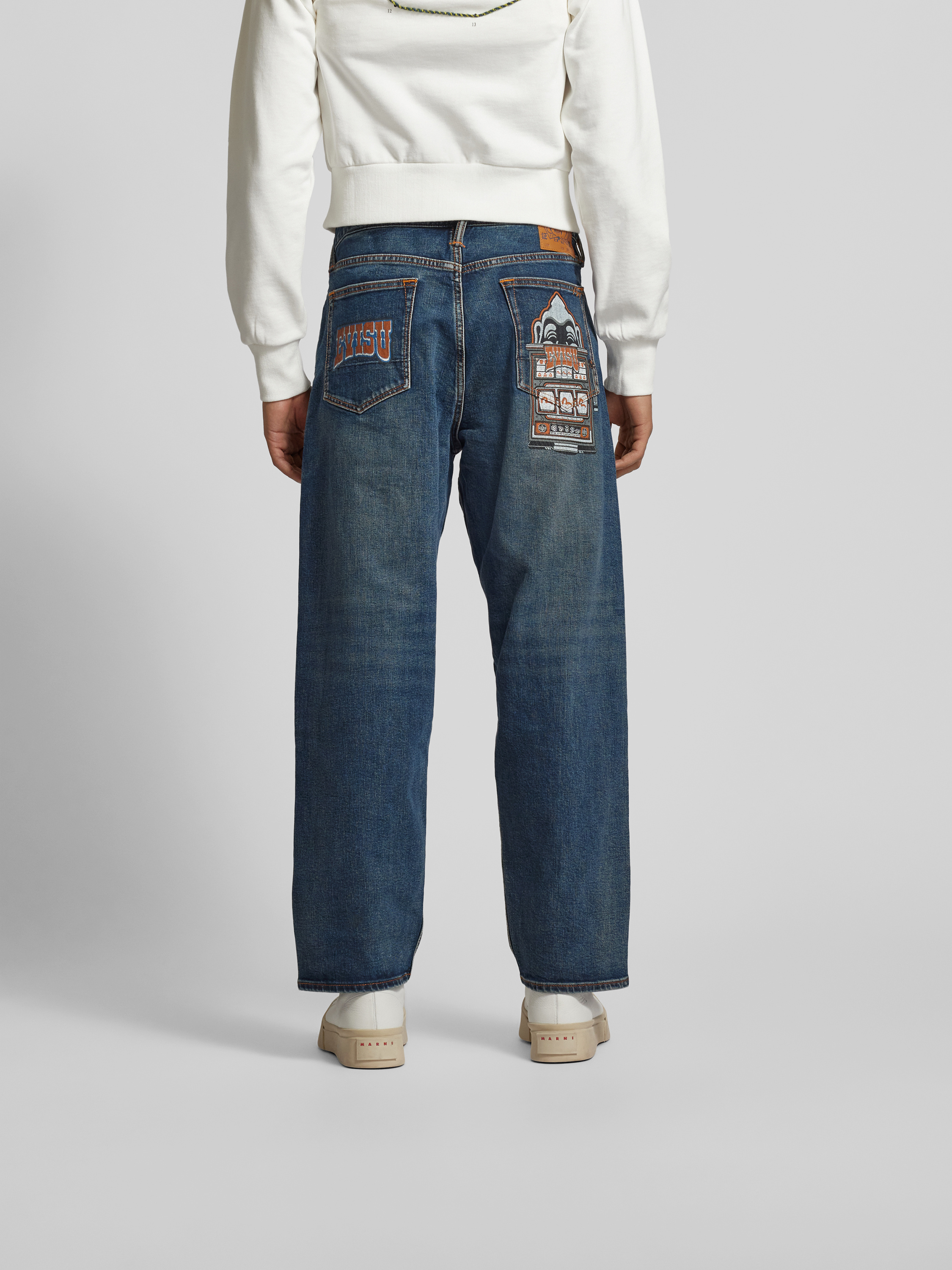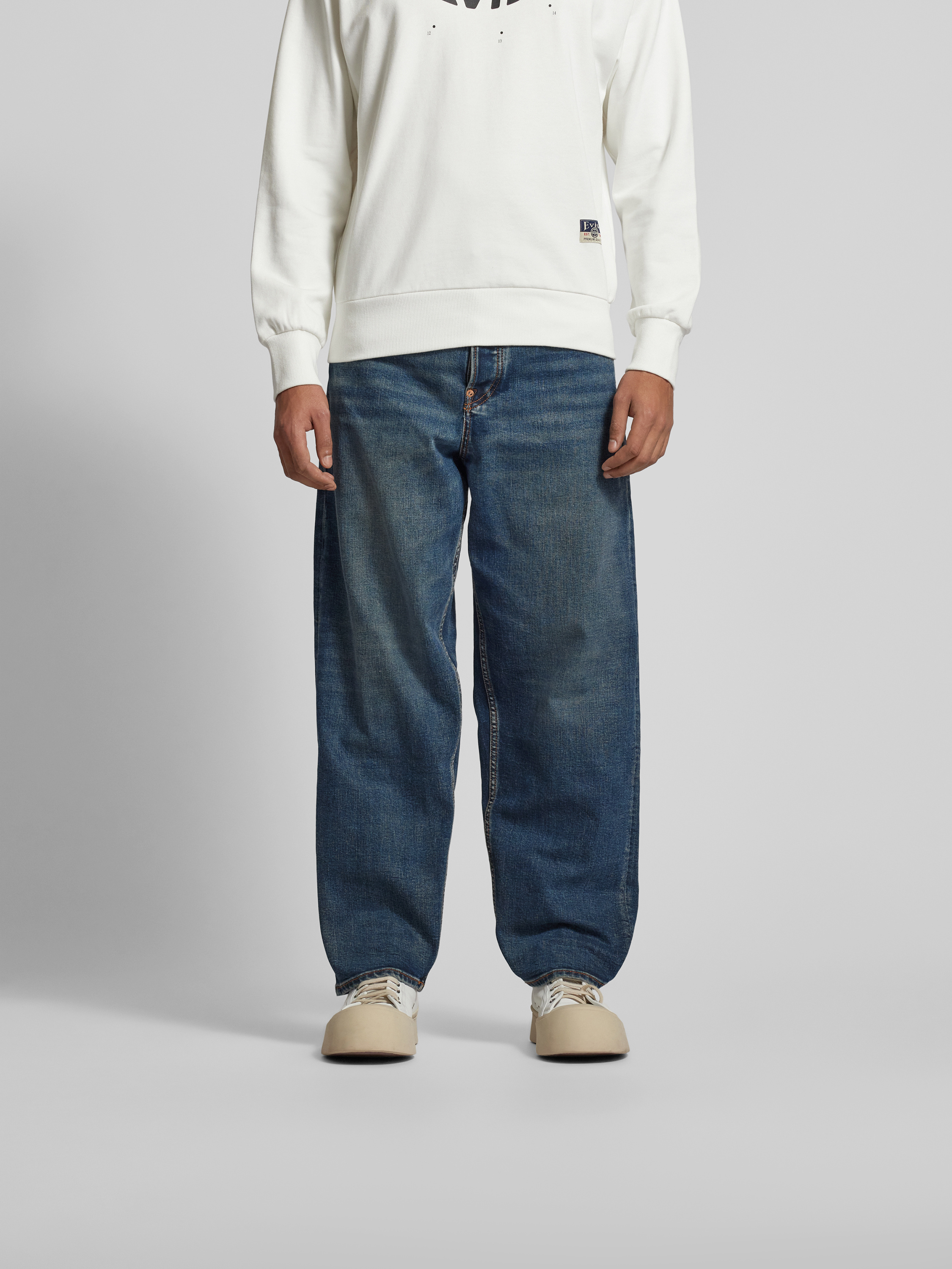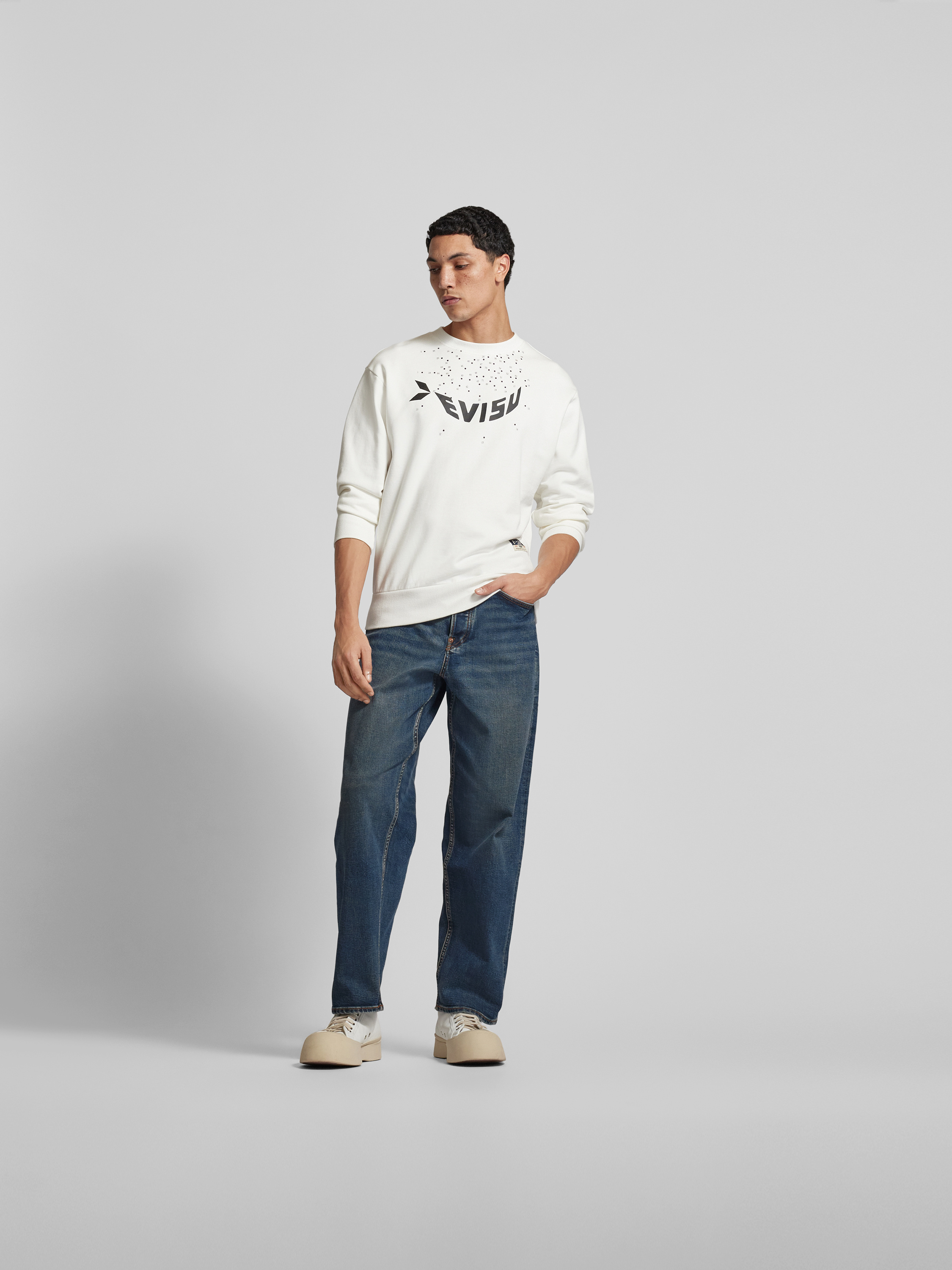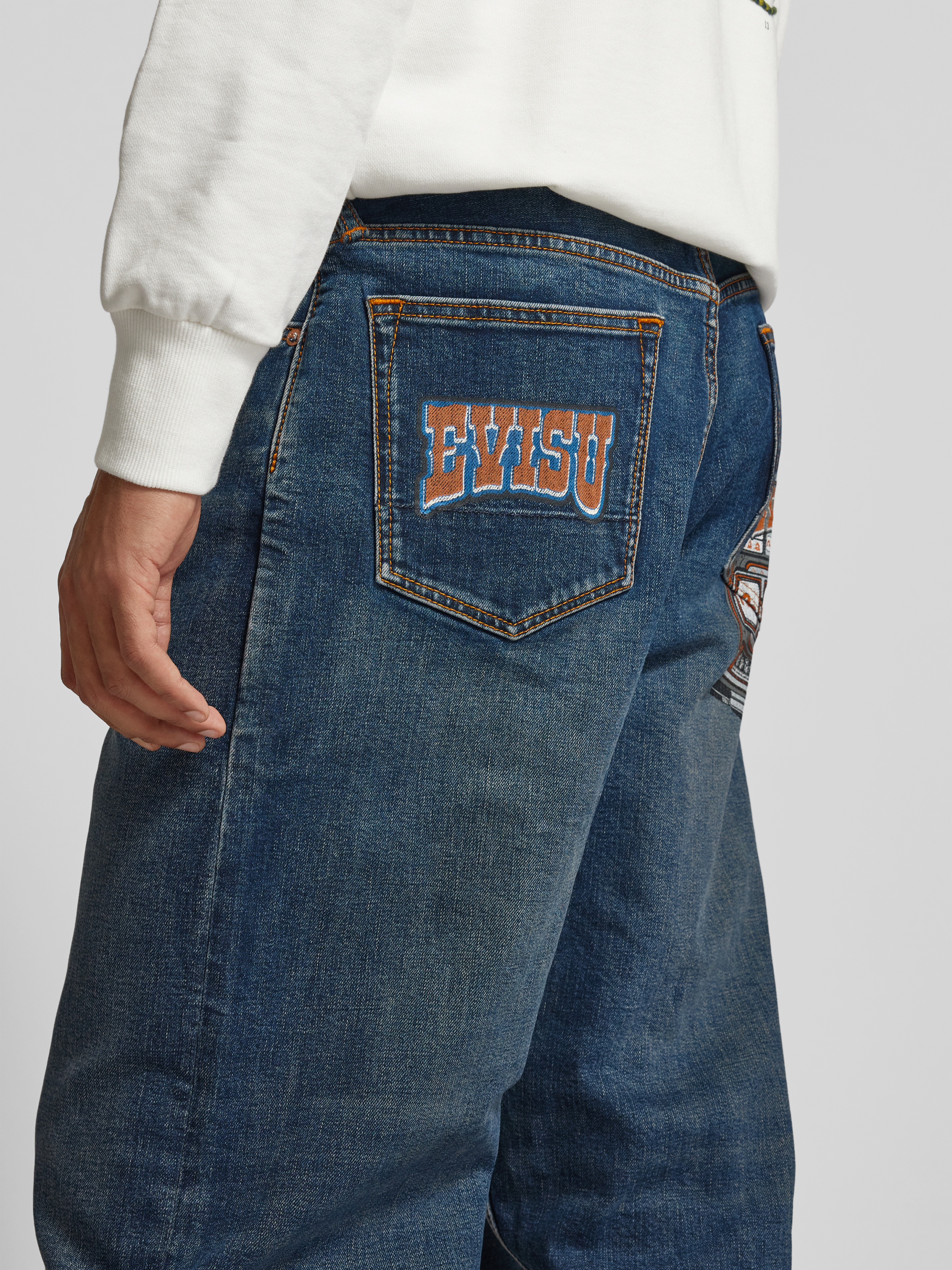 Die Herren Jeans von Evisu präsentiert sich im klassischen 5-Pocket-Design und bringt durch den geraden Schnitt eine entspannte Passform mit. Dank des Baumwoll-Mix mit Stretch-Anteil bleibt ausreichend Bewegungsfreiheit erhalten, sodass sie sich vielseitig im Alltag kombinieren lässt. Durch das zeitlose Design entsteht ein unkomplizierter Begleiter.