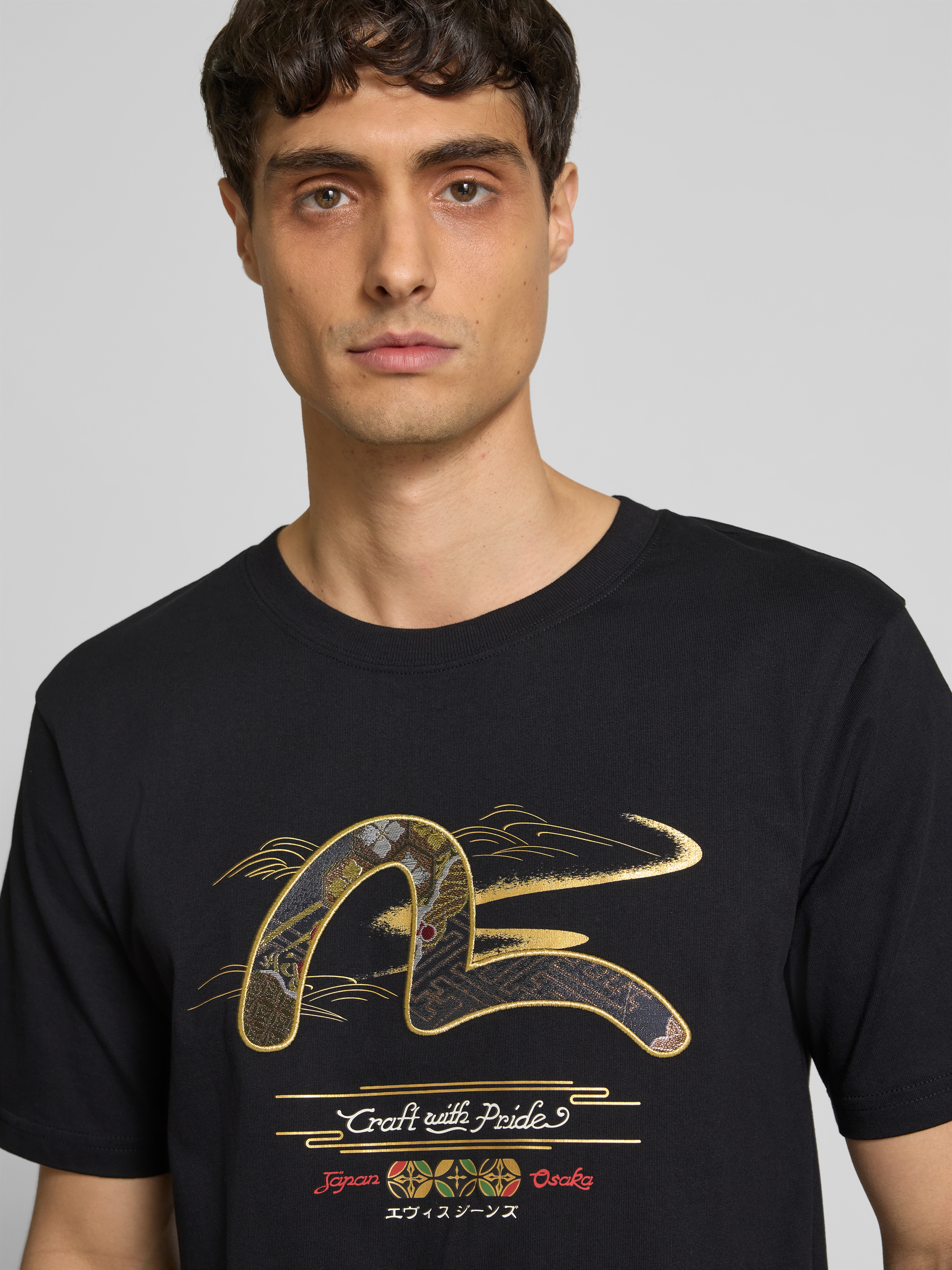 Das Herren T-Shirt von Evisu aus reiner Baumwolle bietet durch seinen Regular Fit und den klassischen Rundhalsausschnitt eine angenehme Passform für den Alltag. Das kurzärmelige Design wird durch dezente Label-Details ergänzt, die dem Kleidungsstück eine besondere Note verleihen. Ideal für vielfältige Kombinationen.