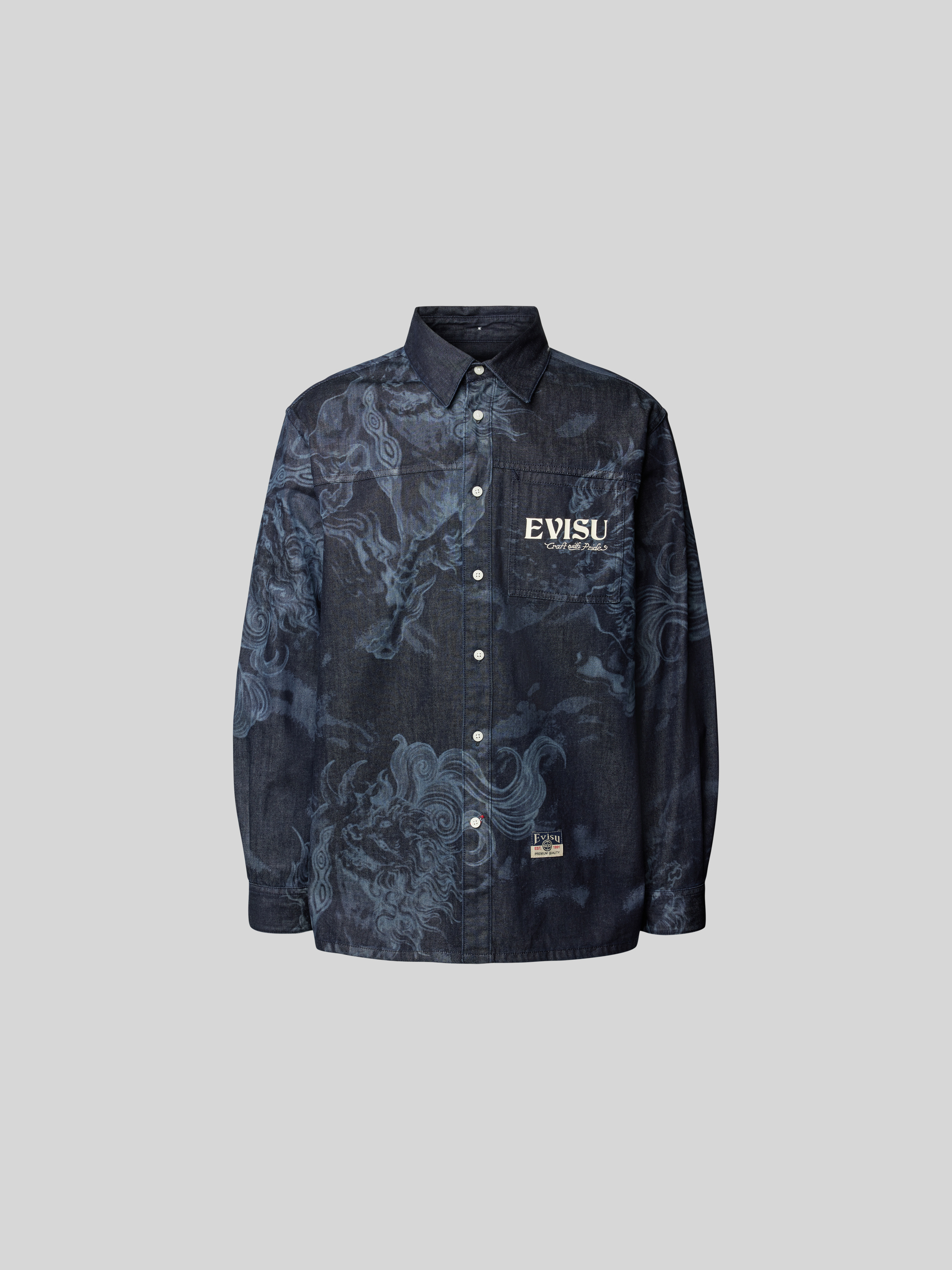Die Hemdjacke von Evisu, gefertigt aus reiner Baumwolle, kombiniert den lässigen Stil einer Denim-Optik mit einem komfortablen Relaxed Fit. Das langärmelige Design eignet sich hervorragend für vielfältige Anlässe und bietet dabei eine angenehme Bewegungsfreiheit. Perfekt für einen entspannten Look.