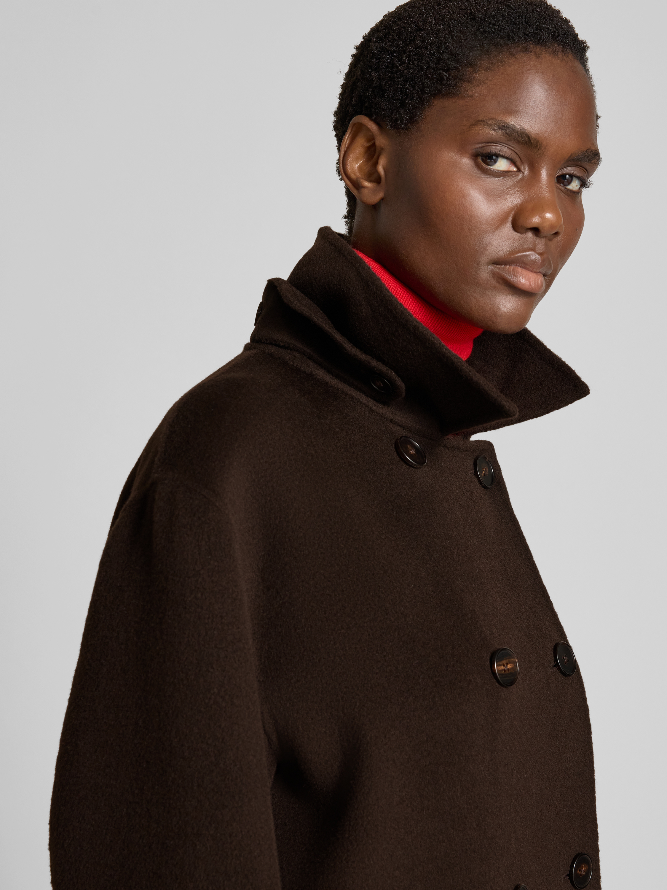 Der Damen Mantel von Filippa K besteht aus reiner Wolle und fällt durch seinen lockeren Schnitt angenehm leicht. Ein klassischer Kentkragen und eine schlichte Knopfleiste unterstreichen das zeitlose Design, während die praktischen Eingrifftaschen den Alltag erleichtern. So entsteht ein unkompliziertes Kleidungsstück, das vielseitig kombiniert werden kann.