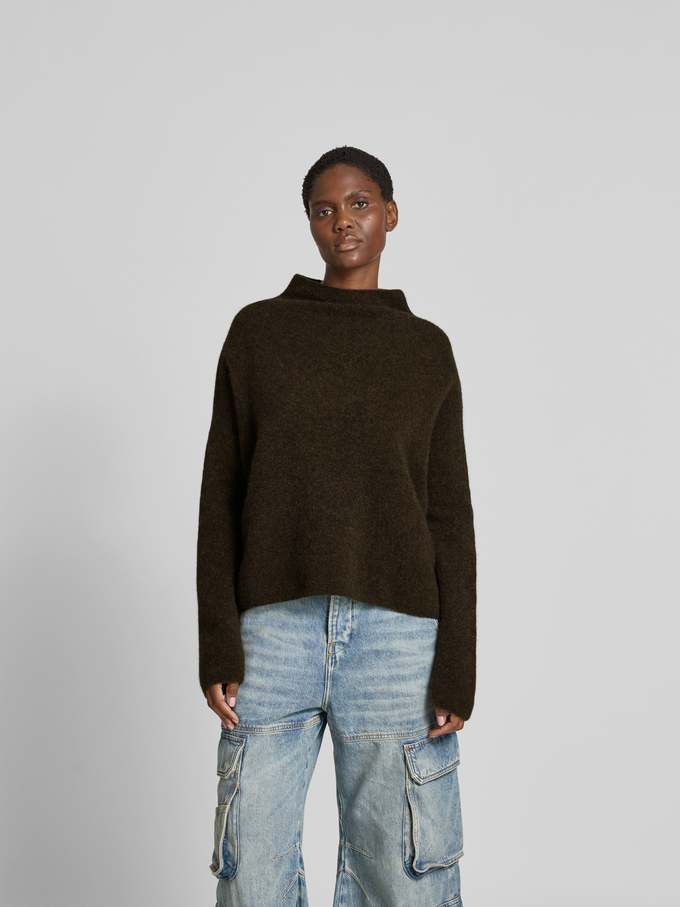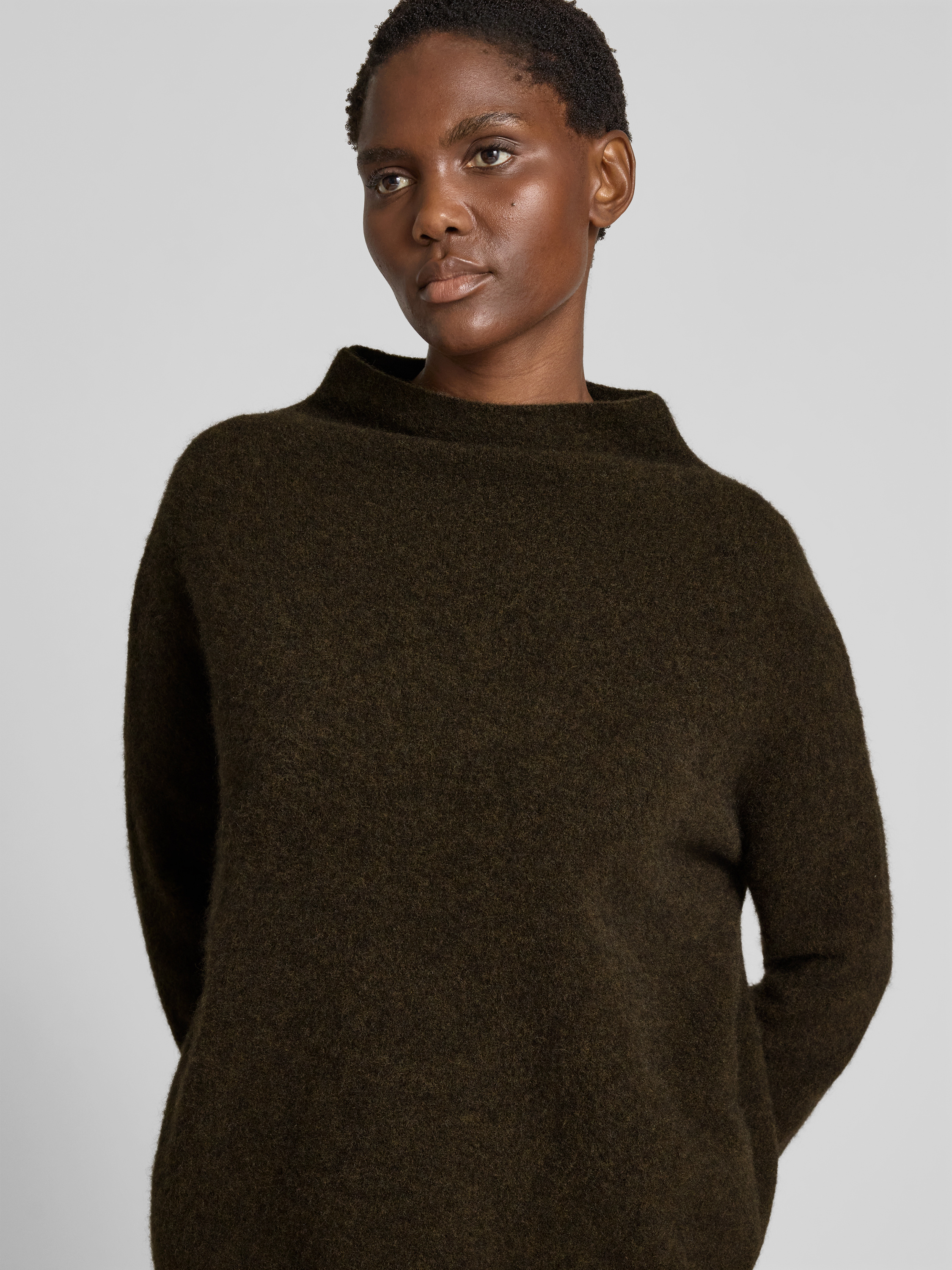 Der Damen Pullover mit Stehkragen von Filippa K vereint einen lockeren Schnitt mit einem angenehmen Woll-Yak-Mix, wodurch er sich besonders weich auf der Haut anfühlt. Durch den modernen Stehkragen entsteht eine dezente, zeitgemäße Silhouette, die vielseitig kombiniert werden kann. Dank der durchdachten Materialmischung bleibt man an kühleren Tagen angenehm gewärmt, ohne dass das Tragegefühl an Leichtigkeit verliert.