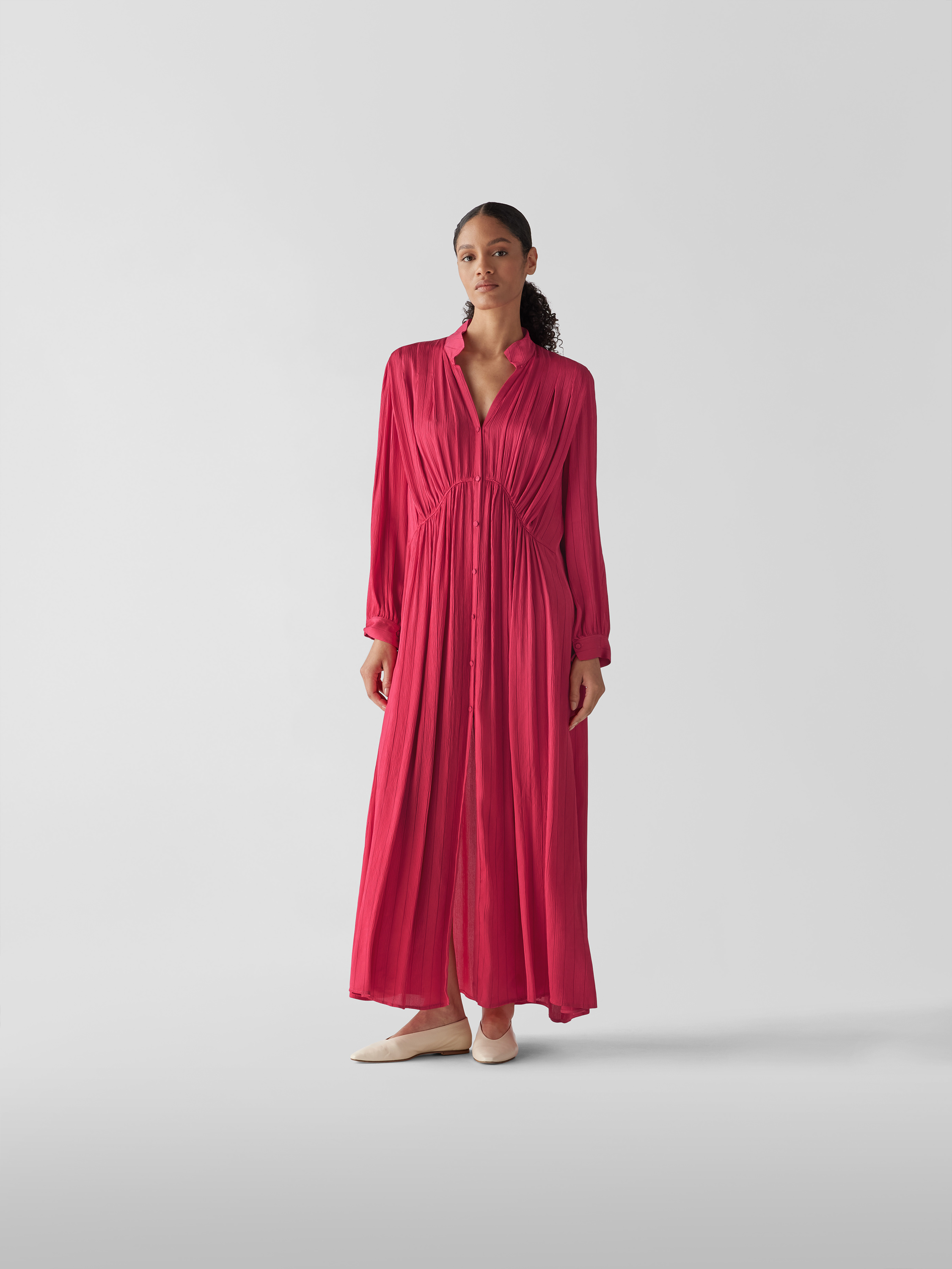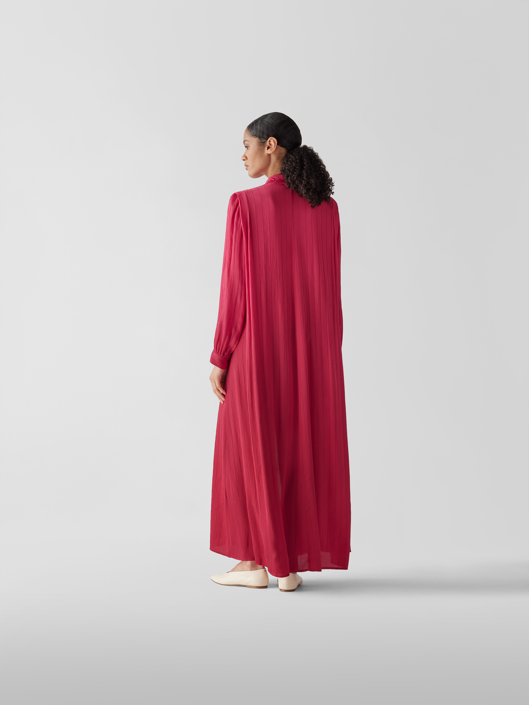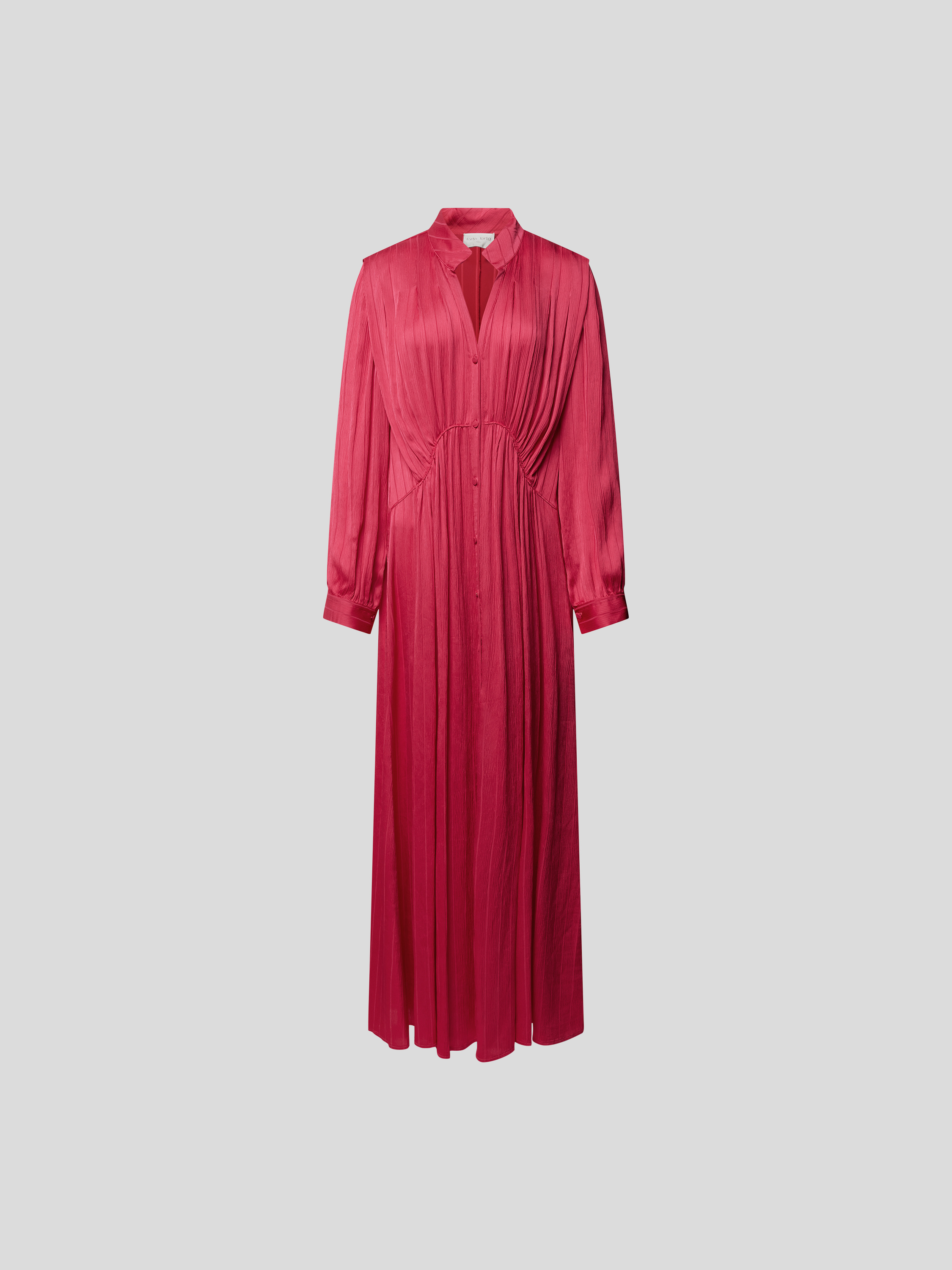Das Maxikleid von Forte Forte fällt durch seine lockere Passform und die angenehm fließende Crinkle-Optik auf. Der Anteil an Seide verleiht dem Material eine sanfte Haptik, wodurch es sich auch an warmen Tagen angenehm tragen lässt. Mit Tunikakragen und langen Ärmeln entsteht ein lässiger, vielseitig kombinierbarer Look.