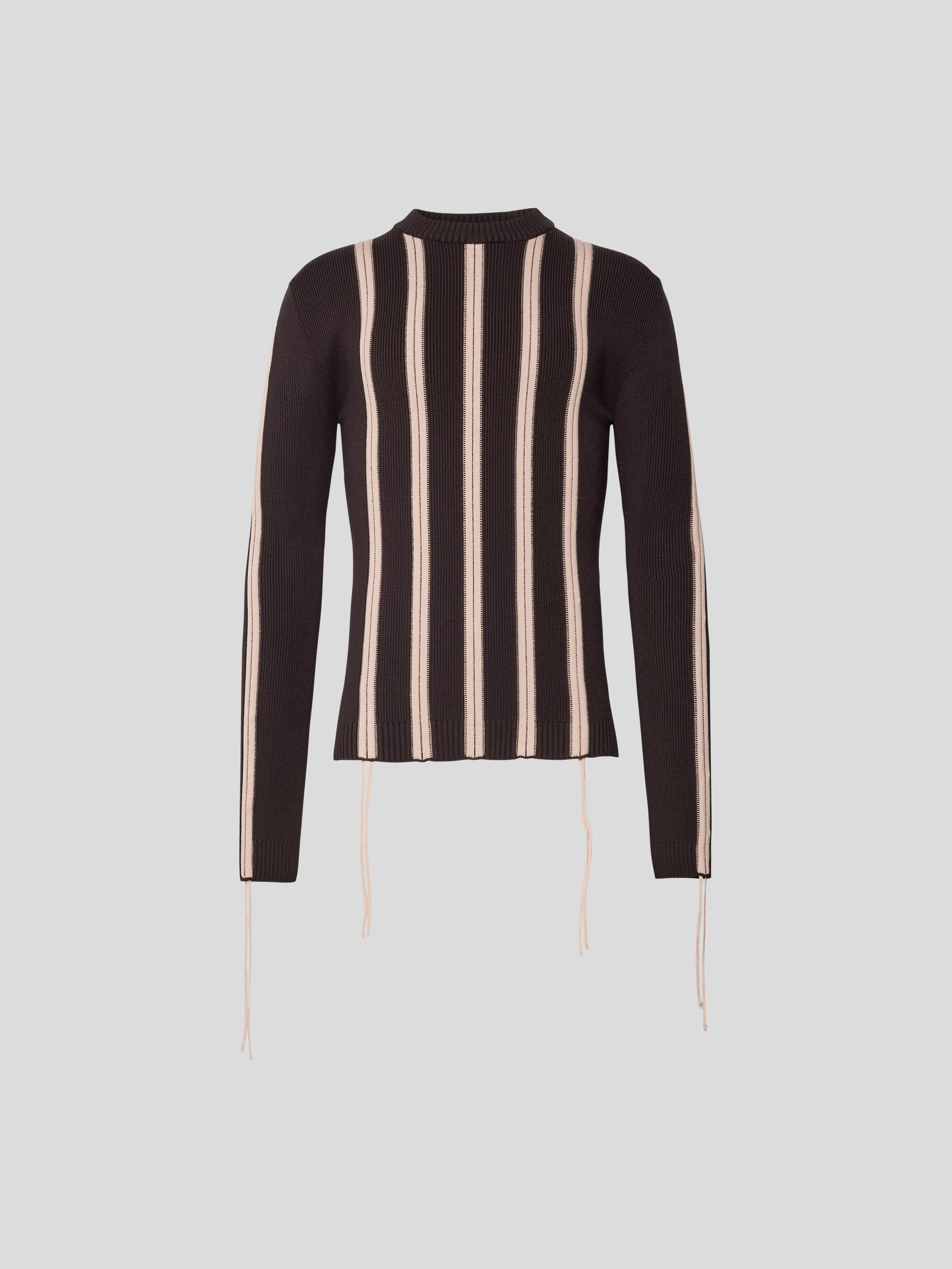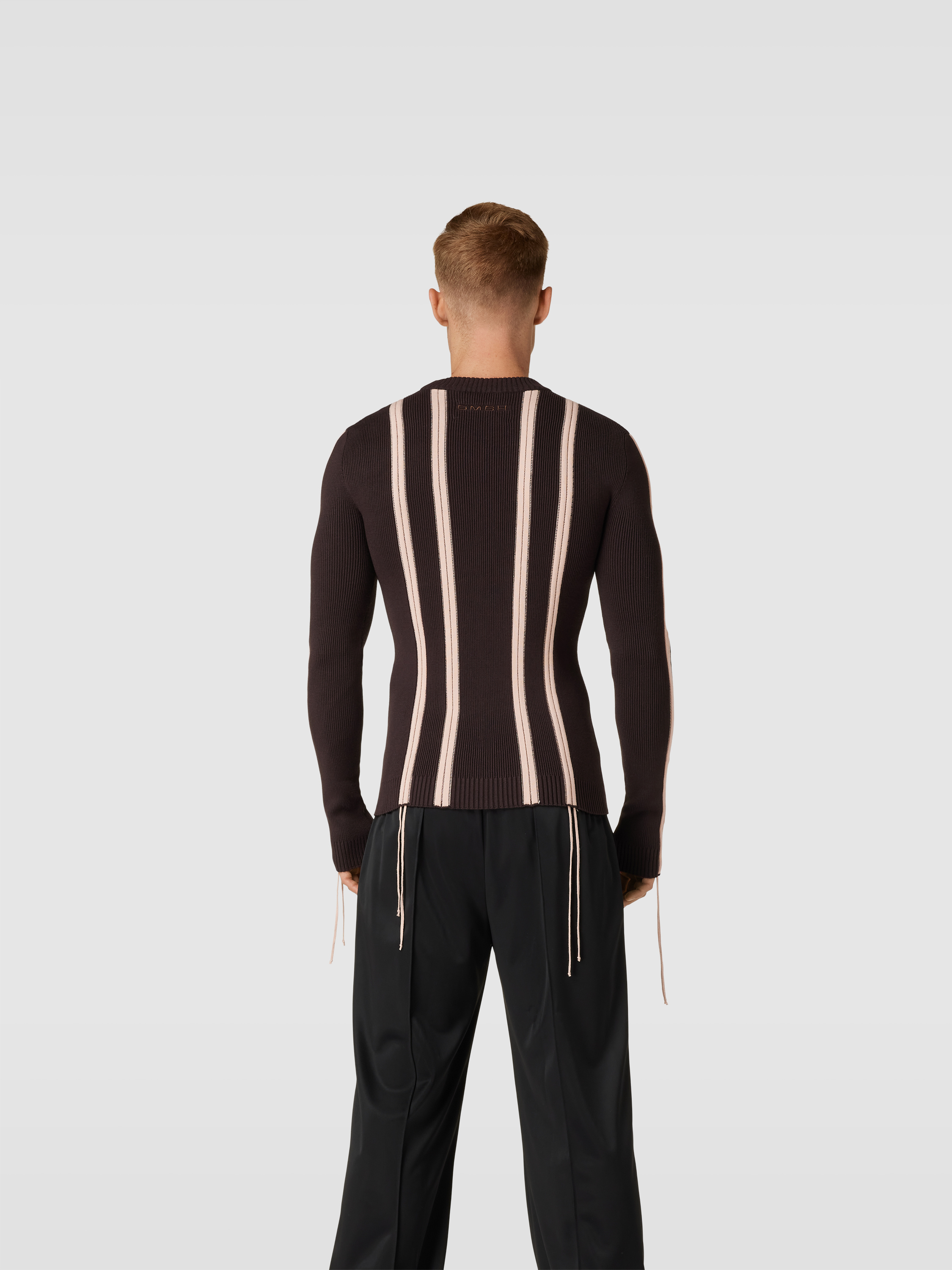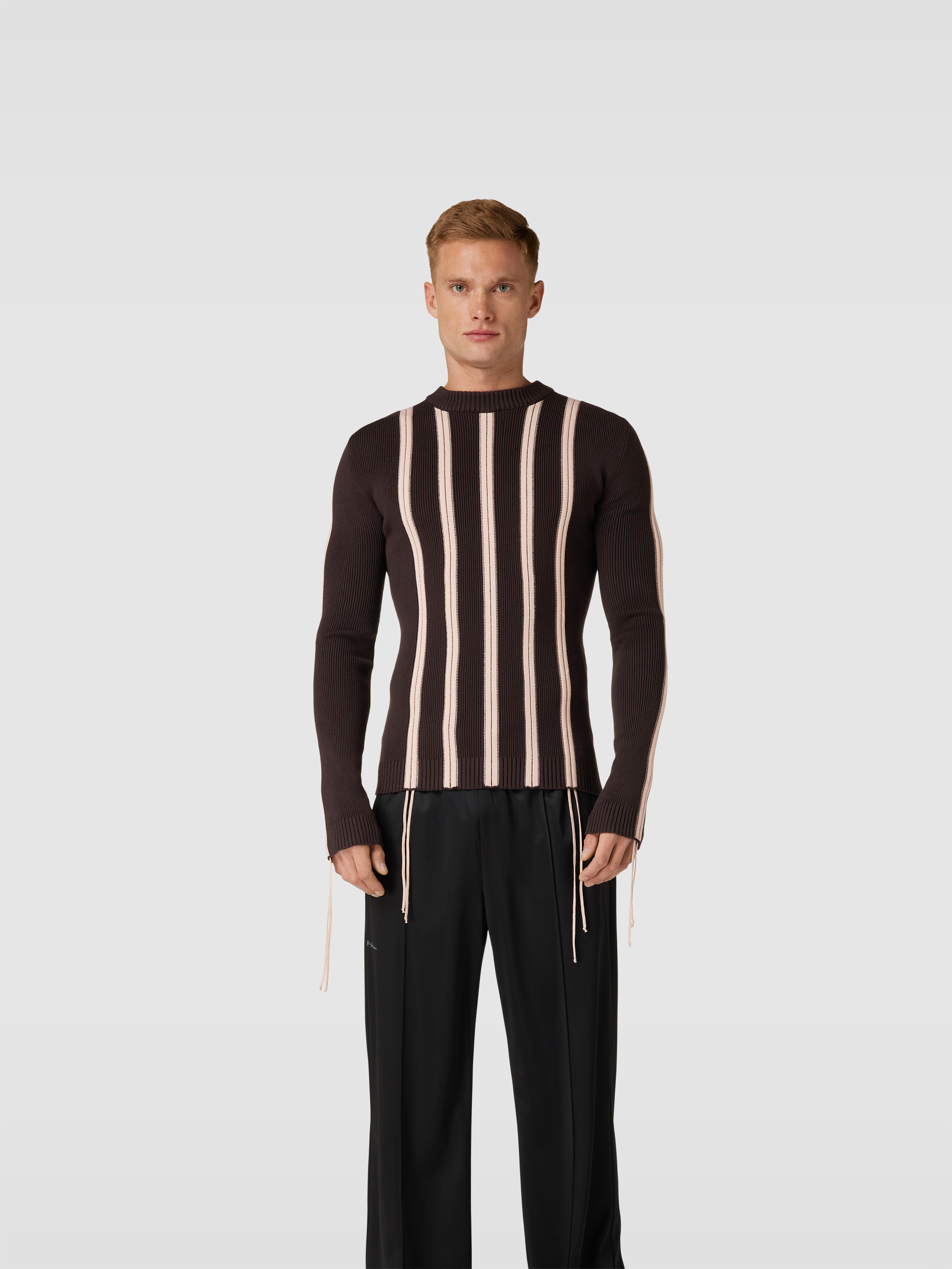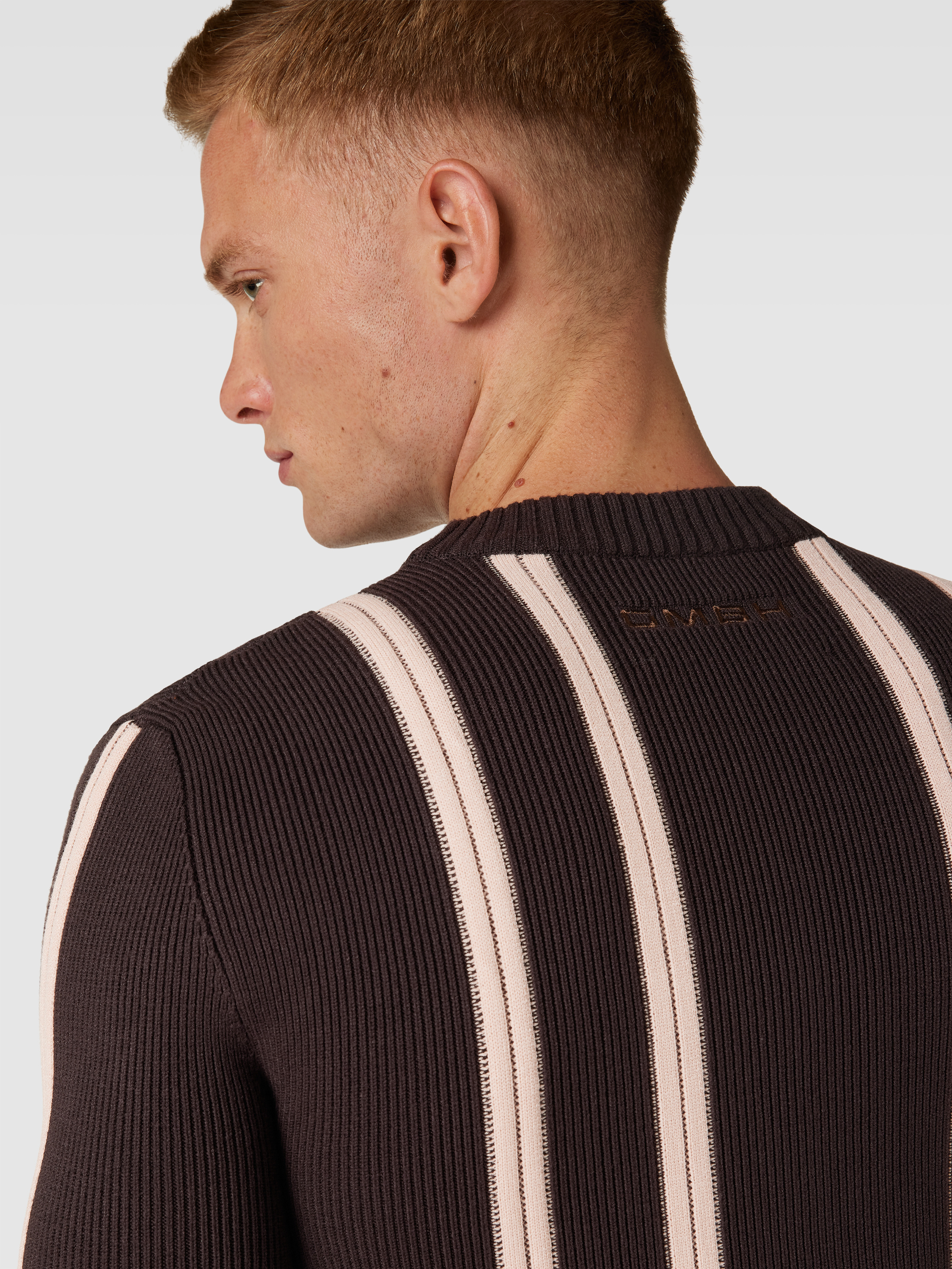 Der Herren Pullover von GmbH zeigt sich mit schmaler Silhouette und Stehkragen, wodurch das Streifenmuster dezent zur Geltung kommt. Durch den Viskose-Elasthan-Mix fühlt sich das Material angenehm weich auf der Haut an. In Strick-Optik eignet sich das Modell für unterschiedlichste Gelegenheiten.