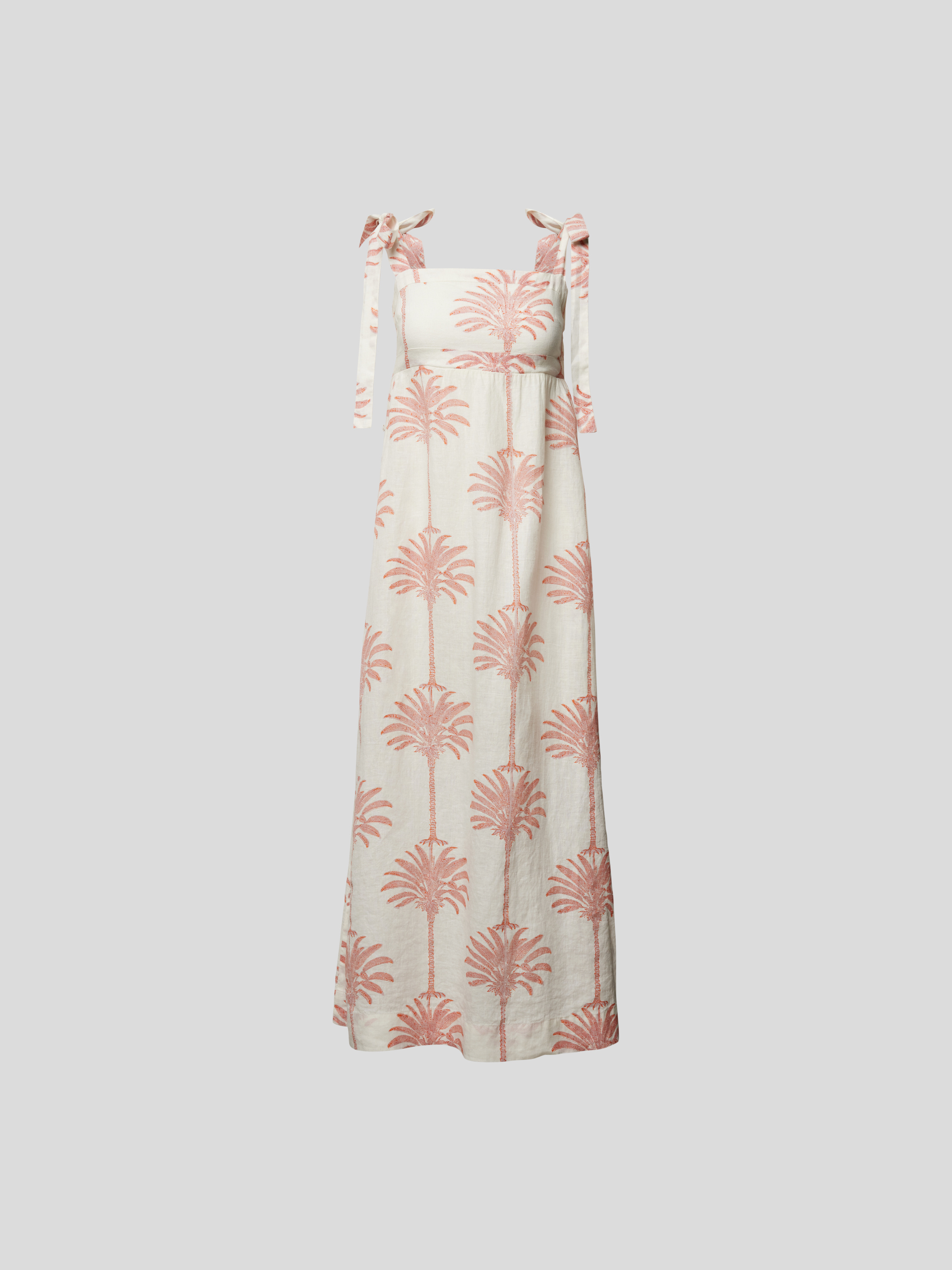 Das Leinenkleid im Empire-Stil von Hannah Artwear kombiniert reines Leinen mit einer taillierten Silhouette und floralen Mustern. Durch die Maxilänge und das ärmellose Design entsteht ein luftiger Tragekomfort, der Bewegung zulässt. So lässt sich ein femininer Look mit natürlicher Leichtigkeit verwirklichen.
