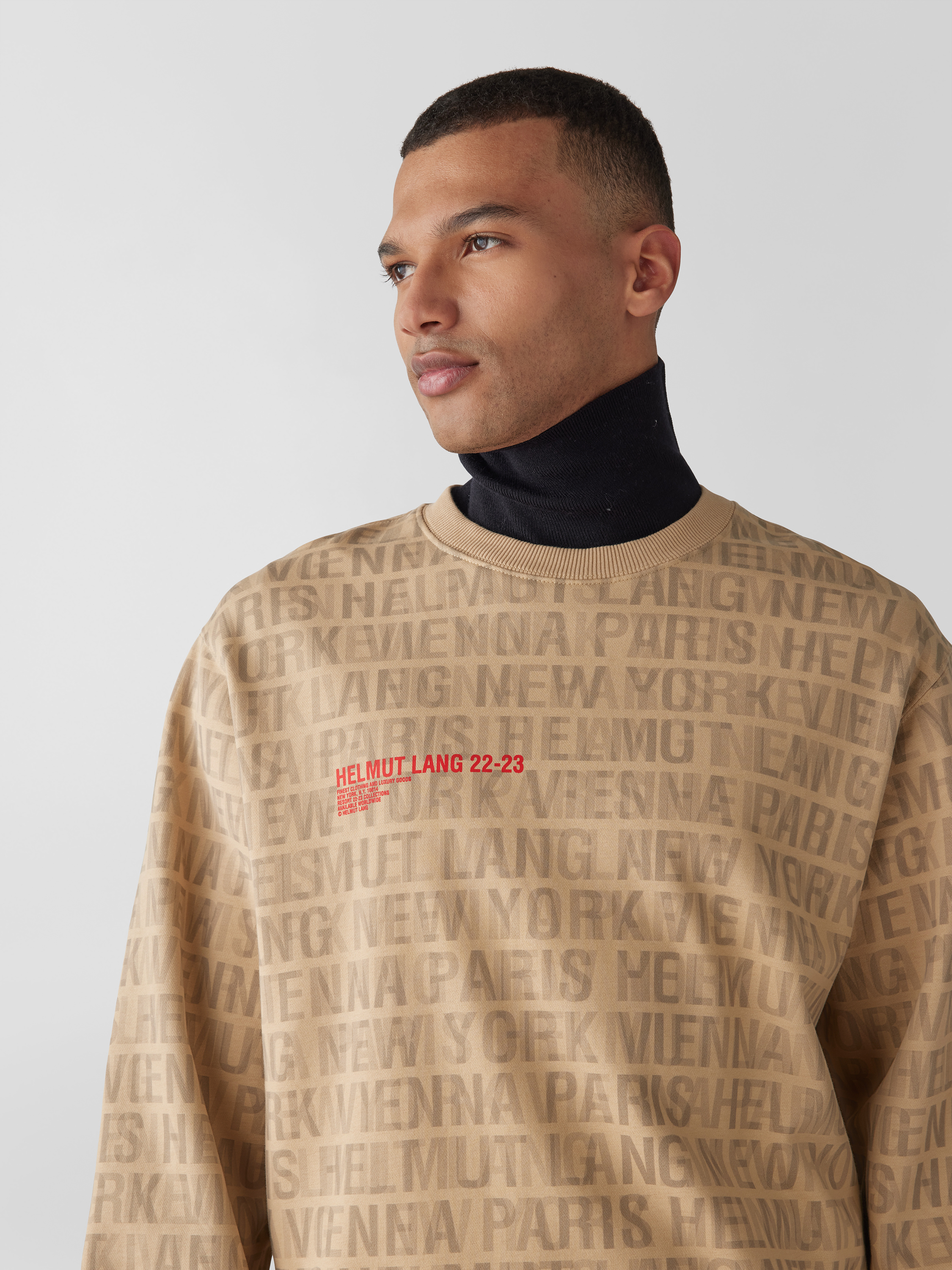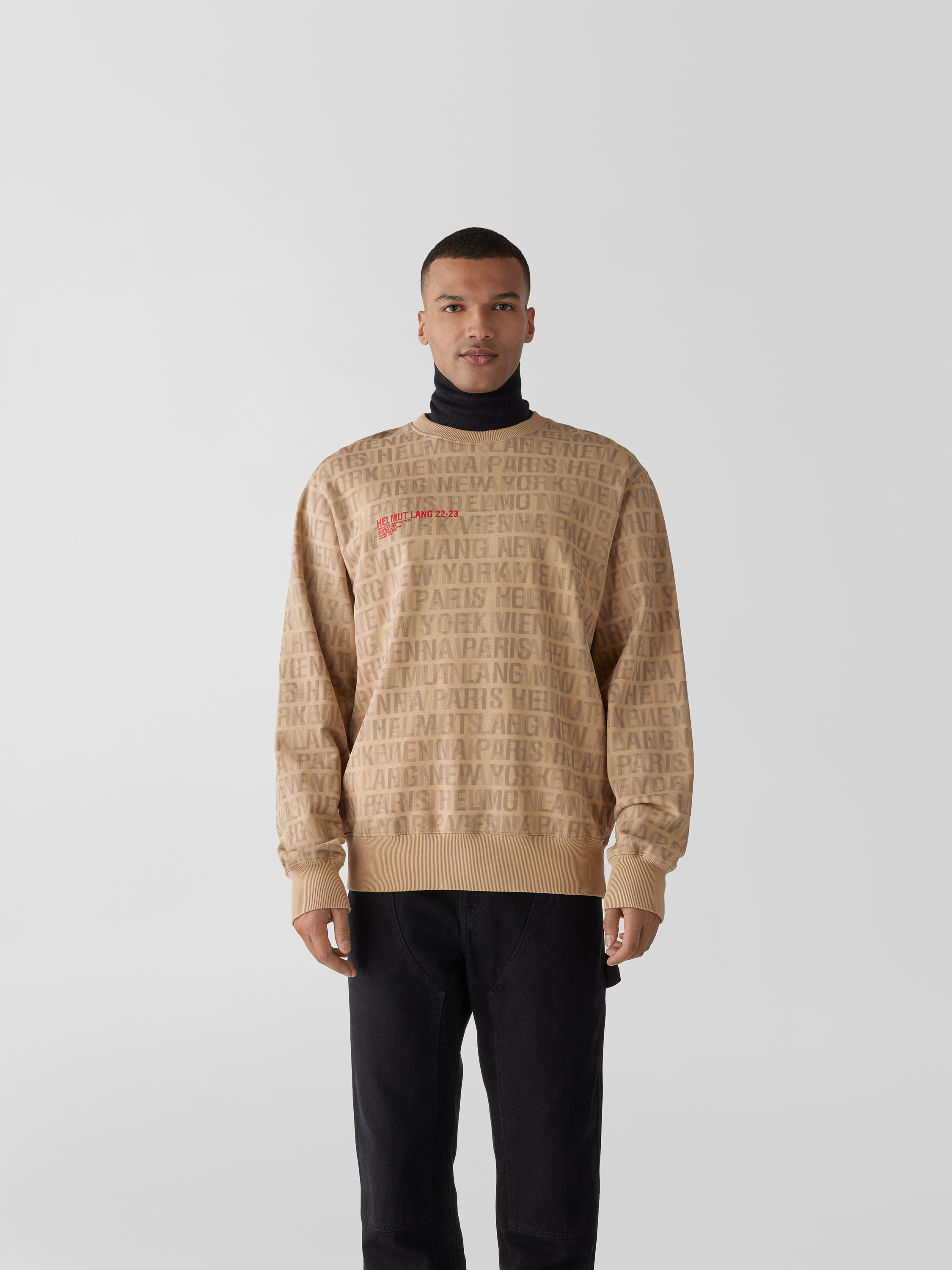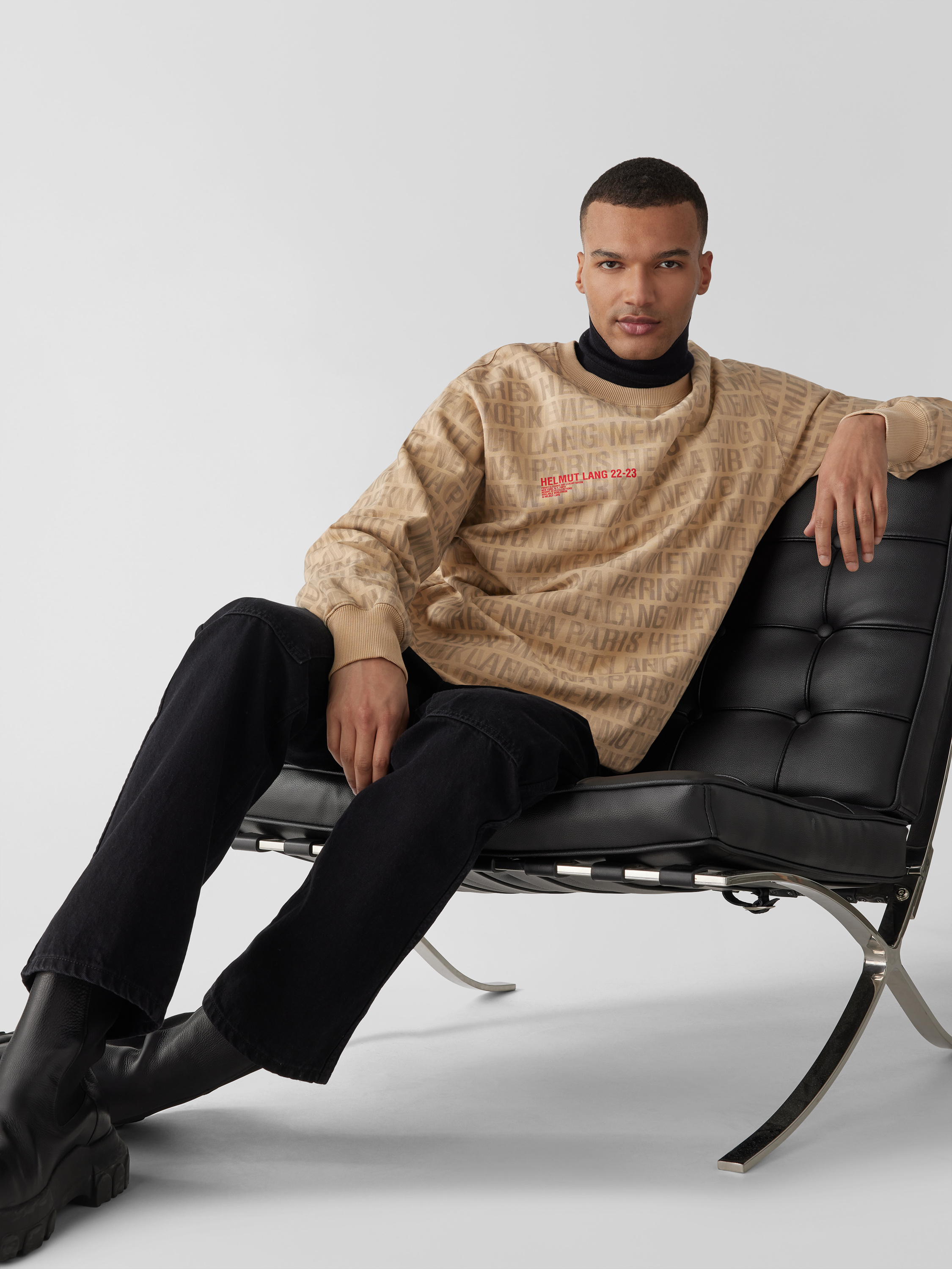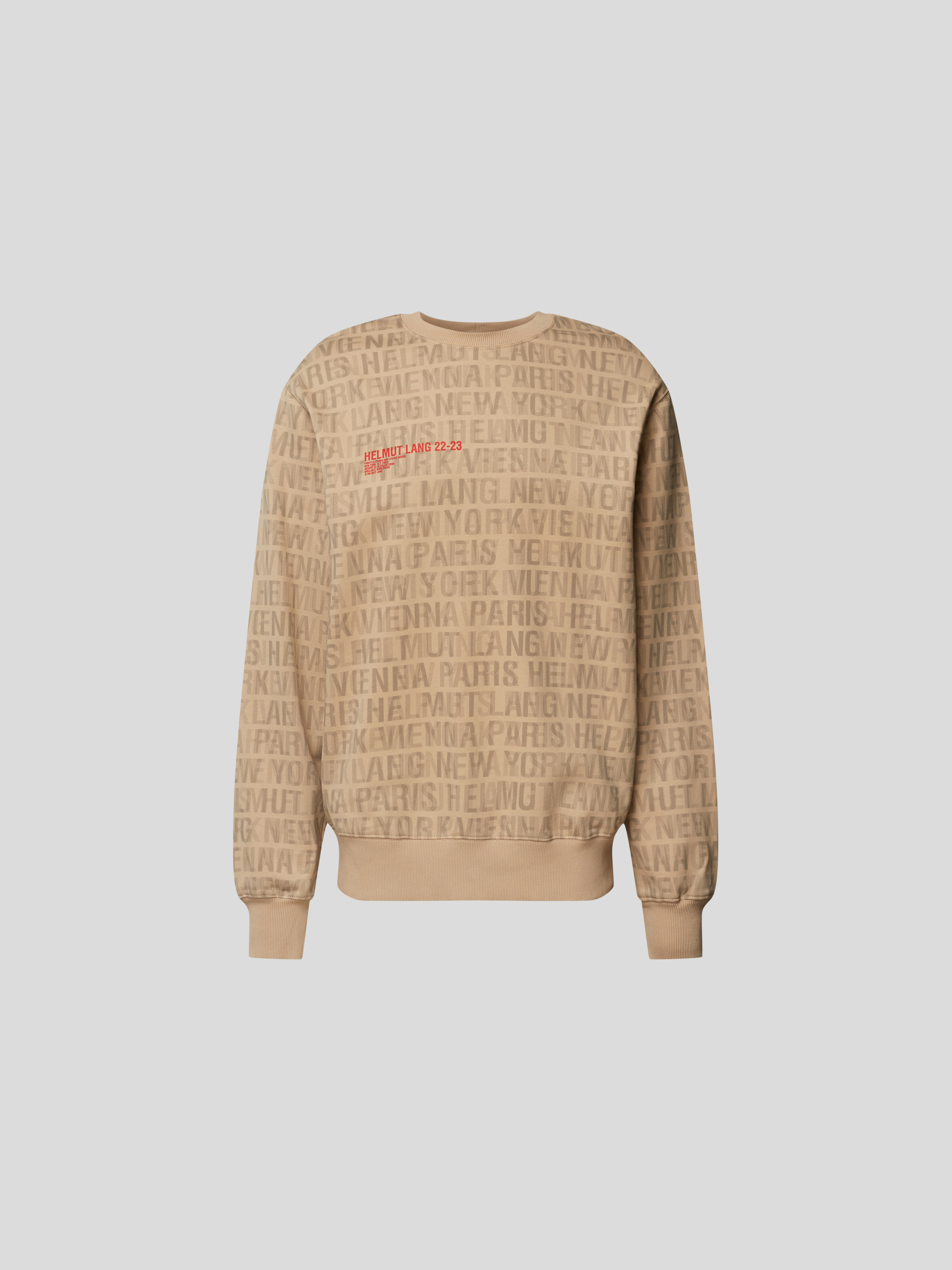 Das Herren Sweatshirt von Helmut Lang kombiniert eine lockere Passform mit reiner Baumwolle, wodurch sich angenehmer Tragekomfort im Alltag ergibt. Der markante Allover-Logo-Print und dezente Labeldetails setzen moderne Akzente, während klassische Abschlüsse das Gesamtbild abrunden. So entsteht ein vielseitiges Kleidungsstück, das unkompliziert wirkt.