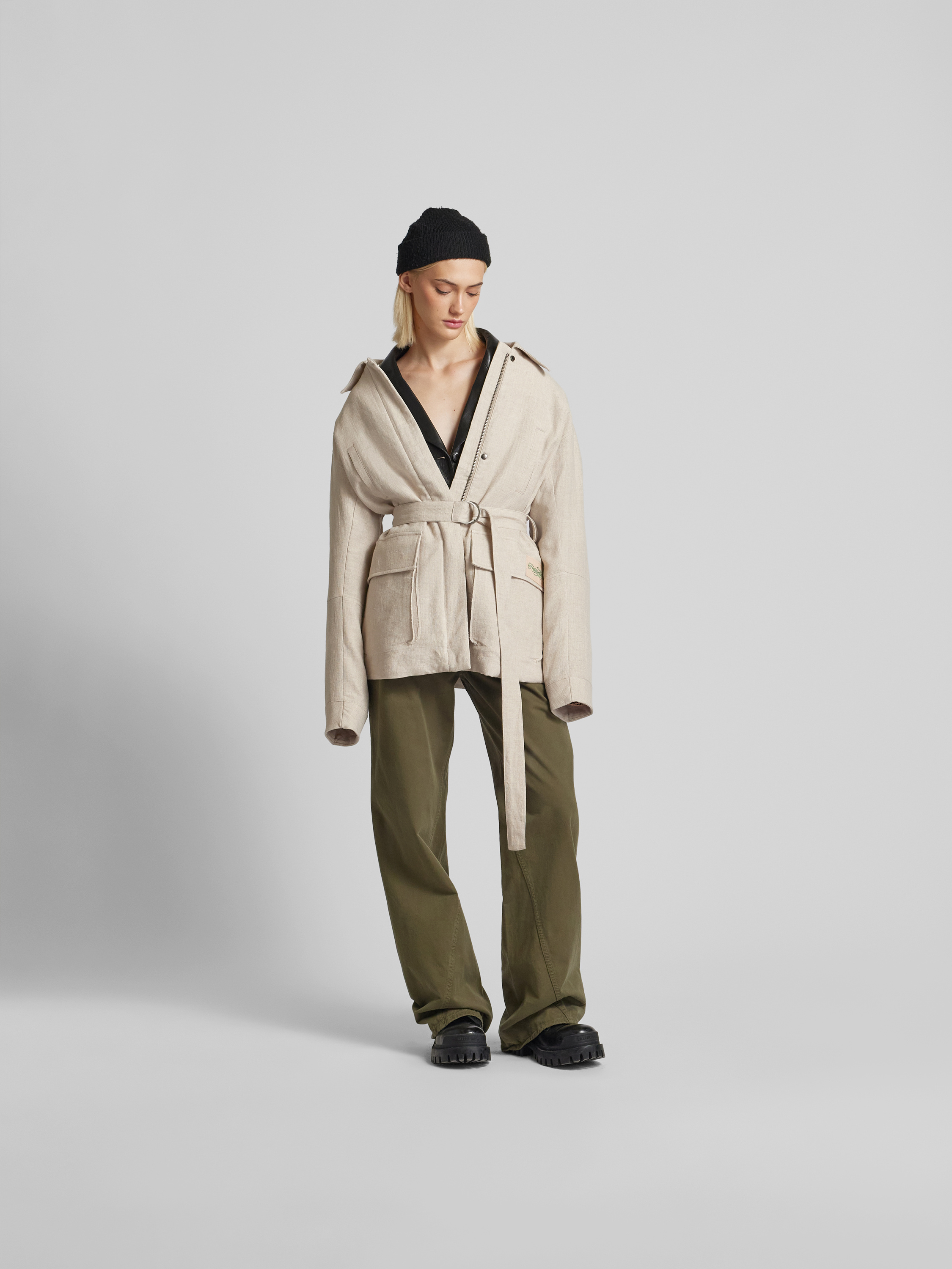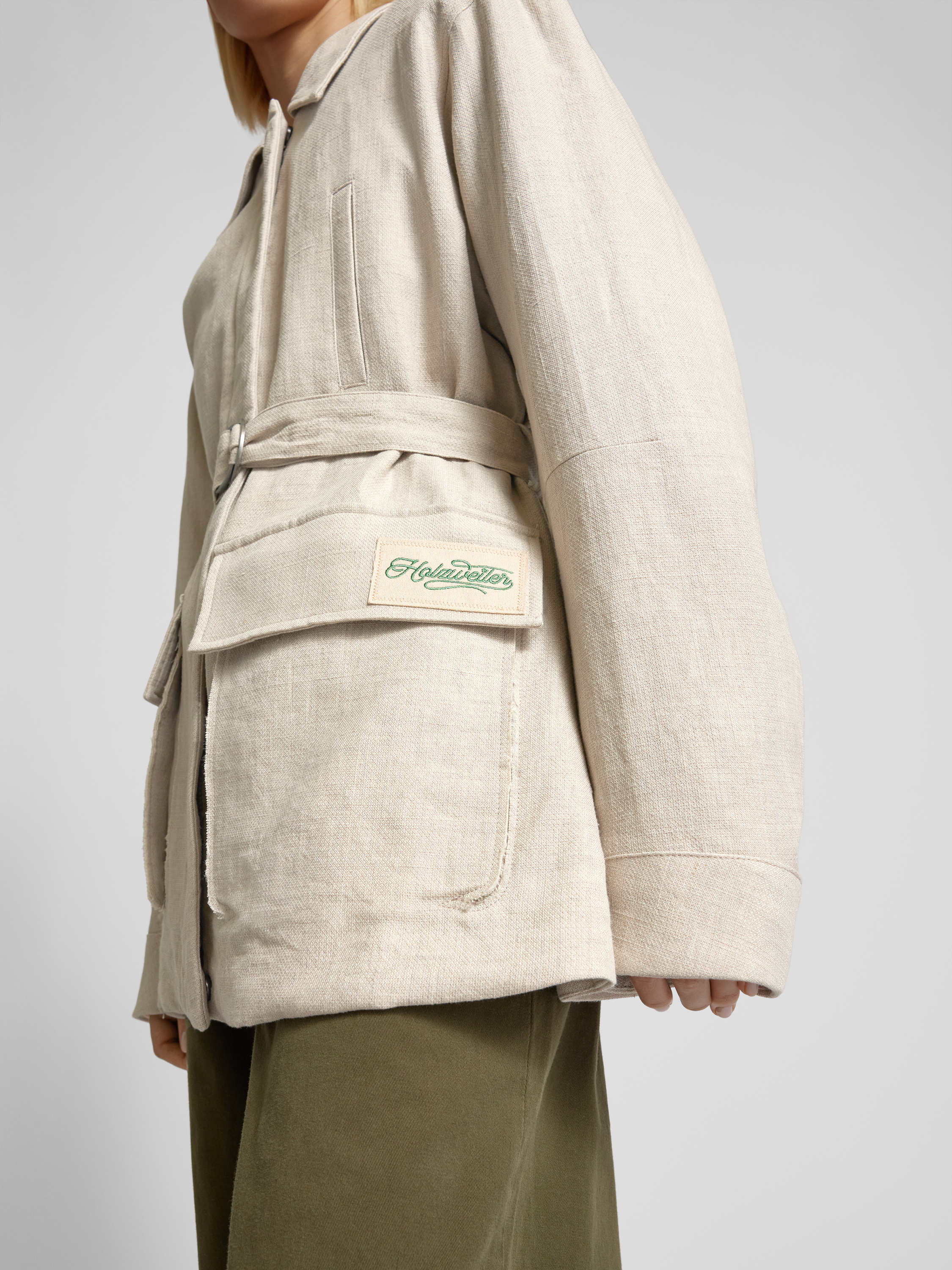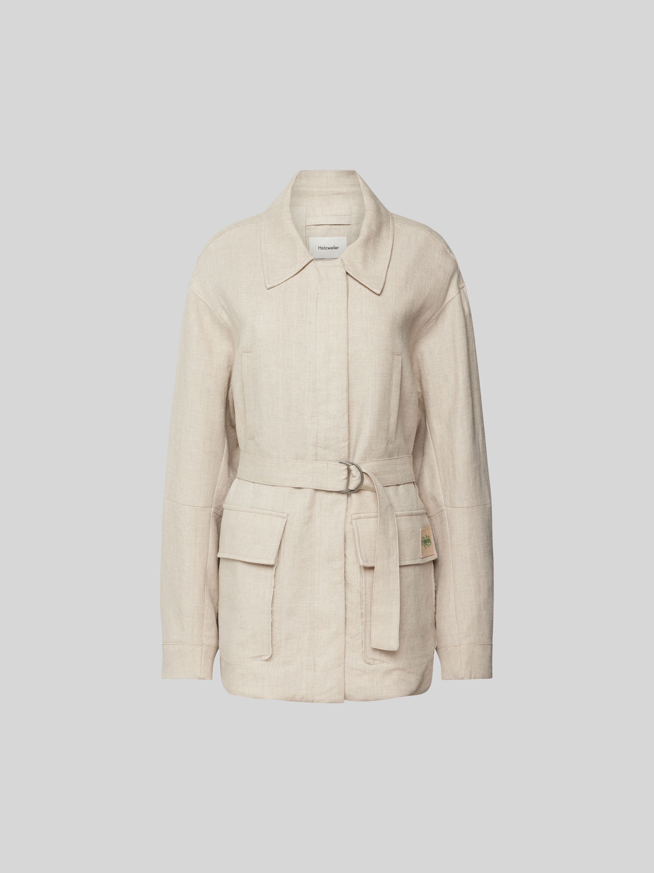 Die Damen Jacke von Holzweiler zeigt sich in reiner Baumwolle und bringt durch die taillierte Passform eine angenehme Kontur. Dank Taillengürtel lässt sich der Sitz individuell anpassen, während Patten- und Brusttaschen praktischen Stauraum bieten. So entsteht ein vielseitiges Kleidungsstück für wechselhafte Tage.